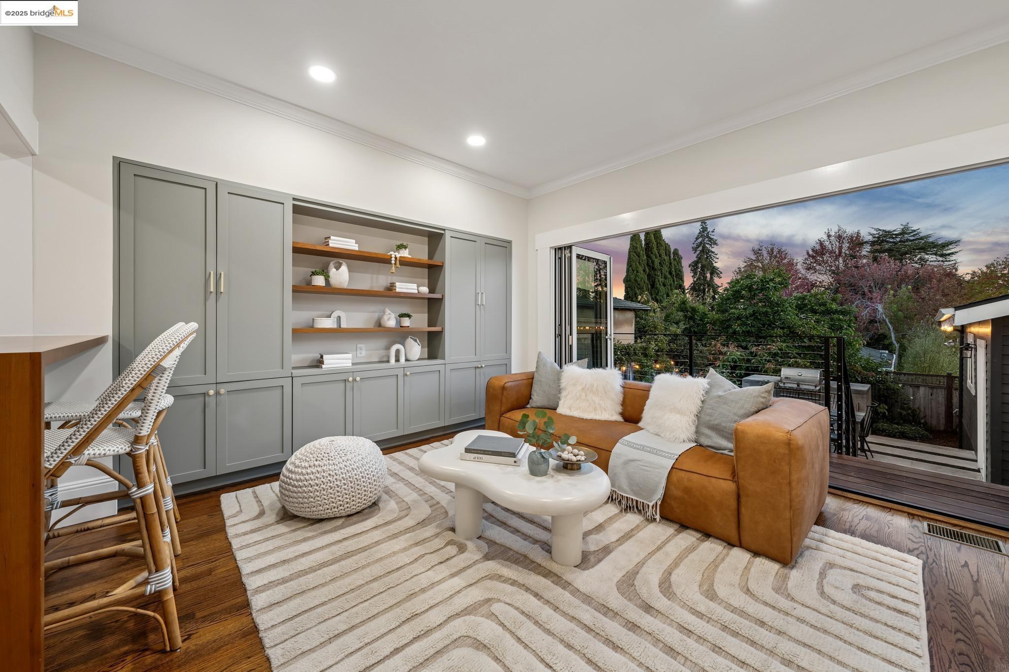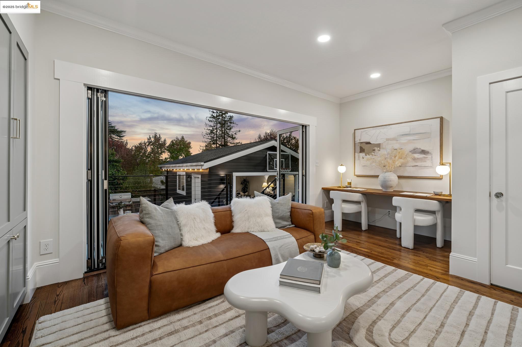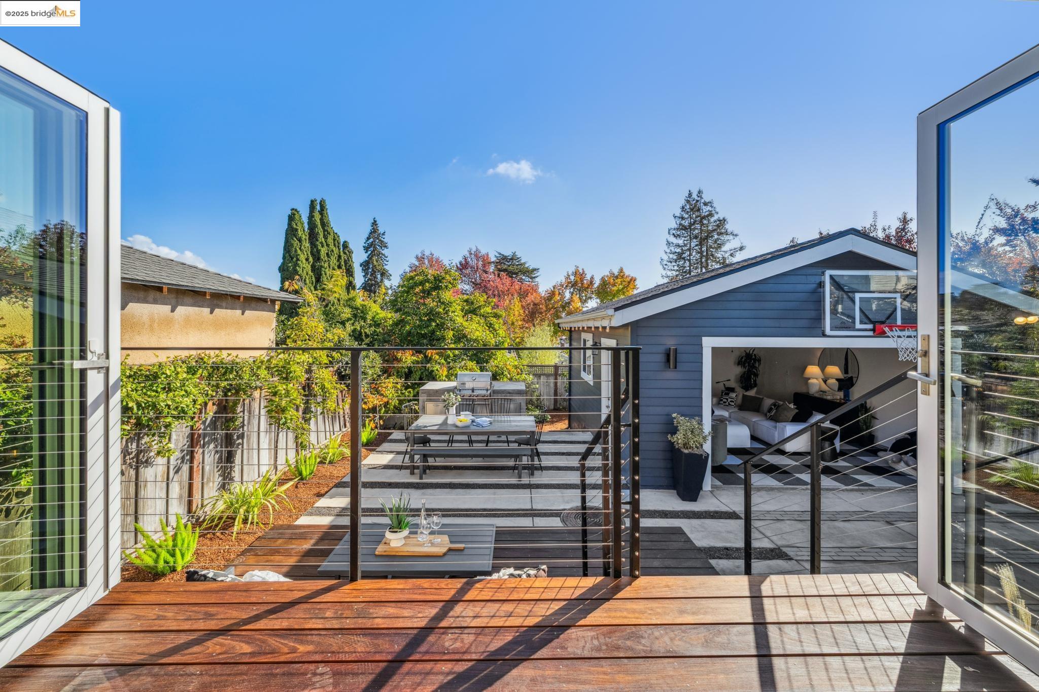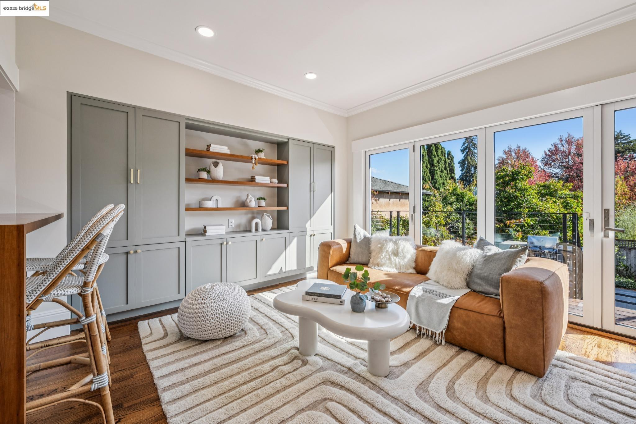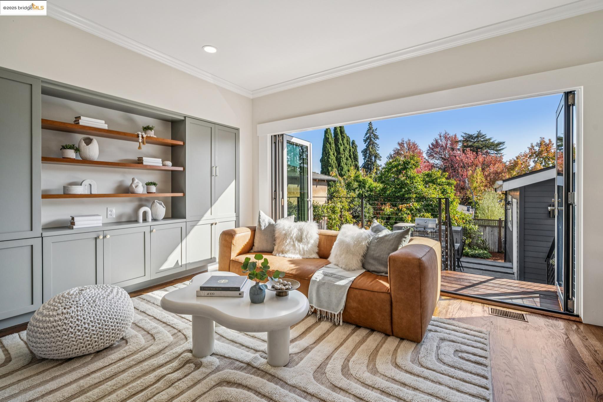 This is the one! - an updated Craftsman with all the bells and whistles! The main level layout is all about modern living and building memories with family and friends. The living room showcases lovely ceiling detail, a traditional fireplace and loads of light from the windows overlooking the front garden. Host holiday meals in the stylish dining room with a splash of wallpaper that elevates the space. The open kitchen has everything your inner chef desires: 36" range, stainless appliances, quartz countertops, island for ample work space and a walk-in pantry. The action happens in the family room, where you can enjoy our beautiful East Bay weather by opening the panoramic doors wide to the back deck, allowing the party to flow outside. Rounding out this floor are two bedrooms, a sleek hall bath, and a handy powder room. Head upstairs to see the primary bedroom with en-suite bath, a large second bedroom, and a separate cheerful office space perfect for the CEO of the house. The backyard is your go-to spot for entertaining with a built-in BBQ, flexible finished garage, dining patio, basketball hoop, and low-maintenance landscaping. Move right in and enjoy the owned solar, Piedmont's top-notch public schools, responsive city services, new aquatic center, and vibrant community!
