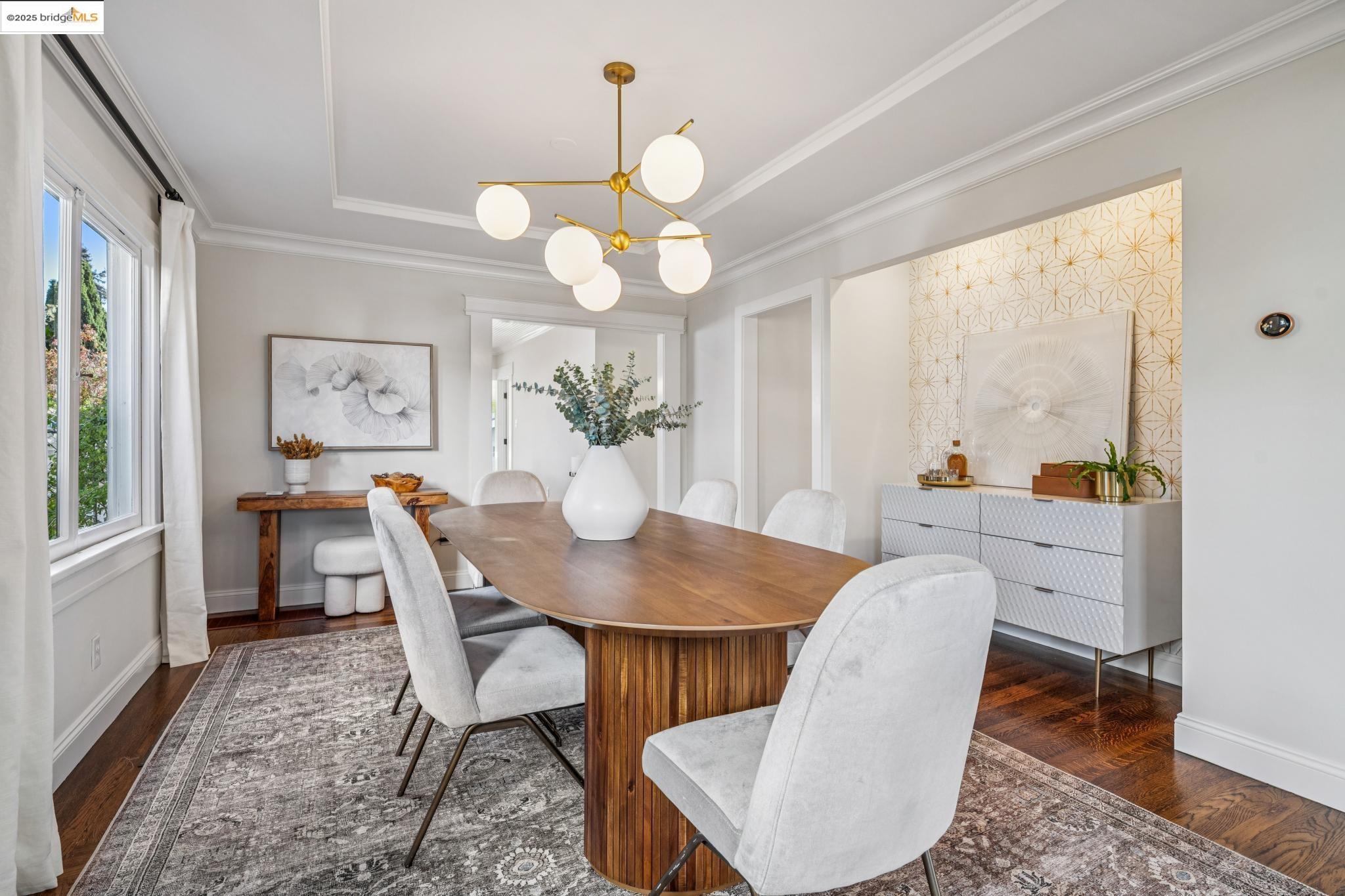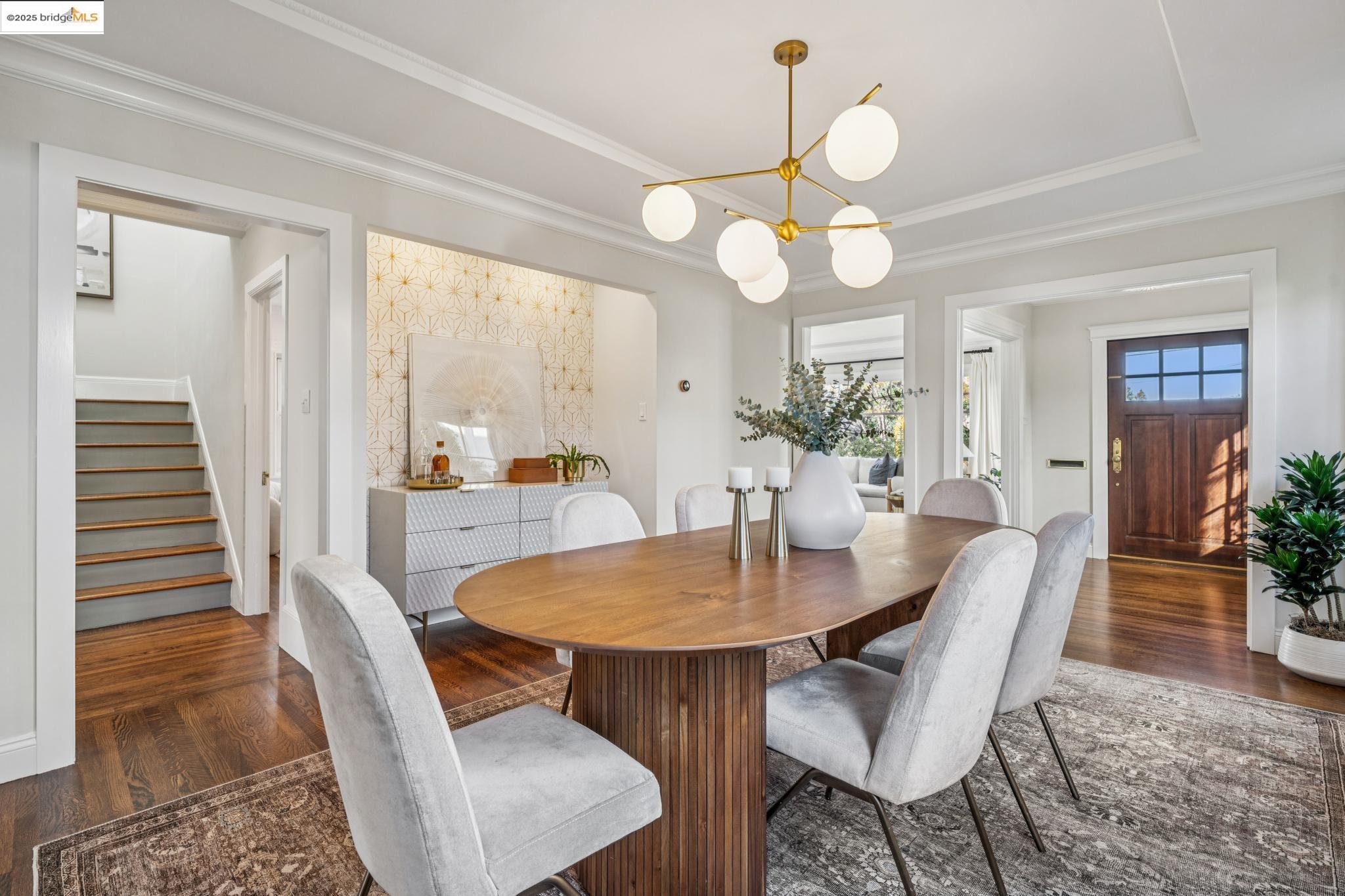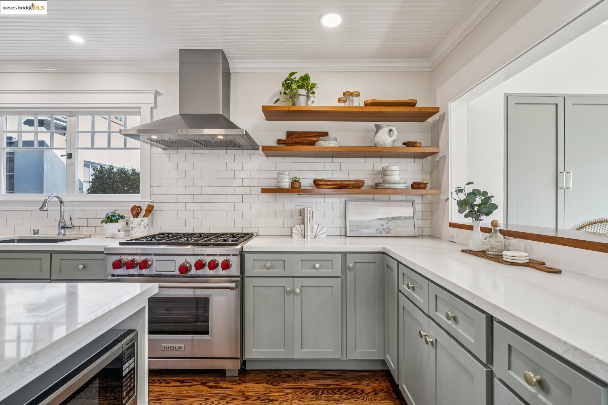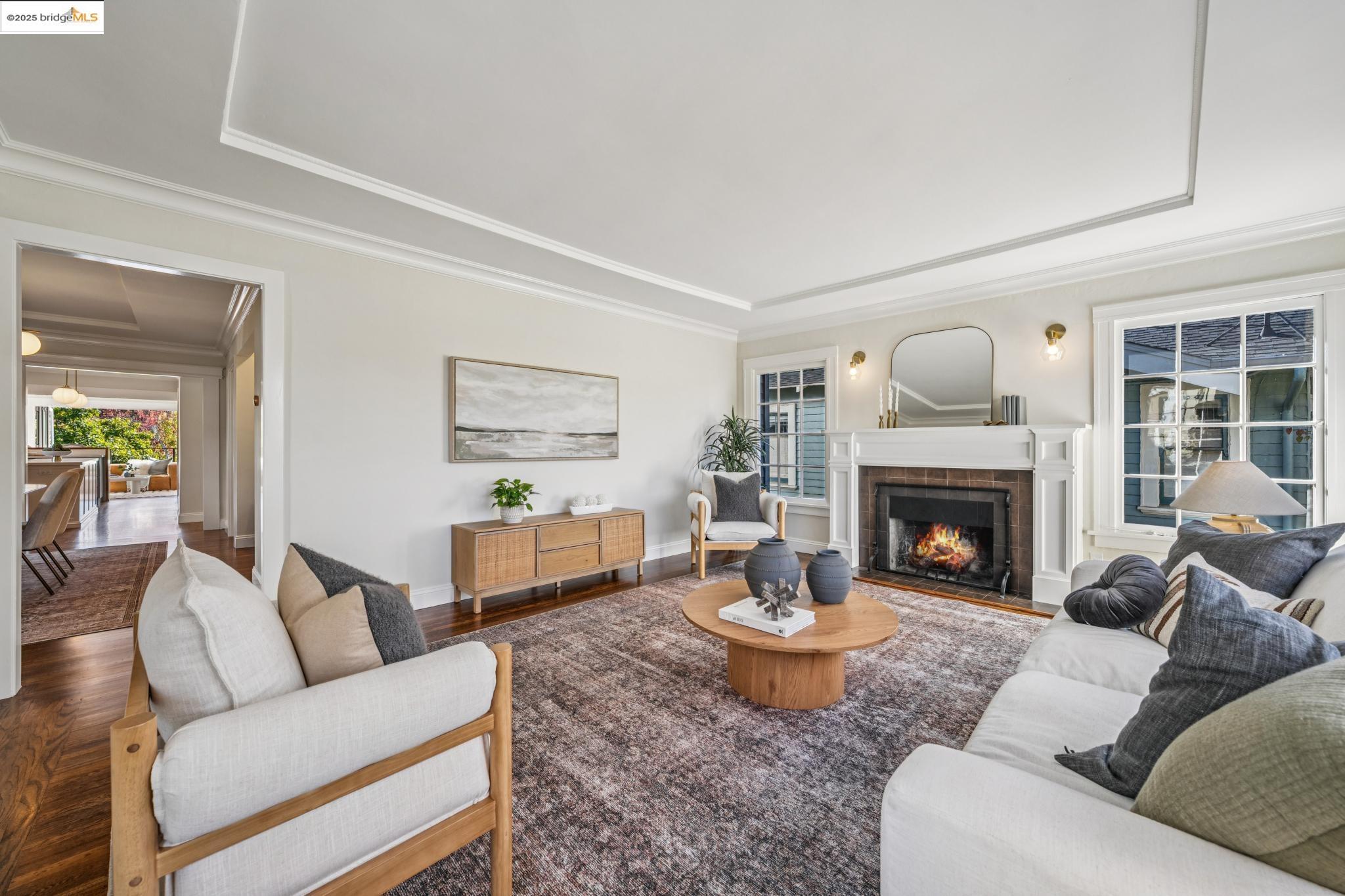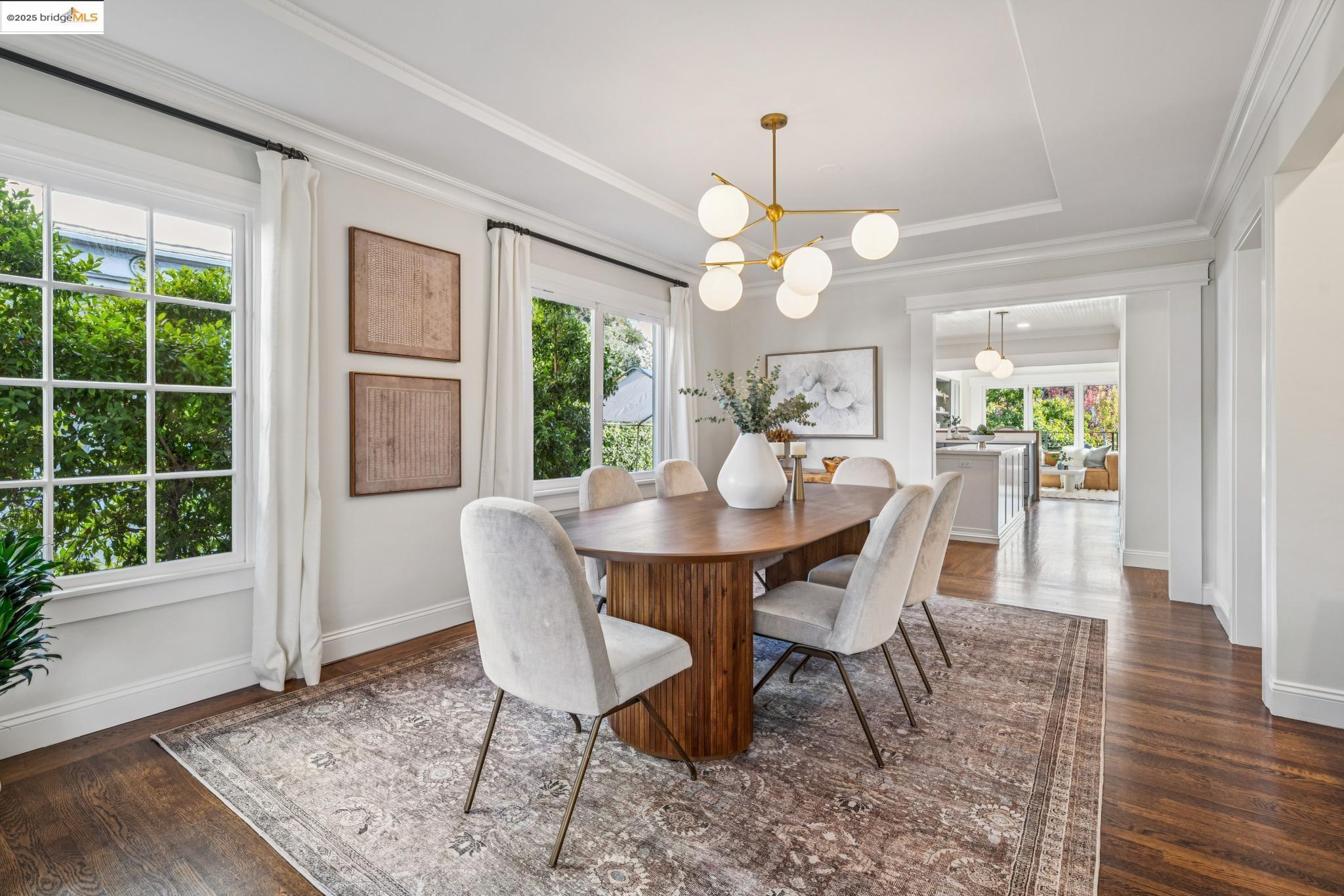 This is the one! - an updated Craftsman with all the bells and whistles! The main level layout is all about modern living and building memories with family and friends. The living room showcases lovely ceiling detail, a traditional fireplace and loads of light from the windows overlooking the front garden. Host holiday meals in the stylish dining room with a splash of wallpaper that elevates the space. The open kitchen has everything your inner chef desires: 36" range, stainless appliances, quartz countertops, island for ample work space and a walk-in pantry. The action happens in the family room, where you can enjoy our beautiful East Bay weather by opening the panoramic doors wide to the back deck, allowing the party to flow outside. Rounding out this floor are two bedrooms, a sleek hall bath, and a handy powder room. Head upstairs to see the primary bedroom with en-suite bath, a large second bedroom, and a separate cheerful office space perfect for the CEO of the house. The backyard is your go-to spot for entertaining with a built-in BBQ, flexible finished garage, dining patio, basketball hoop, and low-maintenance landscaping. Move right in and enjoy the owned solar, Piedmont's top-notch public schools, responsive city services, new aquatic center, and vibrant community!