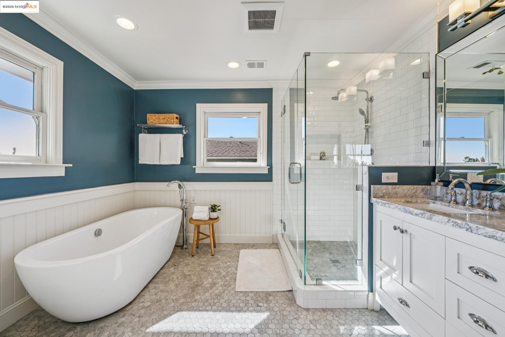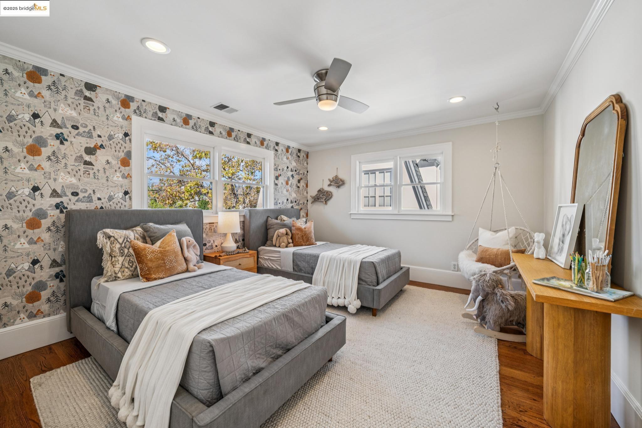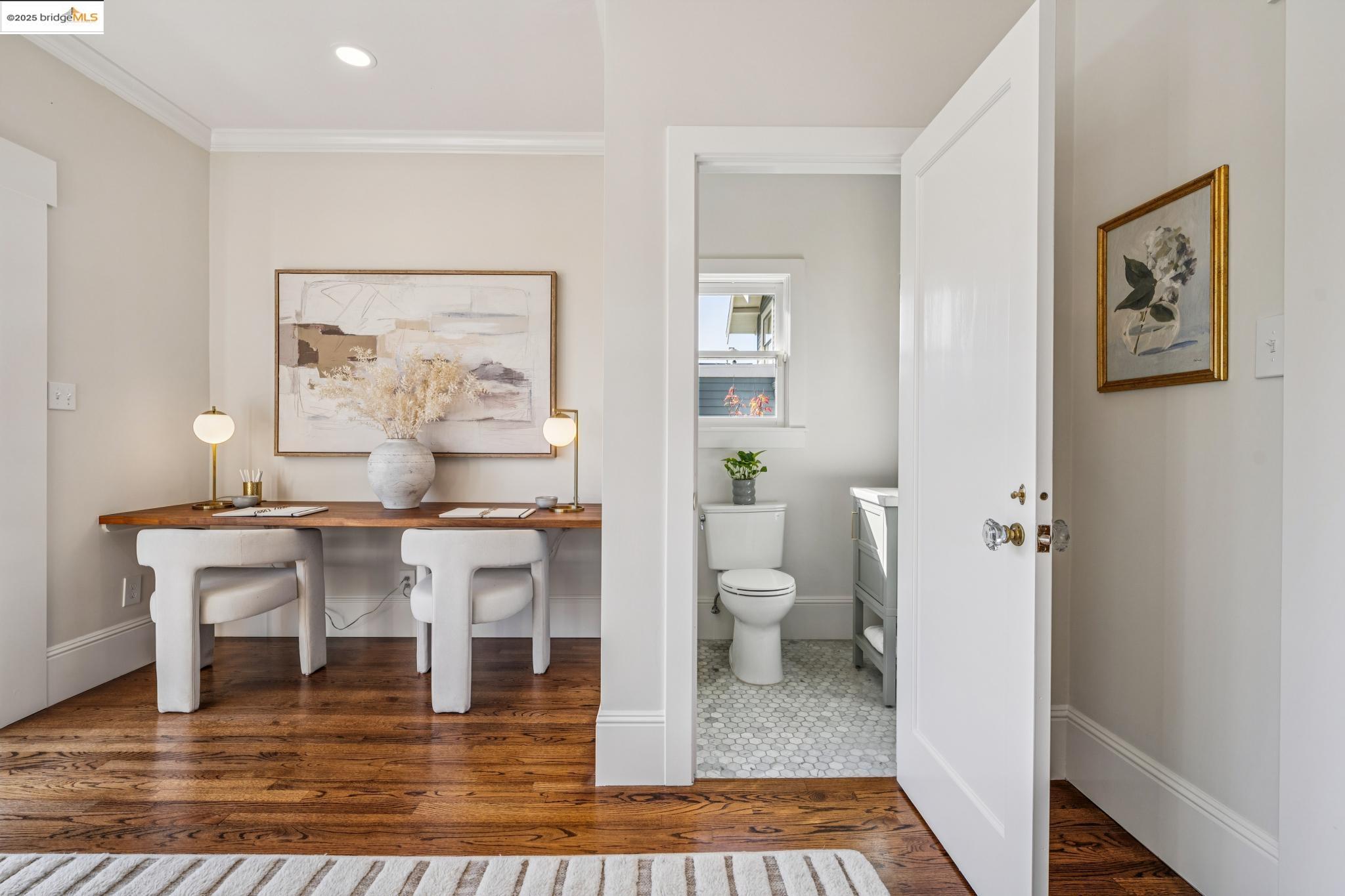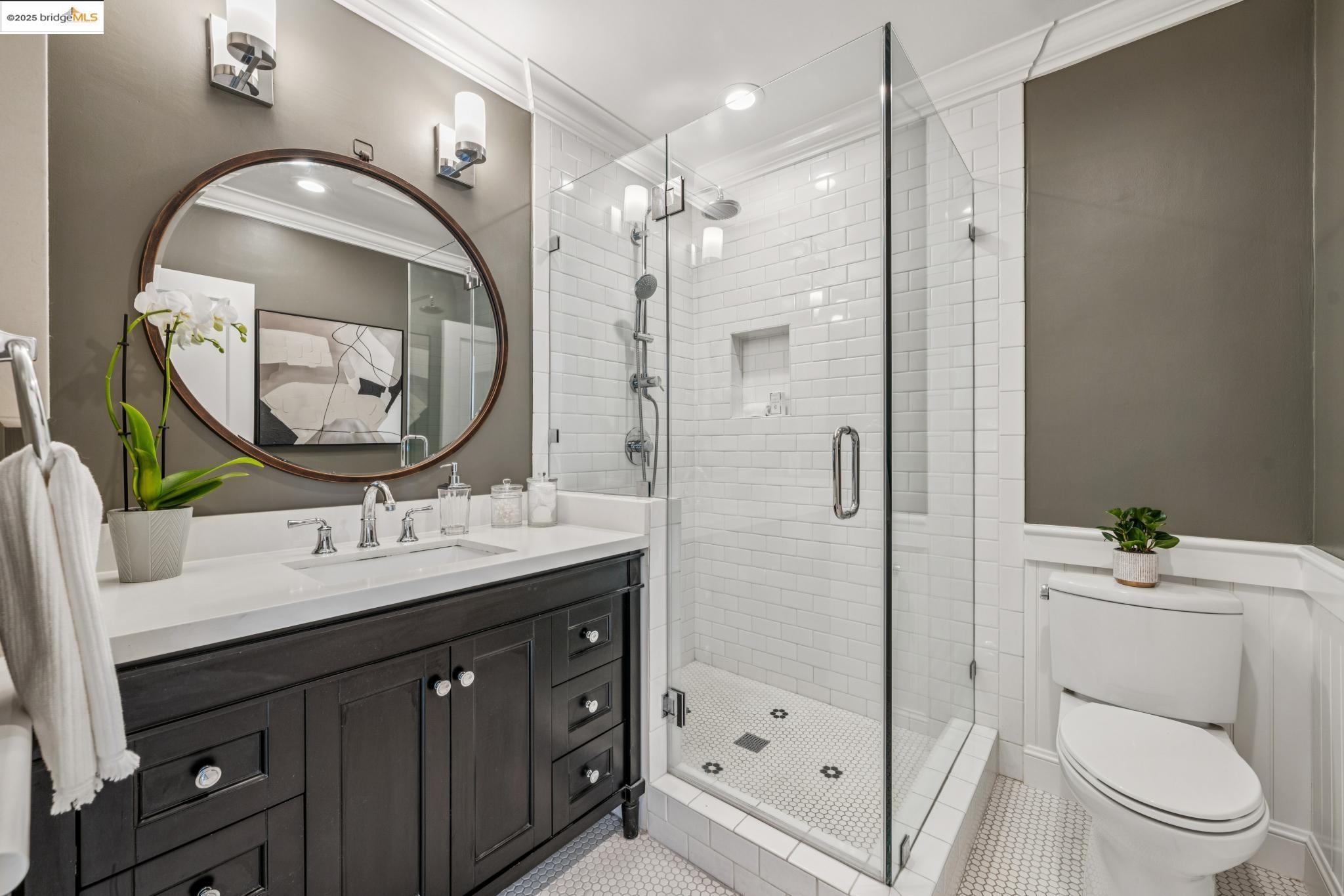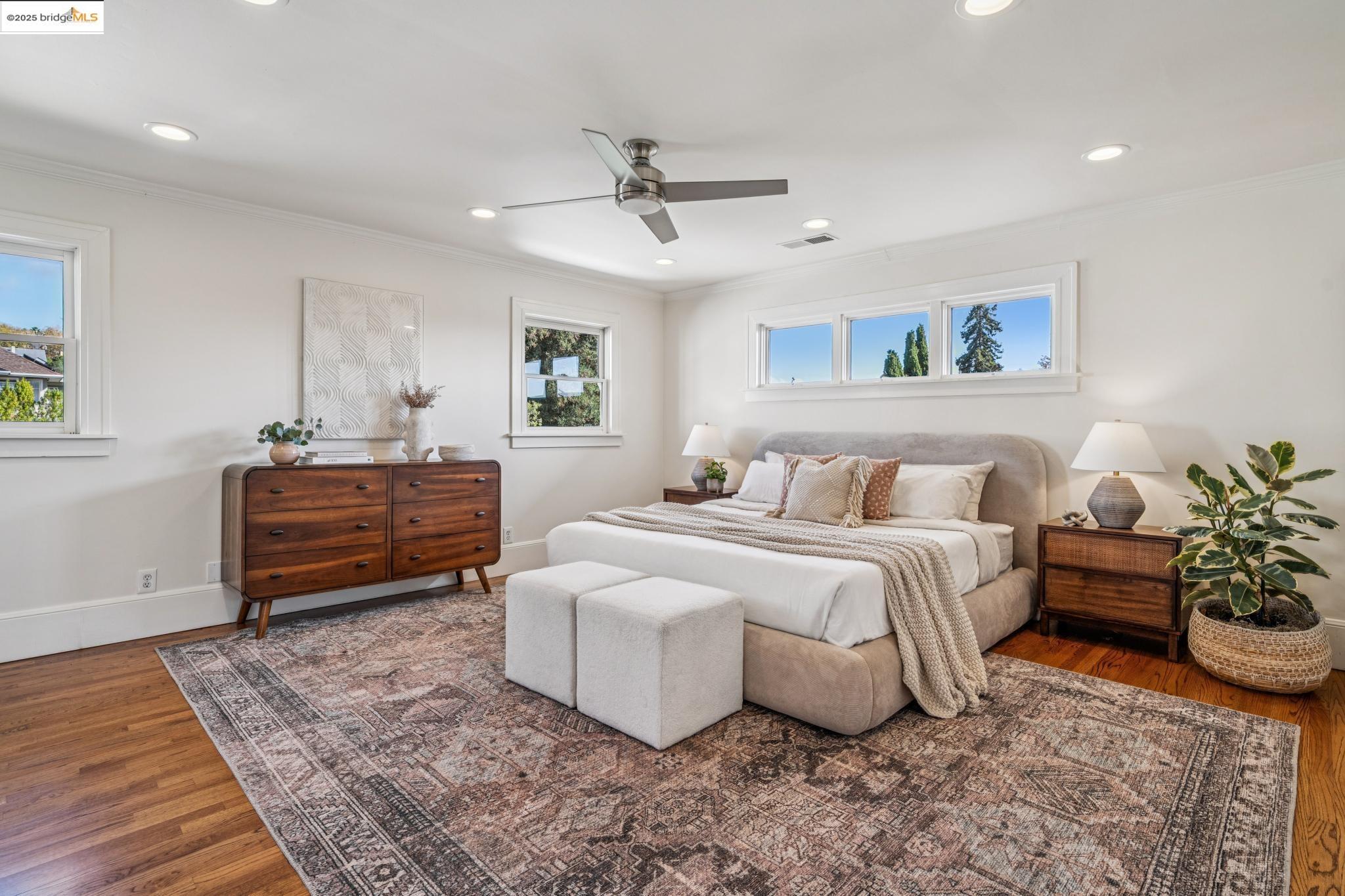 This is the one! - an updated Craftsman with all the bells and whistles! The main level layout is all about modern living and building memories with family and friends. The living room showcases lovely ceiling detail, a traditional fireplace and loads of light from the windows overlooking the front garden. Host holiday meals in the stylish dining room with a splash of wallpaper that elevates the space. The open kitchen has everything your inner chef desires: 36" range, stainless appliances, quartz countertops, island for ample work space and a walk-in pantry. The action happens in the family room, where you can enjoy our beautiful East Bay weather by opening the panoramic doors wide to the back deck, allowing the party to flow outside. Rounding out this floor are two bedrooms, a sleek hall bath, and a handy powder room. Head upstairs to see the primary bedroom with en-suite bath, a large second bedroom, and a separate cheerful office space perfect for the CEO of the house. The backyard is your go-to spot for entertaining with a built-in BBQ, flexible finished garage, dining patio, basketball hoop, and low-maintenance landscaping. Move right in and enjoy the owned solar, Piedmont's top-notch public schools, responsive city services, new aquatic center, and vibrant community!