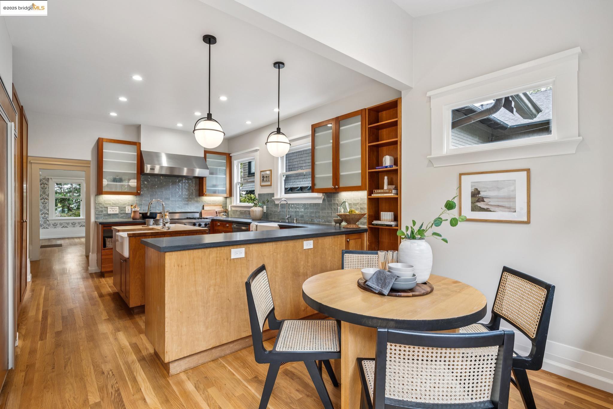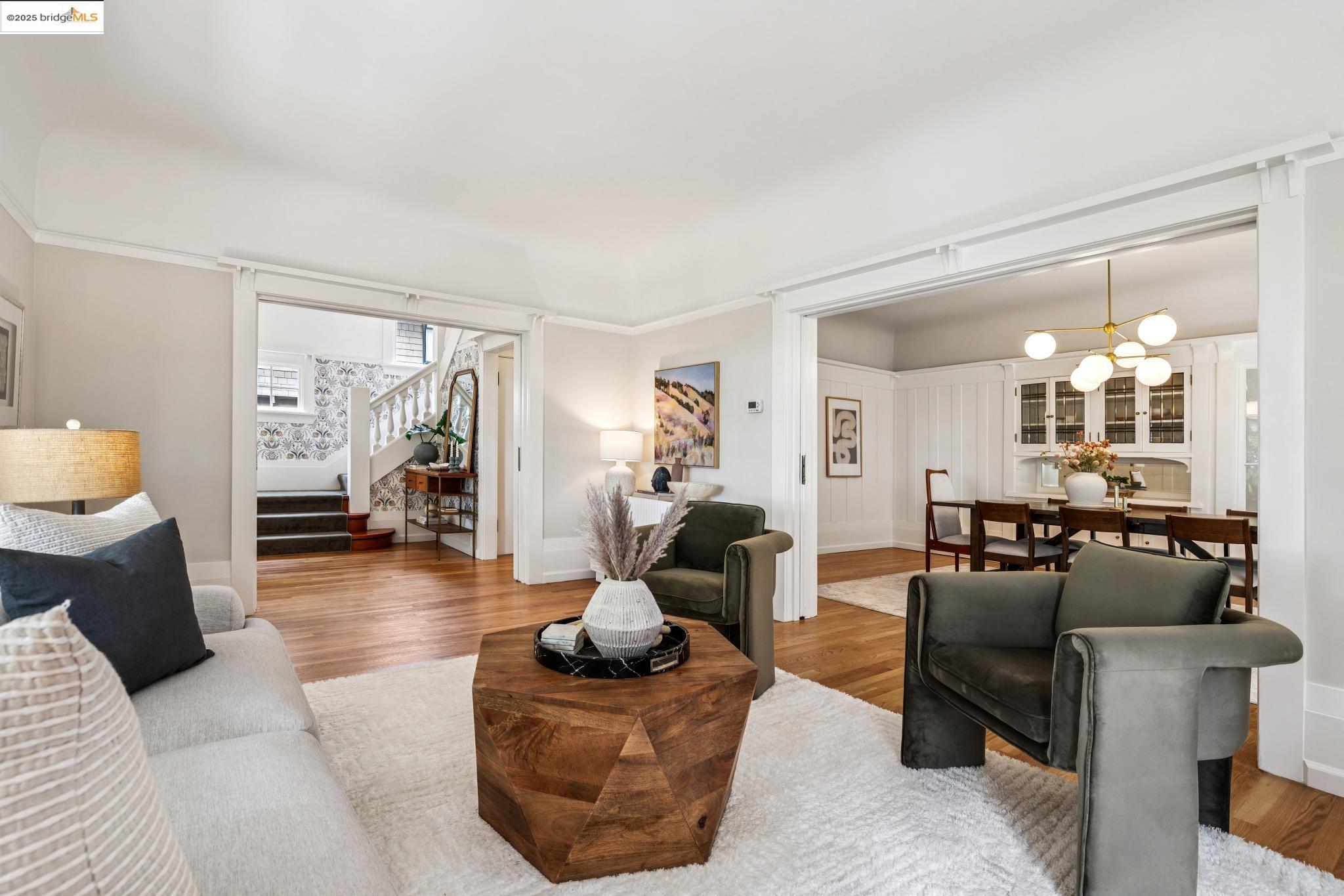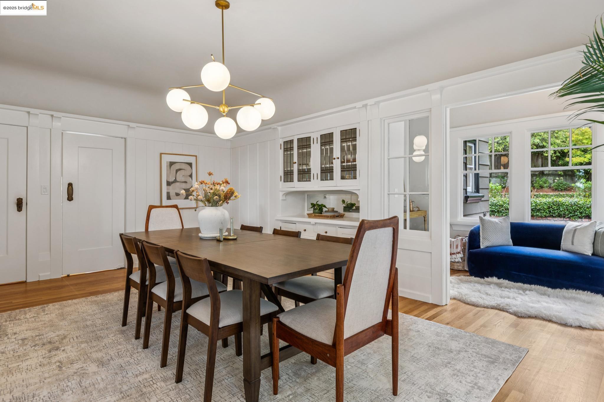 Fall in love with this picture-perfect Craftsman in the heart of Piedmont! From the broad front porch to the bold, designer wallpaper, this home blends classic charm with vibrant personality. Step inside and enjoy coved ceilings, original built-ins, and elegant living and dining rooms made for entertaining. French doors lead to a dreamy pergola-covered patio --perfect for dining under the stars or weekend brunches. Need a cozy place to snuggle up and read a book or watch TV? The adjacent sunroom has you covered. The large Chef's kitchen checks every box: custom cabinetry, quartz countertops, two sinks, stainless steel appliances, and tons of storage. Plus, it flows seamlessly into a cheery breakfast room and out to a lovely brick patio, level lawn, and blooming backyard--indoor-outdoor living at its best! A tucked-away office nook and stylish powder room complete the main floor. Upstairs features three sunlit bedrooms, two full baths, and a finished attic with 400+ sq ft of bonus space--think playroom, studio, or guest space. Located on one of Piedmont's favorite streets, near top-rated schools, parks, and the local market--with a brand-new state-of-the-art Aquatics Center coming soon, adding even more allure to this exceptional location! Come by for a look - you'll be glad you did!