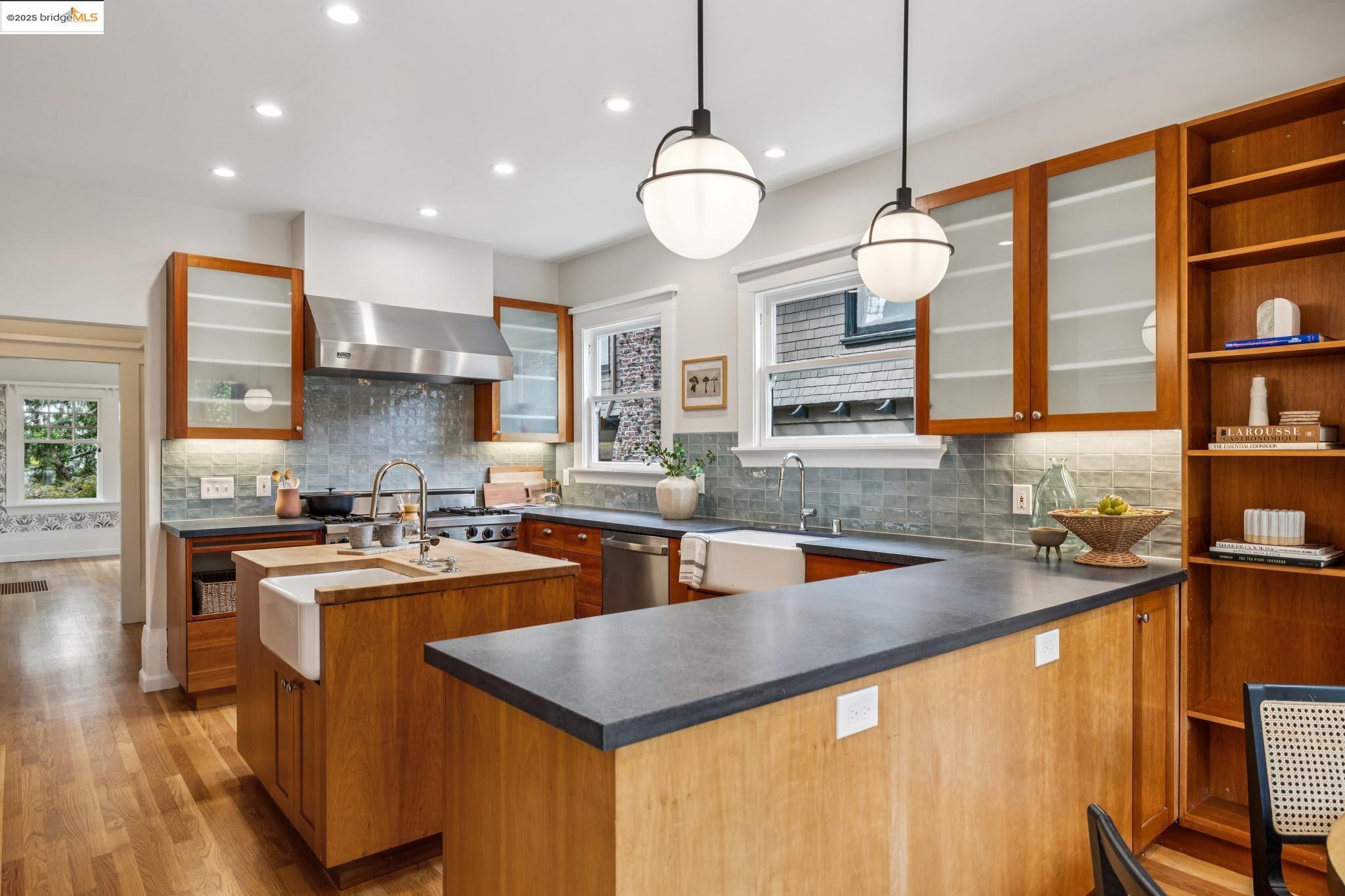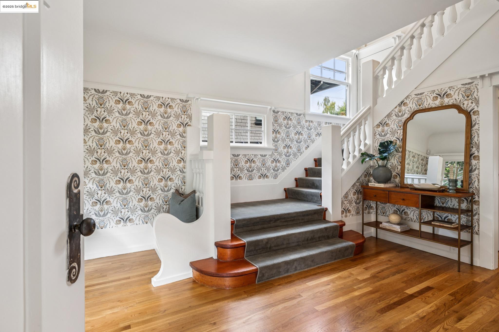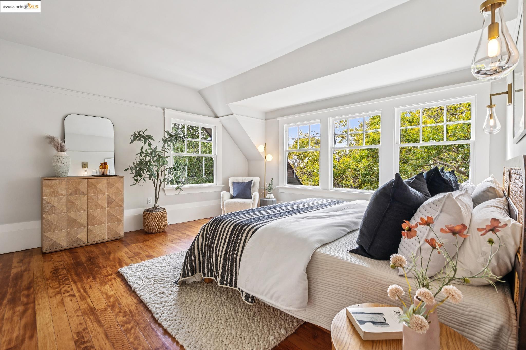 Fall in love with this picture-perfect Craftsman in the heart of Piedmont! From the broad front porch to the bold, designer wallpaper, this home blends classic charm with vibrant personality. Step inside and enjoy coved ceilings, original built-ins, and elegant living and dining rooms made for entertaining. French doors lead to a dreamy pergola-covered patio --perfect for dining under the stars or weekend brunches. Need a cozy place to snuggle up and read a book or watch TV? The adjacent sunroom has you covered. The large Chef's kitchen checks every box: custom cabinetry, quartz countertops, two sinks, stainless steel appliances, and tons of storage. Plus, it flows seamlessly into a cheery breakfast room and out to a lovely brick patio, level lawn, and blooming backyard--indoor-outdoor living at its best! A tucked-away office nook and stylish powder room complete the main floor. Upstairs features three sunlit bedrooms, two full baths, and a finished attic with 400+ sq ft of bonus space--think playroom, studio, or guest space. Located on one of Piedmont's favorite streets, near top-rated schools, parks, and the local market--with a brand-new state-of-the-art Aquatics Center coming soon, adding even more allure to this exceptional location! Come by for a look - you'll be glad you did!