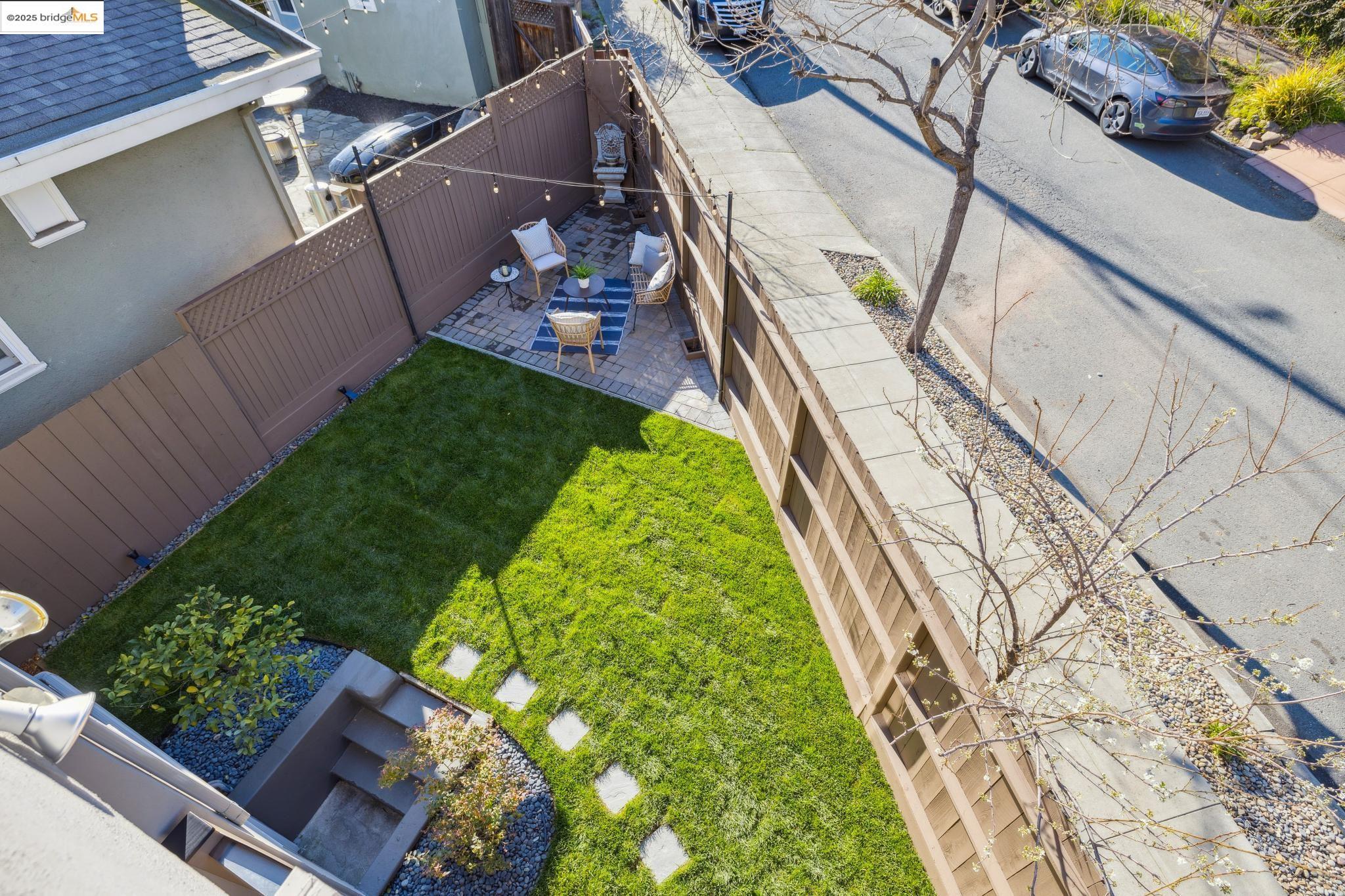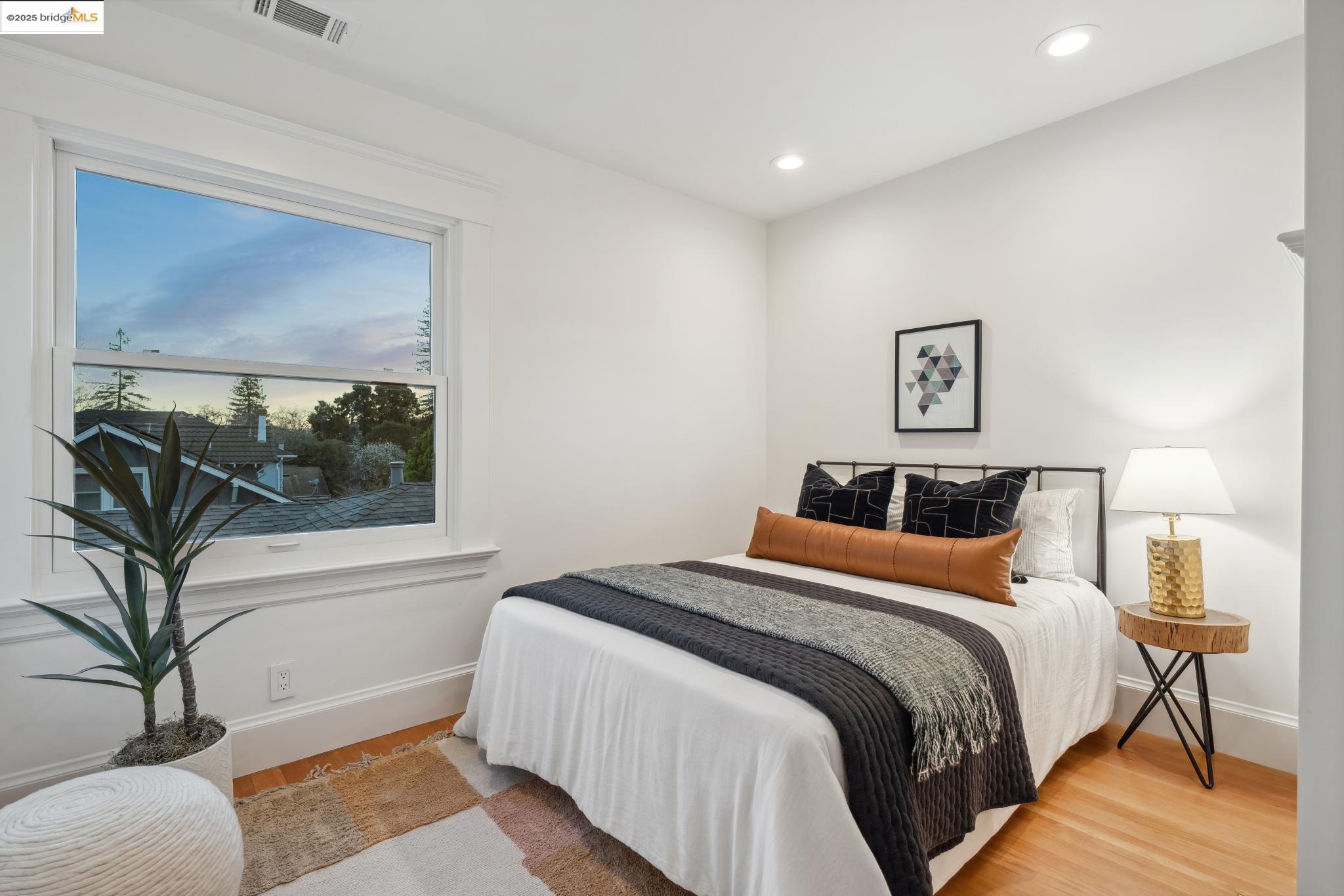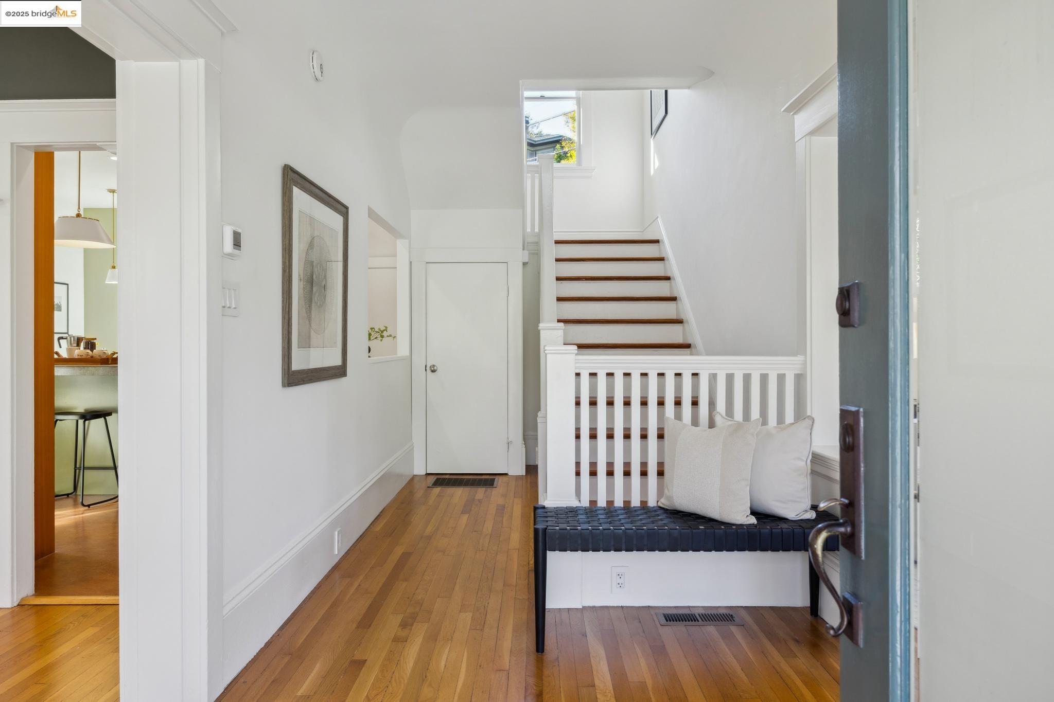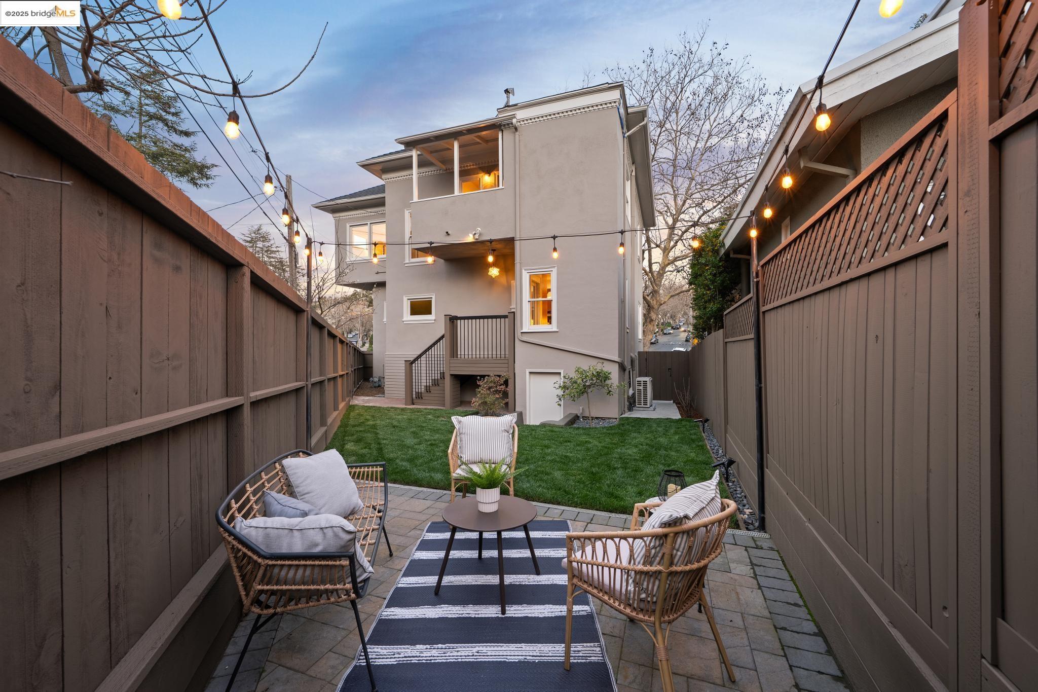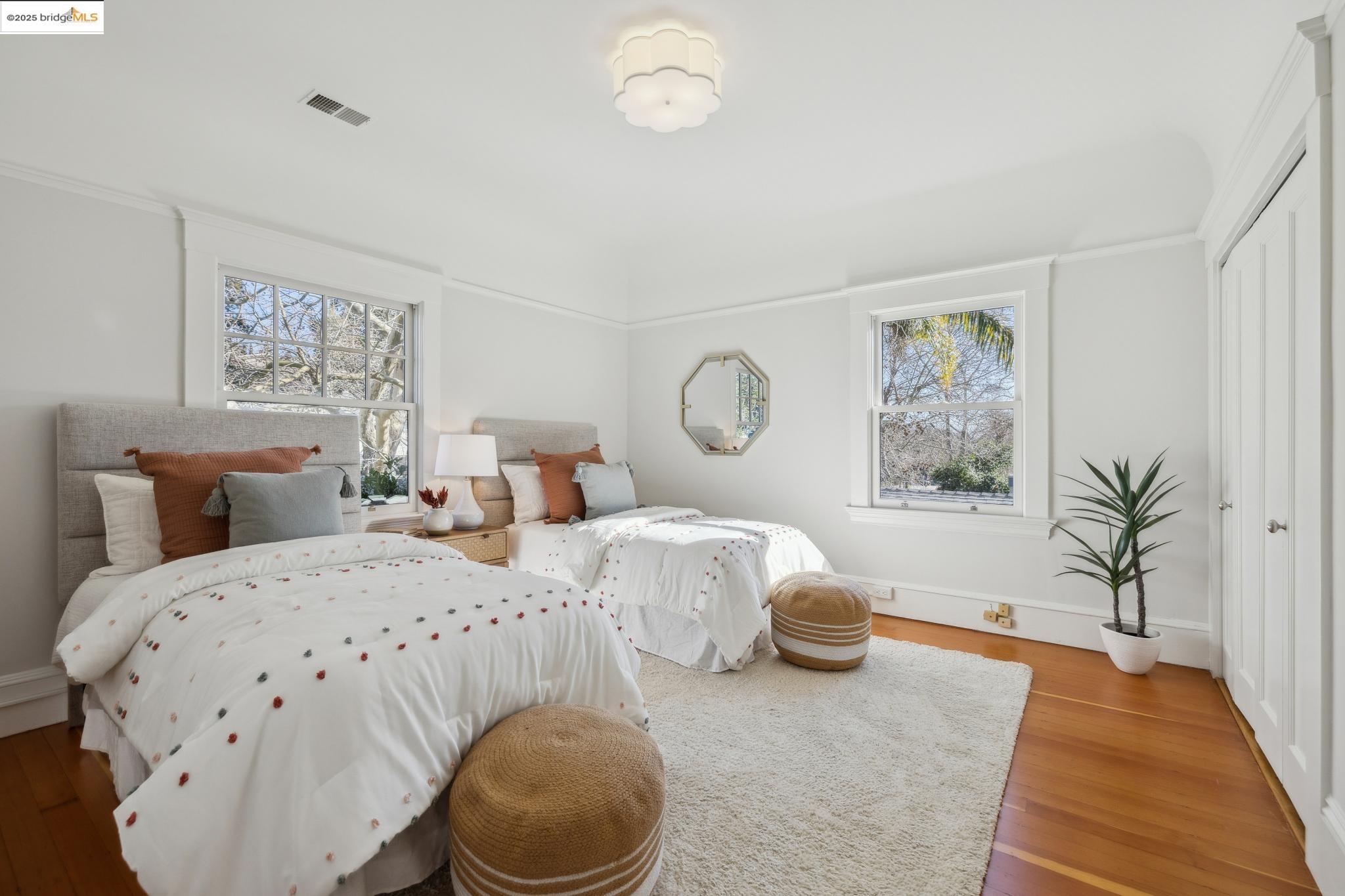 A true urban oasis, this gracious traditional has stately street presence and is sited on an open, light-filled corner lot close to schools, shops and restaurants. Warm and inviting, the foyer opens to a living room with high ceilings, arched windows and a distinguished fireplace. Windows on three sides ensure abundant natural light. The dining room is truly special, boasting the same charming arched windows, box-beam ceiling and beautiful period moldings. A large kitchen with stone countertops, a spacious island, and cabinet faced appliances is sleek and functional with ample storage and a sunny breakfast room with access to the backyard. A convenient powder room completes this floor. Four bedrooms upstairs include a large primary with ample closets and built-in seating, a sunny front room with French doors to a Juliet balcony, a spacious third bedroom and a tween sized sleeping room with access to a balcony overlooking the yard. An updated bathroom with double vanity completes this floor. The back and side yard are fully fenced for privacy with room to play and entertain. The garage & air conditioning add convenience and comfort to this lovely offering. Welcome to Piedmont!