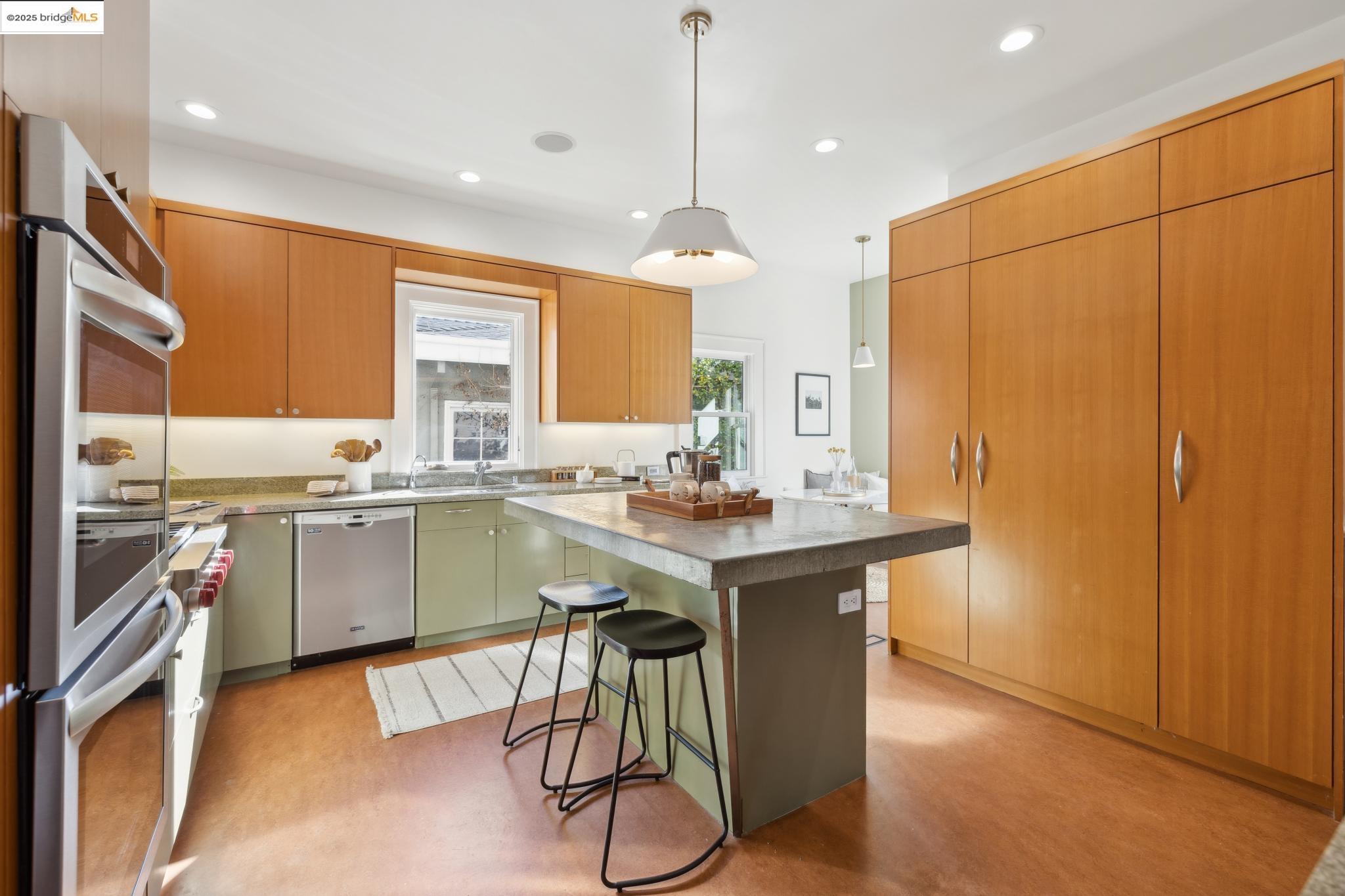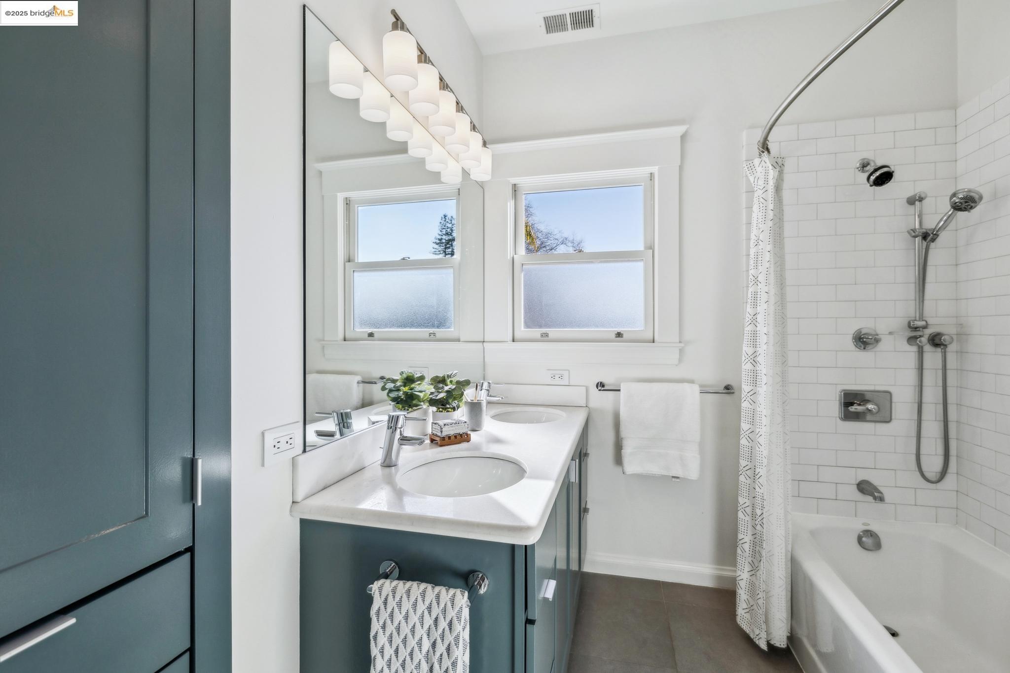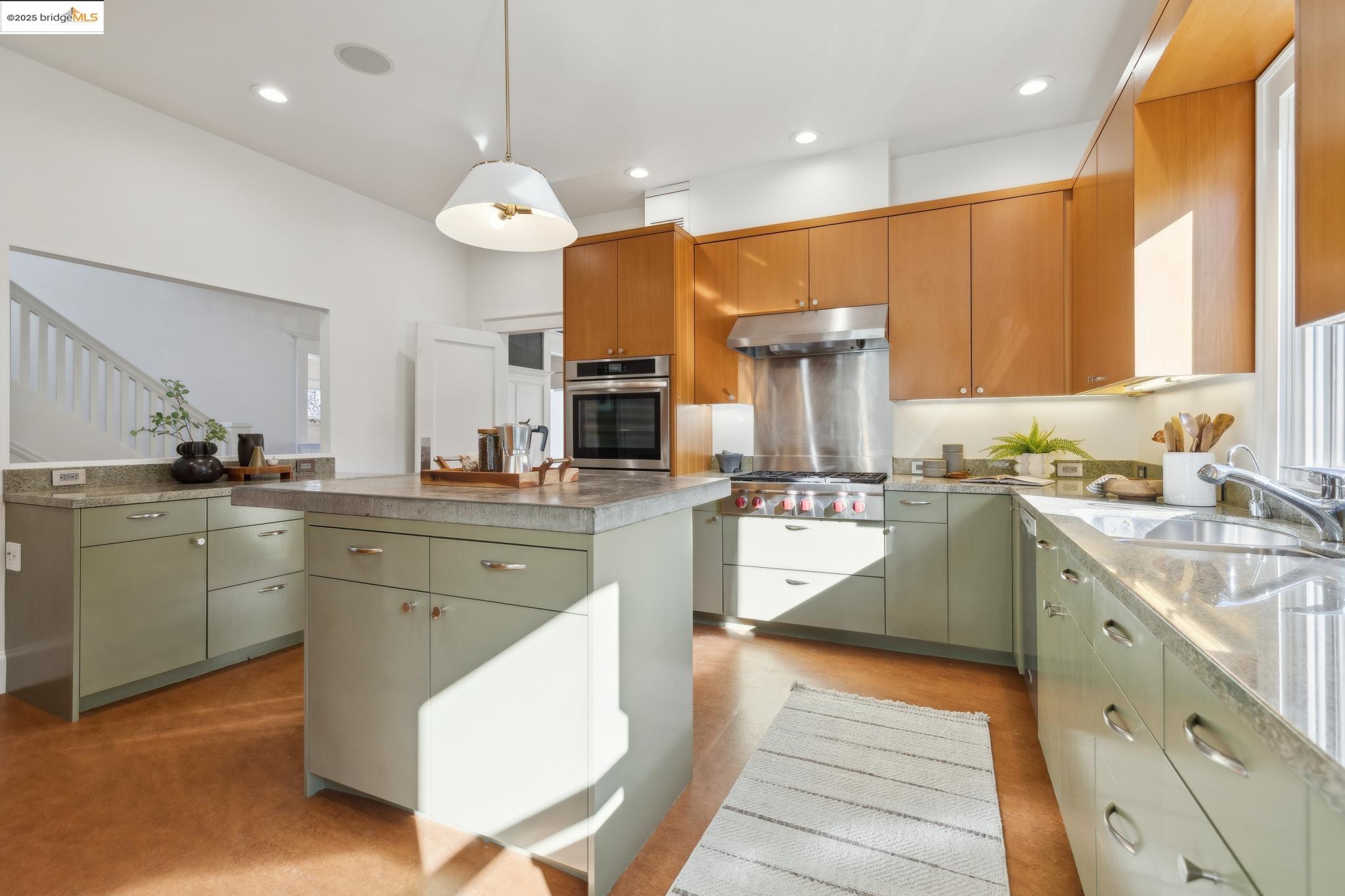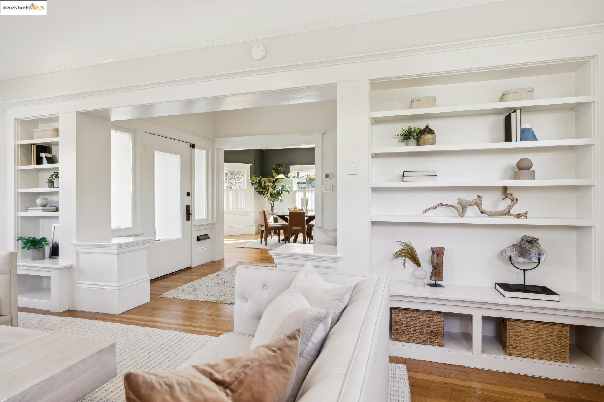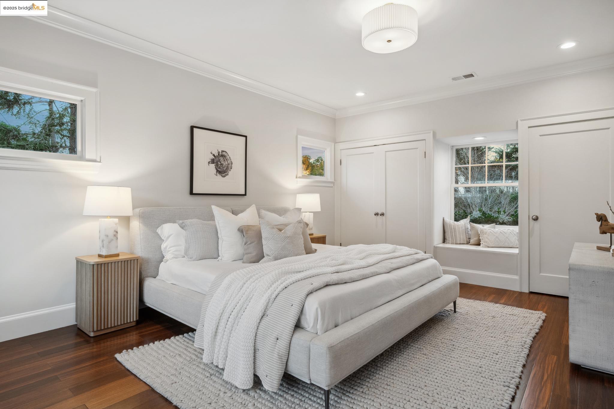 A true urban oasis, this gracious traditional has stately street presence and is sited on an open, light-filled corner lot close to schools, shops and restaurants. Warm and inviting, the foyer opens to a living room with high ceilings, arched windows and a distinguished fireplace. Windows on three sides ensure abundant natural light. The dining room is truly special, boasting the same charming arched windows, box-beam ceiling and beautiful period moldings. A large kitchen with stone countertops, a spacious island, and cabinet faced appliances is sleek and functional with ample storage and a sunny breakfast room with access to the backyard. A convenient powder room completes this floor. Four bedrooms upstairs include a large primary with ample closets and built-in seating, a sunny front room with French doors to a Juliet balcony, a spacious third bedroom and a tween sized sleeping room with access to a balcony overlooking the yard. An updated bathroom with double vanity completes this floor. The back and side yard are fully fenced for privacy with room to play and entertain. The garage & air conditioning add convenience and comfort to this lovely offering. Welcome to Piedmont!