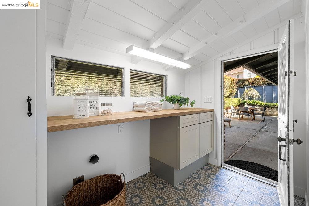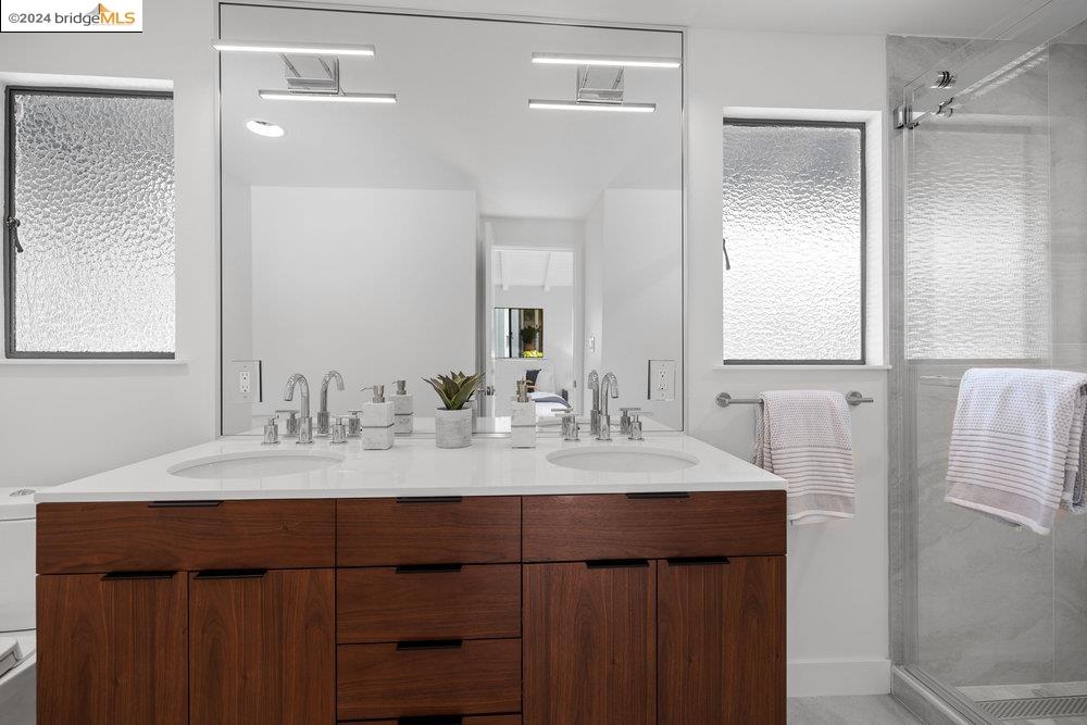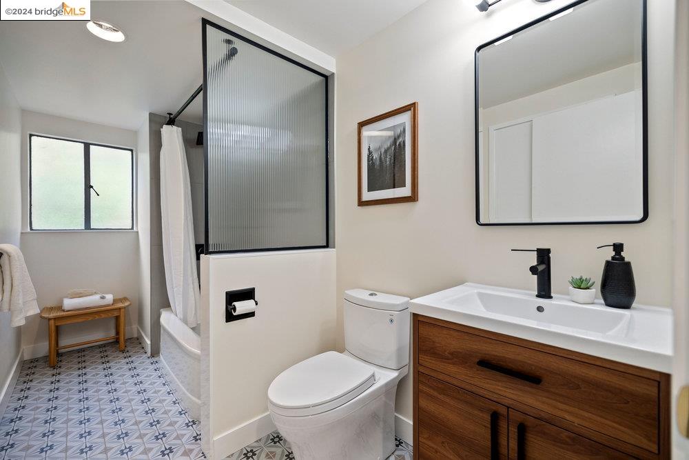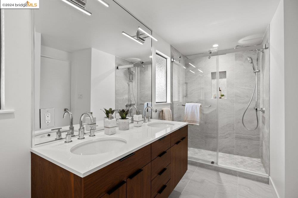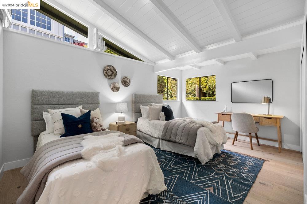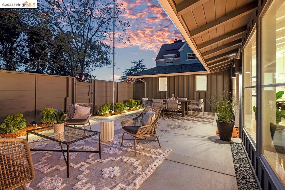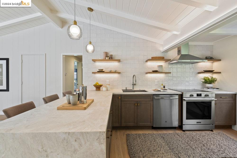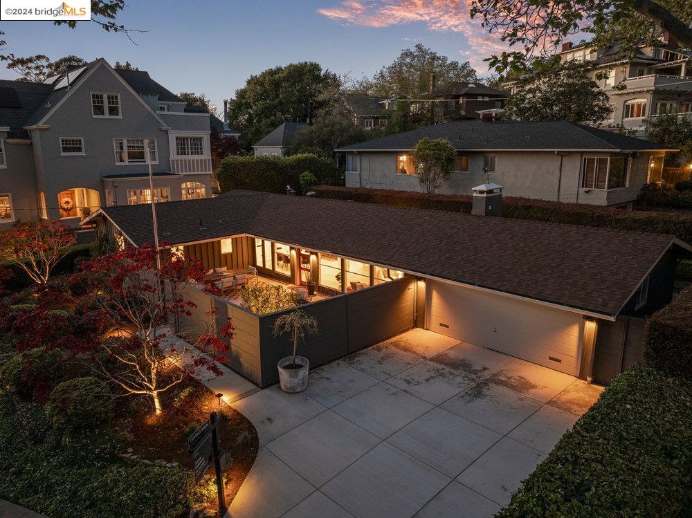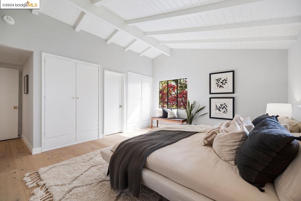 Stylish and unassuming, 160 Dracena Avenue offers all-level living on a beautiful tree-lined street near the center of Piedmont. The enclosed front courtyard and wall of windows blur the line between indoors and out. Vaulted wood ceilings create visual interest and a sense of expansiveness in the home. New wide-plank white oak floors run throughout the living spaces for a breezy, modern look. The open kitchen features new cabinetry, honed quartzite countertops, an induction range, floating shelves, and a double pantry. The dining area opens directly to the front patio, making it a wonderful place to entertain. A cozy fireplace with new tile surround and mantle anchors the open living room. Two bedrooms share a newly renovated bathroom just off the main living space. The primary suite provides a peaceful getaway with a newly renovated bathroom and views of the front garden. The attached two-car garage seals the deal for easy living in this exceptional mid-century home. Once you leave the front door, you will find yourself directly across from serene Dracena Park and a short stroll to top-rated schools, Mulberry's Market, the Piedmont Center for the Arts, sport courts, and more - welcome home!