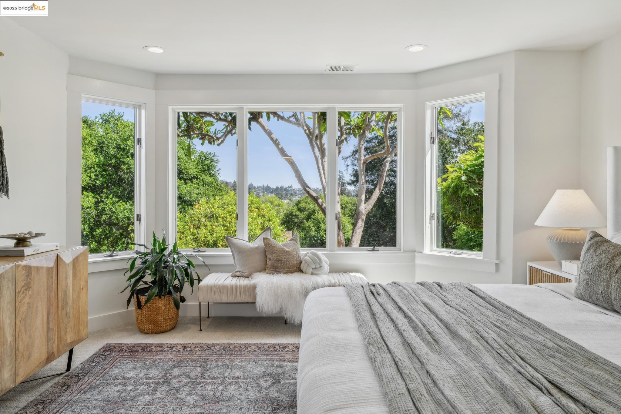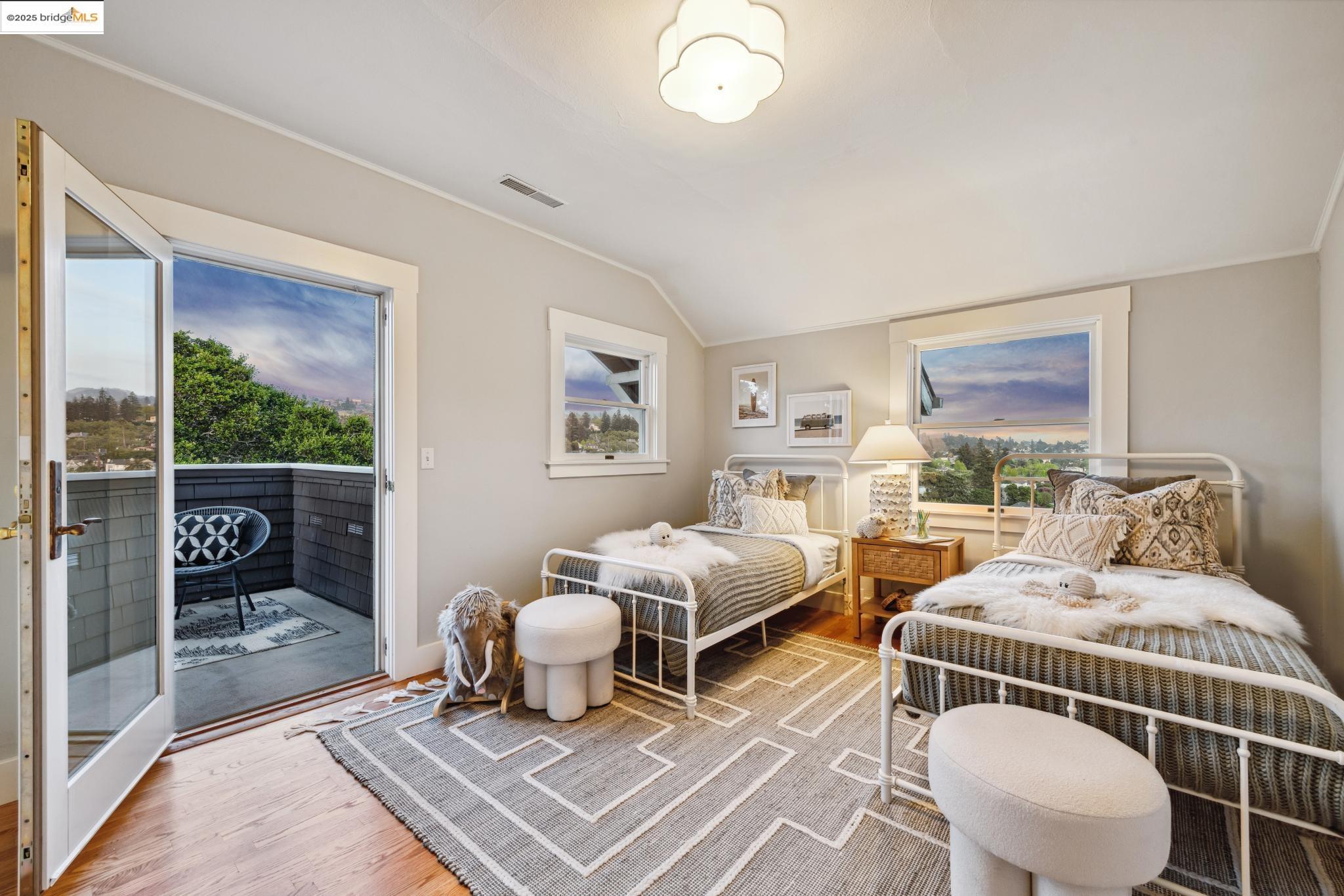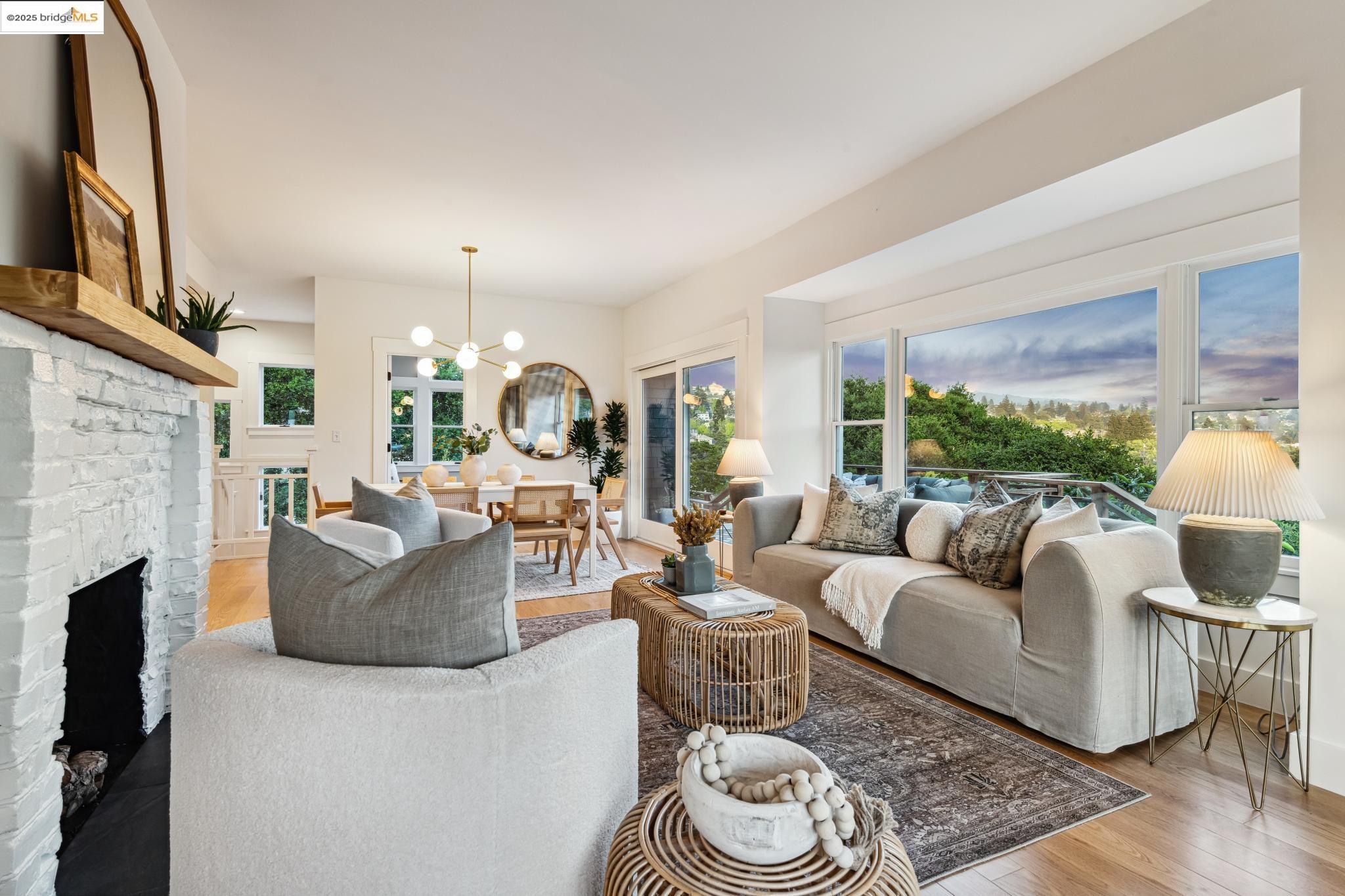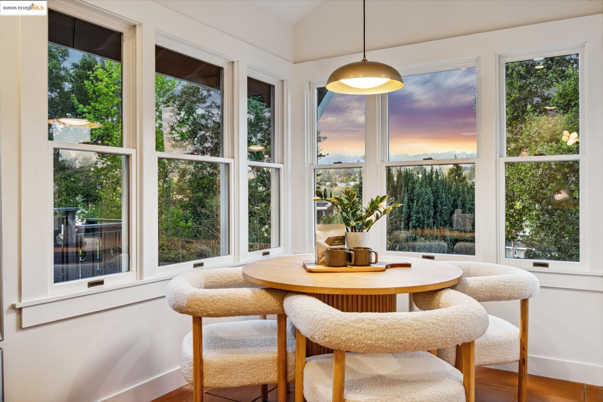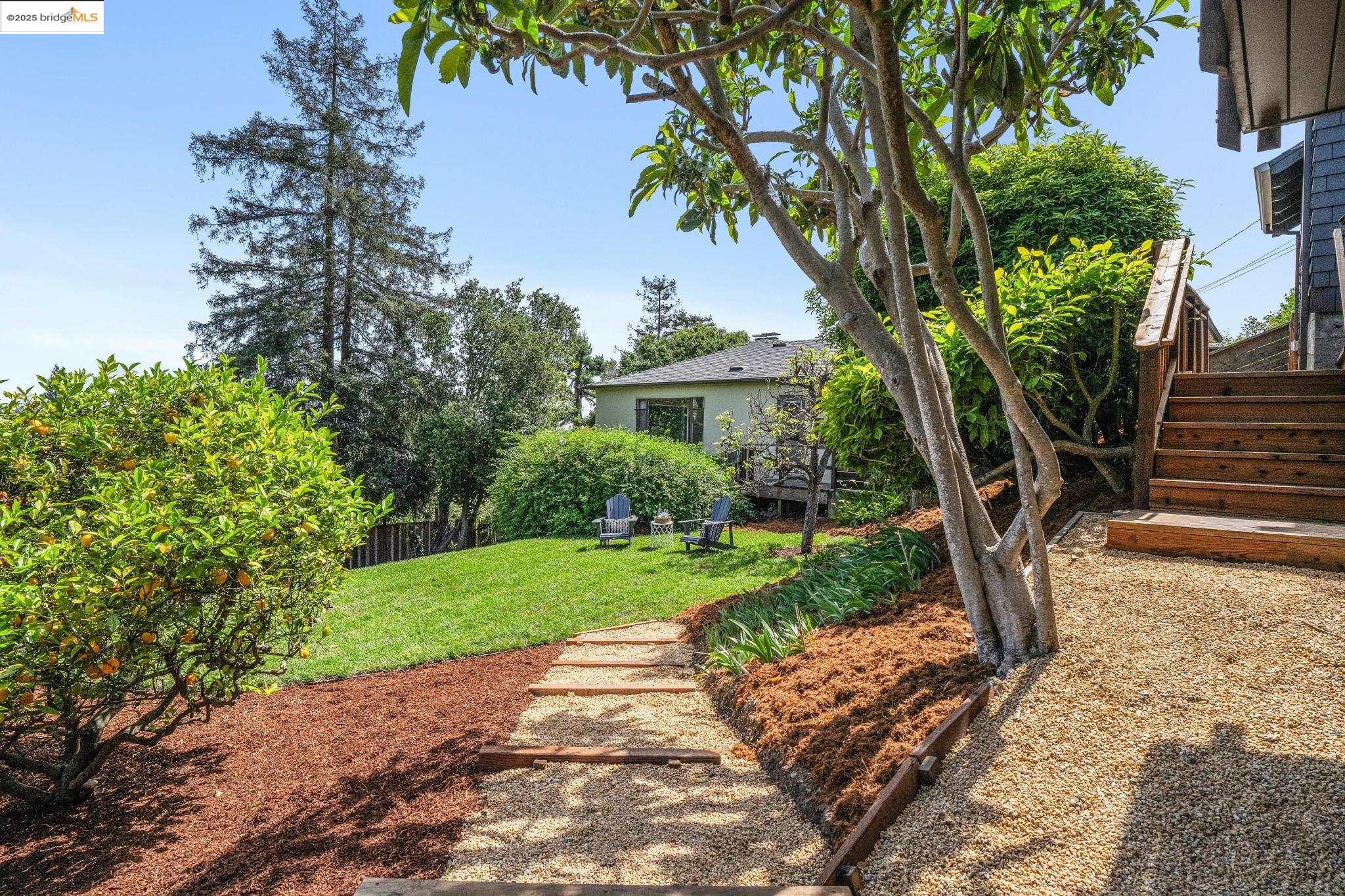 Classic brown shingled charmer packed with contemporary flair and upgrades galore! Sited on a rare and expansive double corner lot this special offering features 4 spacious bedrooms and 2.5 updated bathrooms. The main level is perfect for modern living and entertaining with a spacious great room, verdant views and french doors leading to the outside decks, level lawn and sweeping yard with fruit trees and unlimited potential. Located to stay connected to the action, the kitchen is fresh and bright with new countertops, stainless steel appliances and a sun-filled breakfast room. A comfy den and powder room complete this floor. Upstairs boasts three roomy bedrooms and a recently upgraded split bath. The lower level primary bedroom with ensuite bath has multiple windows framing the views and direct access to the outside. An adjacent laundry room connects to a storage space large enough to pack away anything & everything. Notable upgrades include seismic retrofitting, high-end windows, updated electrical, copper plumbing, owned solar, renovated kitchen, updated baths and a 'design award' winning garage built in 2023. Just around the corner from beloved Beach Elementary and close to Piedmont Ave shops & restaurants. Access to Piedmont's acclaimed schools & services!