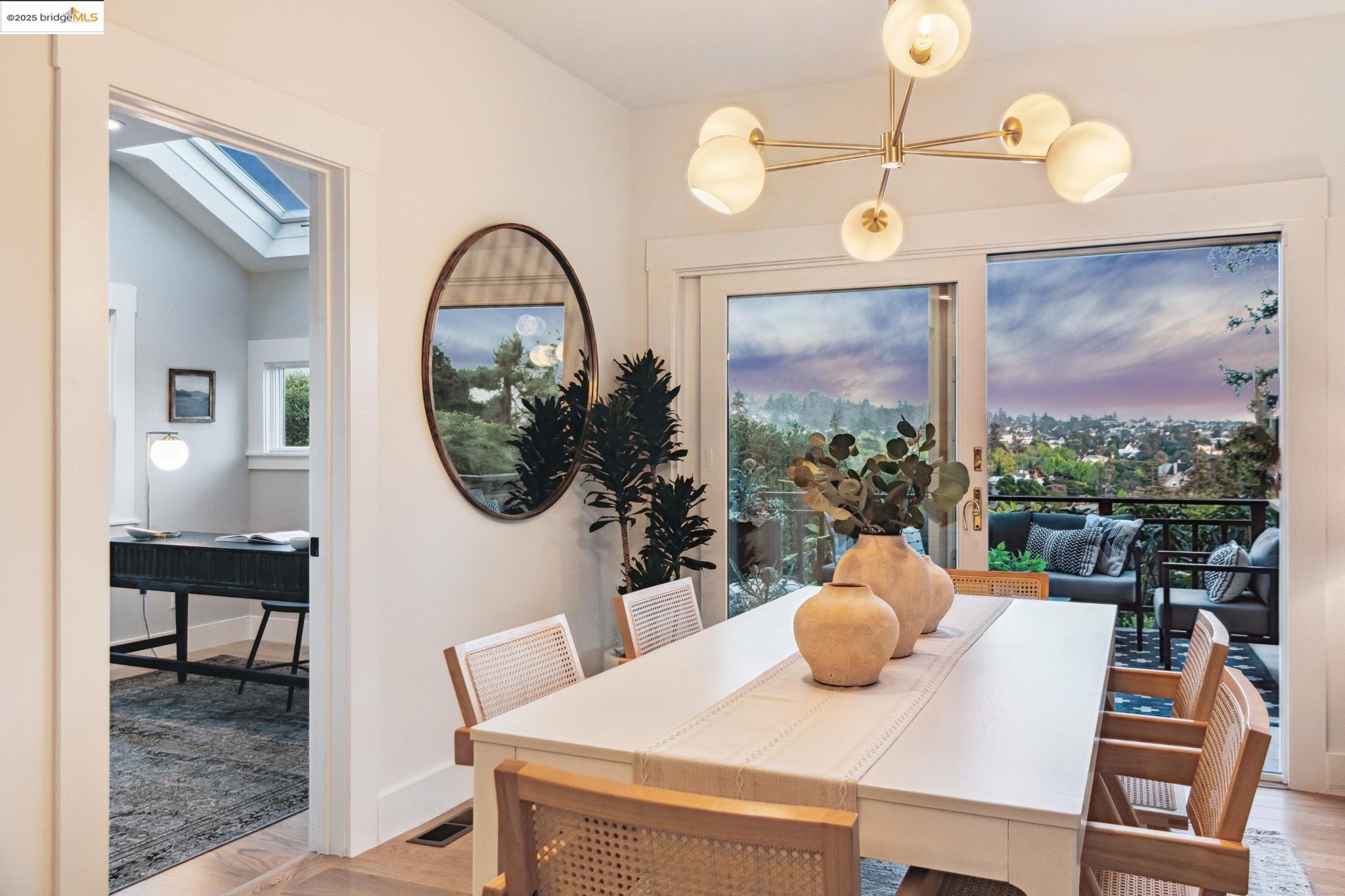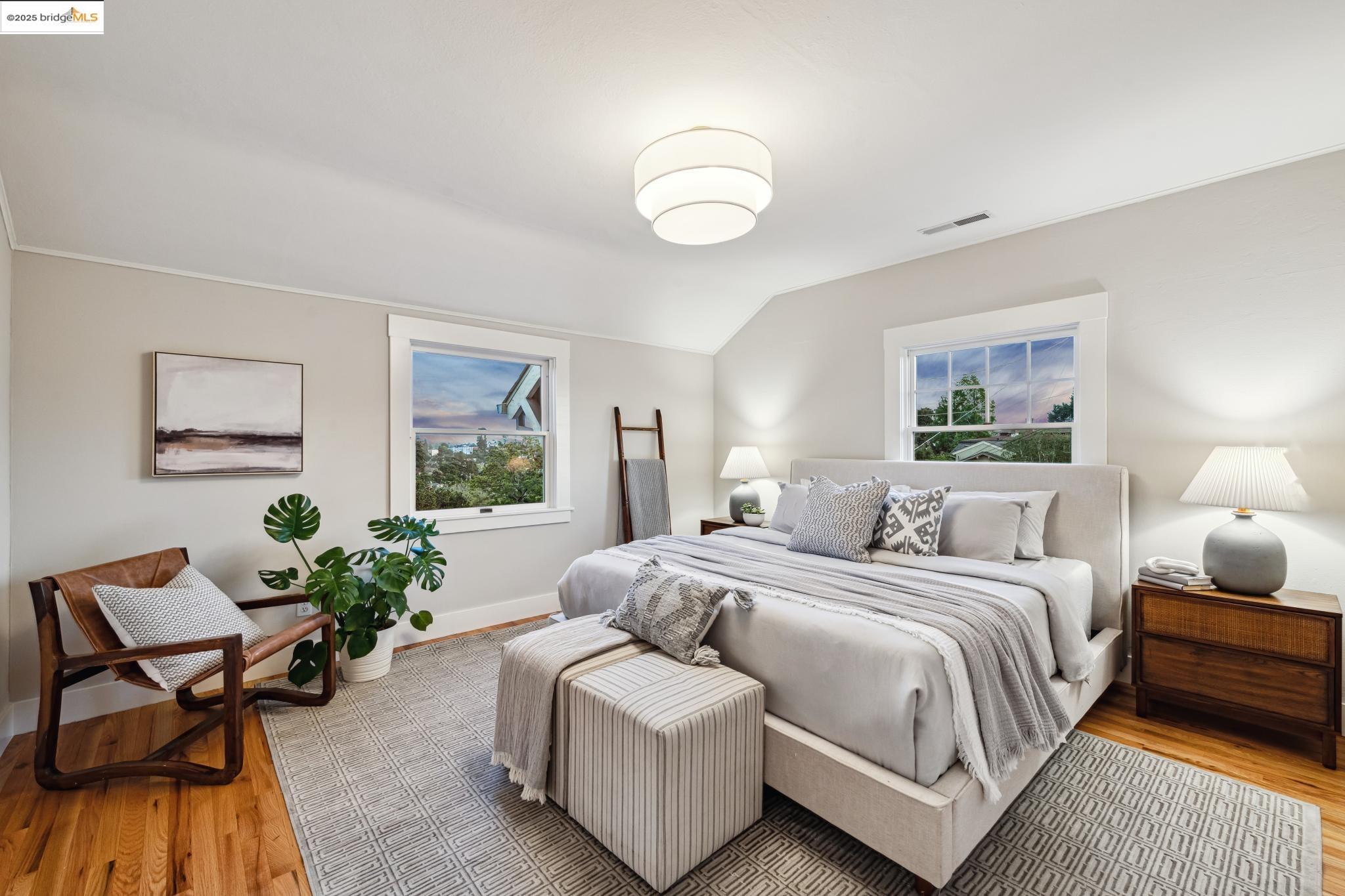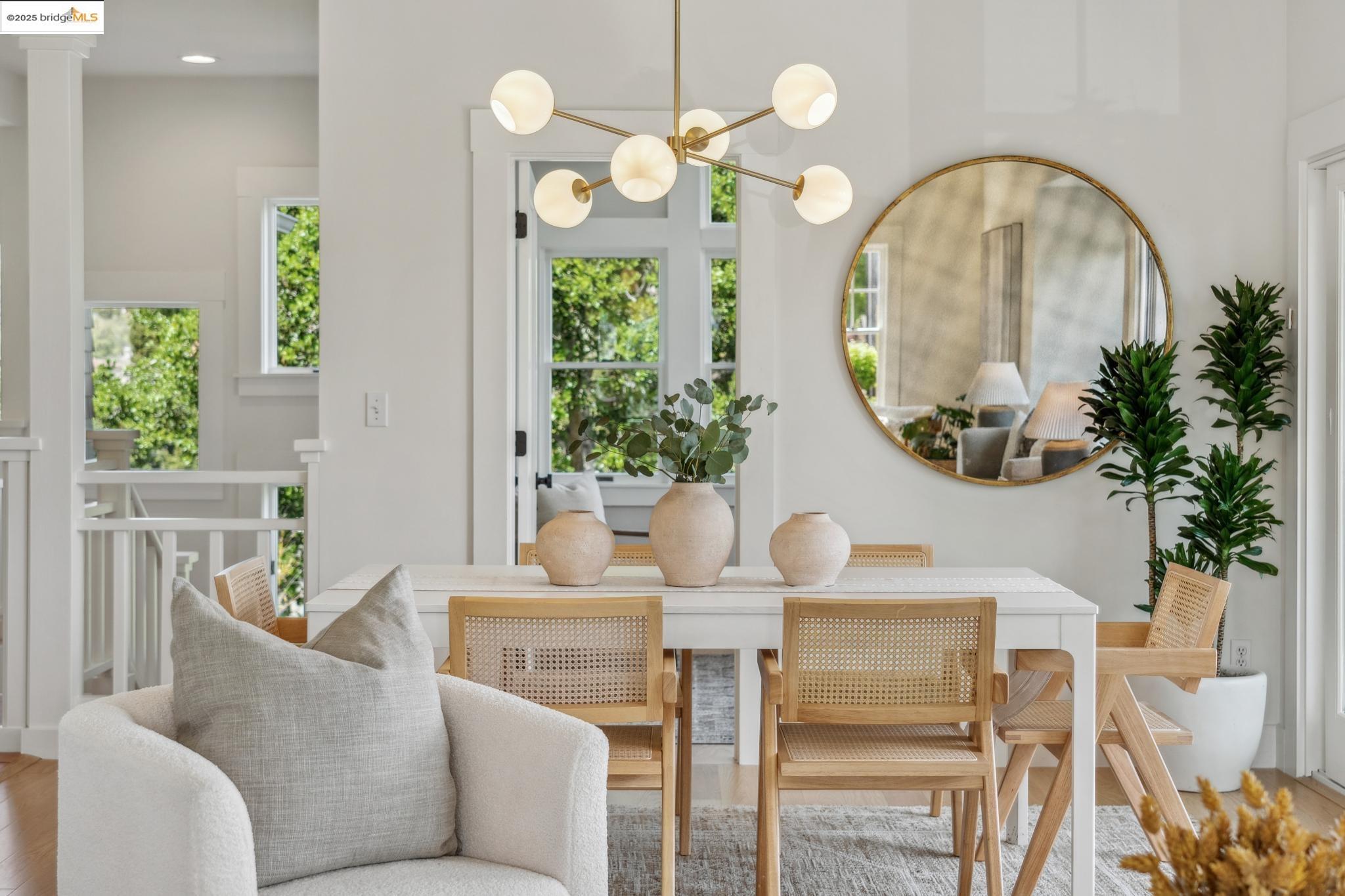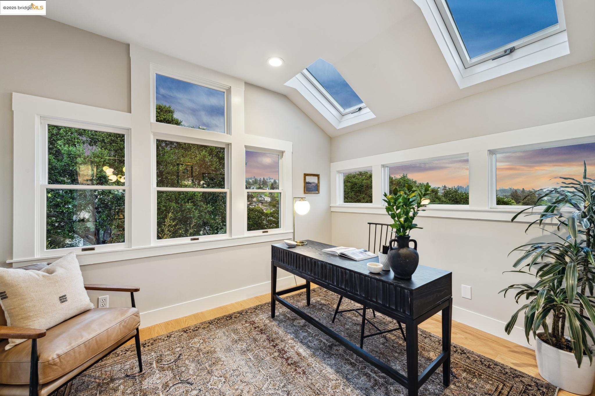 Classic brown shingled charmer packed with contemporary flair and upgrades galore! Sited on a rare and expansive double corner lot this special offering features 4 spacious bedrooms and 2.5 updated bathrooms. The main level is perfect for modern living and entertaining with a spacious great room, verdant views and french doors leading to the outside decks, level lawn and sweeping yard with fruit trees and unlimited potential. Located to stay connected to the action, the kitchen is fresh and bright with new countertops, stainless steel appliances and a sun-filled breakfast room. A comfy den and powder room complete this floor. Upstairs boasts three roomy bedrooms and a recently upgraded split bath. The lower level primary bedroom with ensuite bath has multiple windows framing the views and direct access to the outside. An adjacent laundry room connects to a storage space large enough to pack away anything & everything. Notable upgrades include seismic retrofitting, high-end windows, updated electrical, copper plumbing, owned solar, renovated kitchen, updated baths and a 'design award' winning garage built in 2023. Just around the corner from beloved Beach Elementary and close to Piedmont Ave shops & restaurants. Access to Piedmont's acclaimed schools & services!
