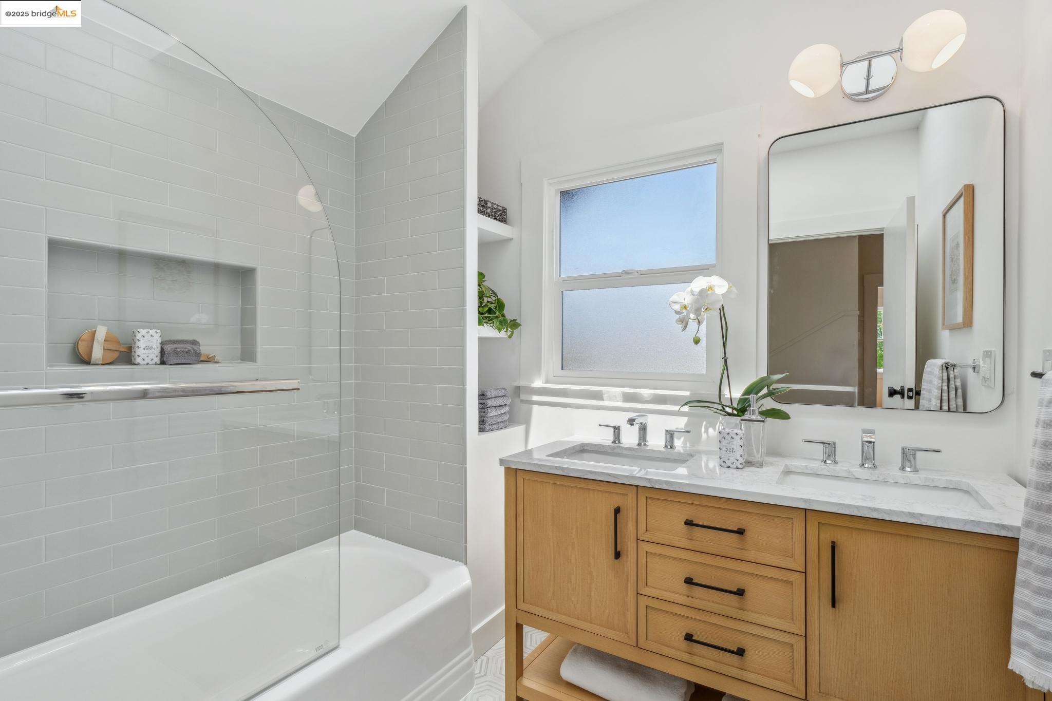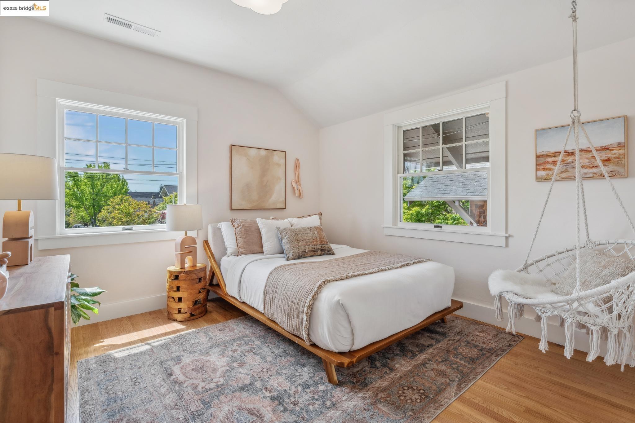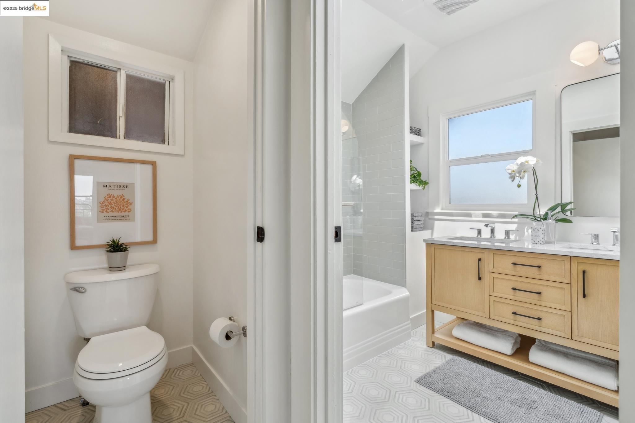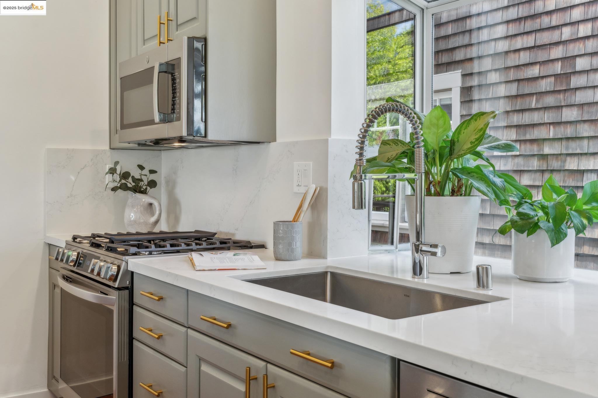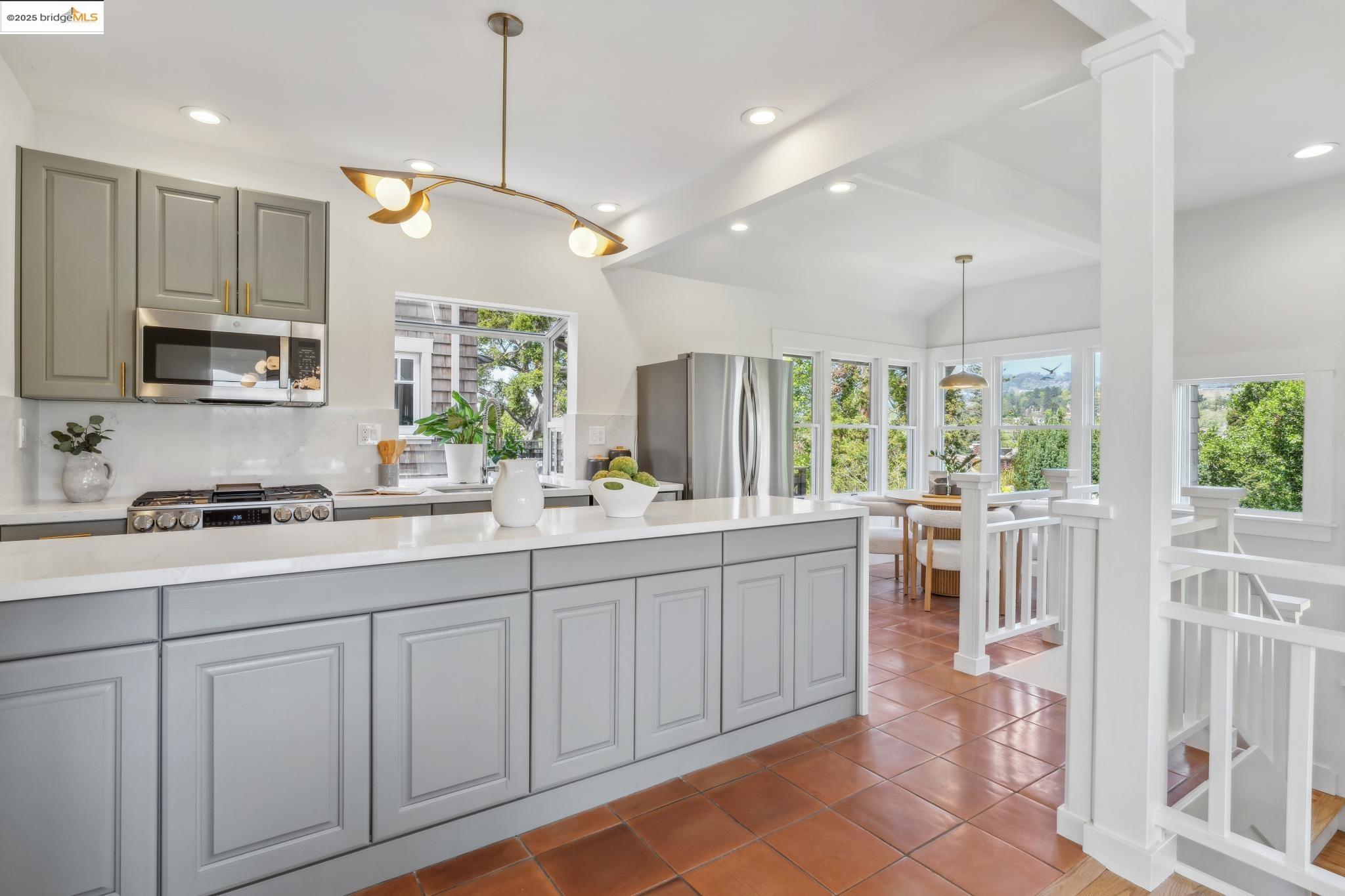 Classic brown shingled charmer packed with contemporary flair and upgrades galore! Sited on a rare and expansive double corner lot this special offering features 4 spacious bedrooms and 2.5 updated bathrooms. The main level is perfect for modern living and entertaining with a spacious great room, verdant views and french doors leading to the outside decks, level lawn and sweeping yard with fruit trees and unlimited potential. Located to stay connected to the action, the kitchen is fresh and bright with new countertops, stainless steel appliances and a sun-filled breakfast room. A comfy den and powder room complete this floor. Upstairs boasts three roomy bedrooms and a recently upgraded split bath. The lower level primary bedroom with ensuite bath has multiple windows framing the views and direct access to the outside. An adjacent laundry room connects to a storage space large enough to pack away anything & everything. Notable upgrades include seismic retrofitting, high-end windows, updated electrical, copper plumbing, owned solar, renovated kitchen, updated baths and a 'design award' winning garage built in 2023. Just around the corner from beloved Beach Elementary and close to Piedmont Ave shops & restaurants. Access to Piedmont's acclaimed schools & services!
