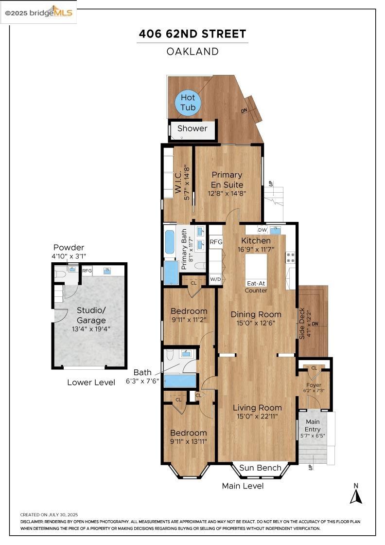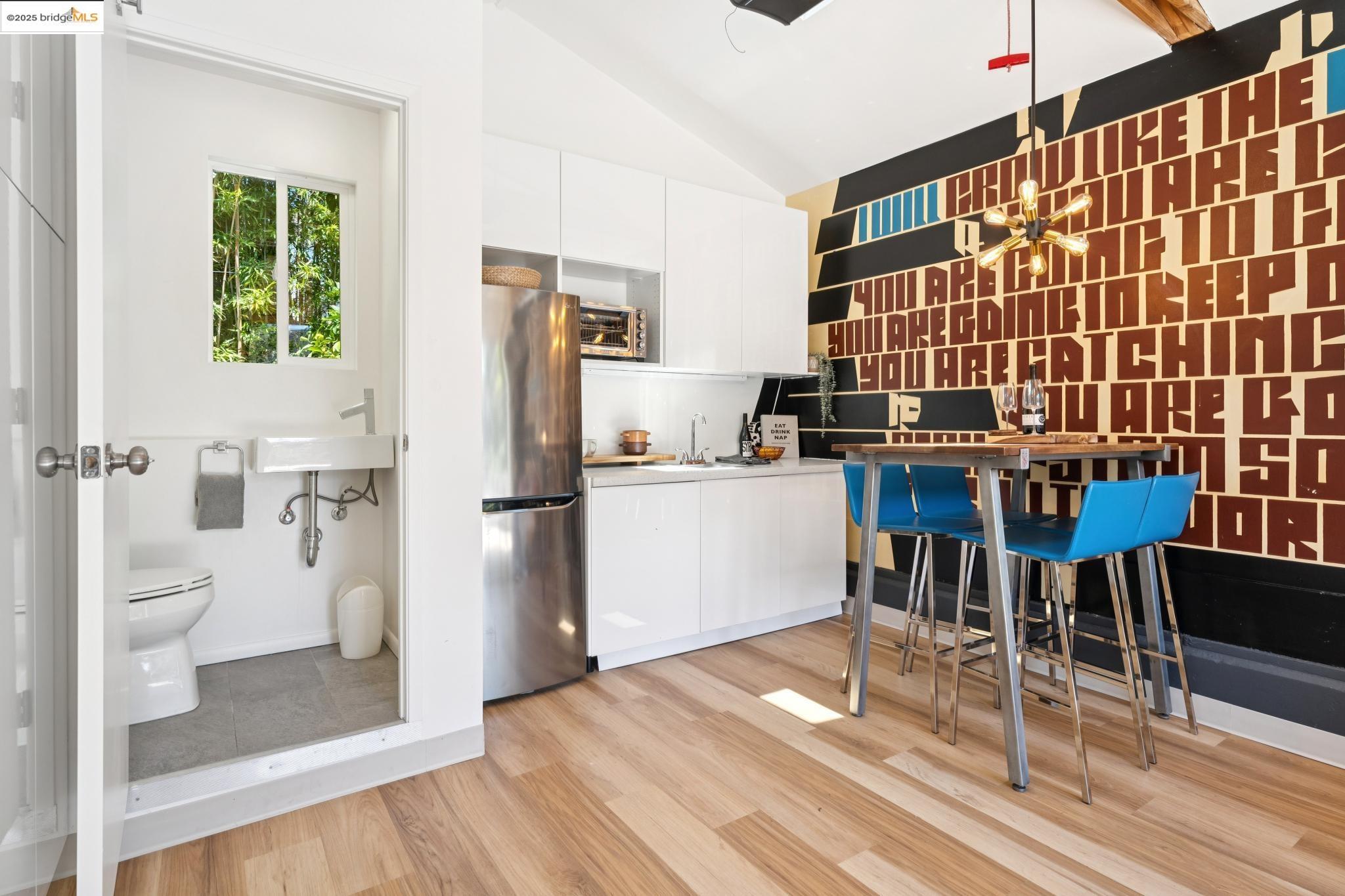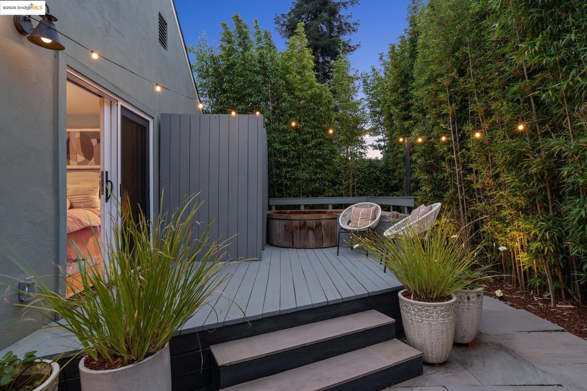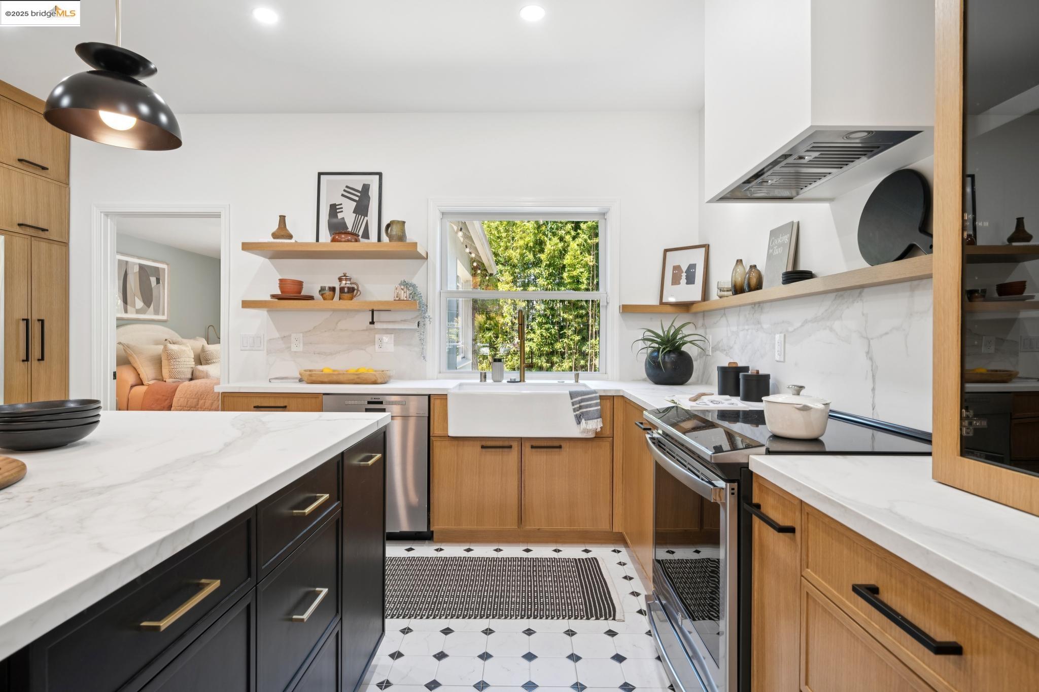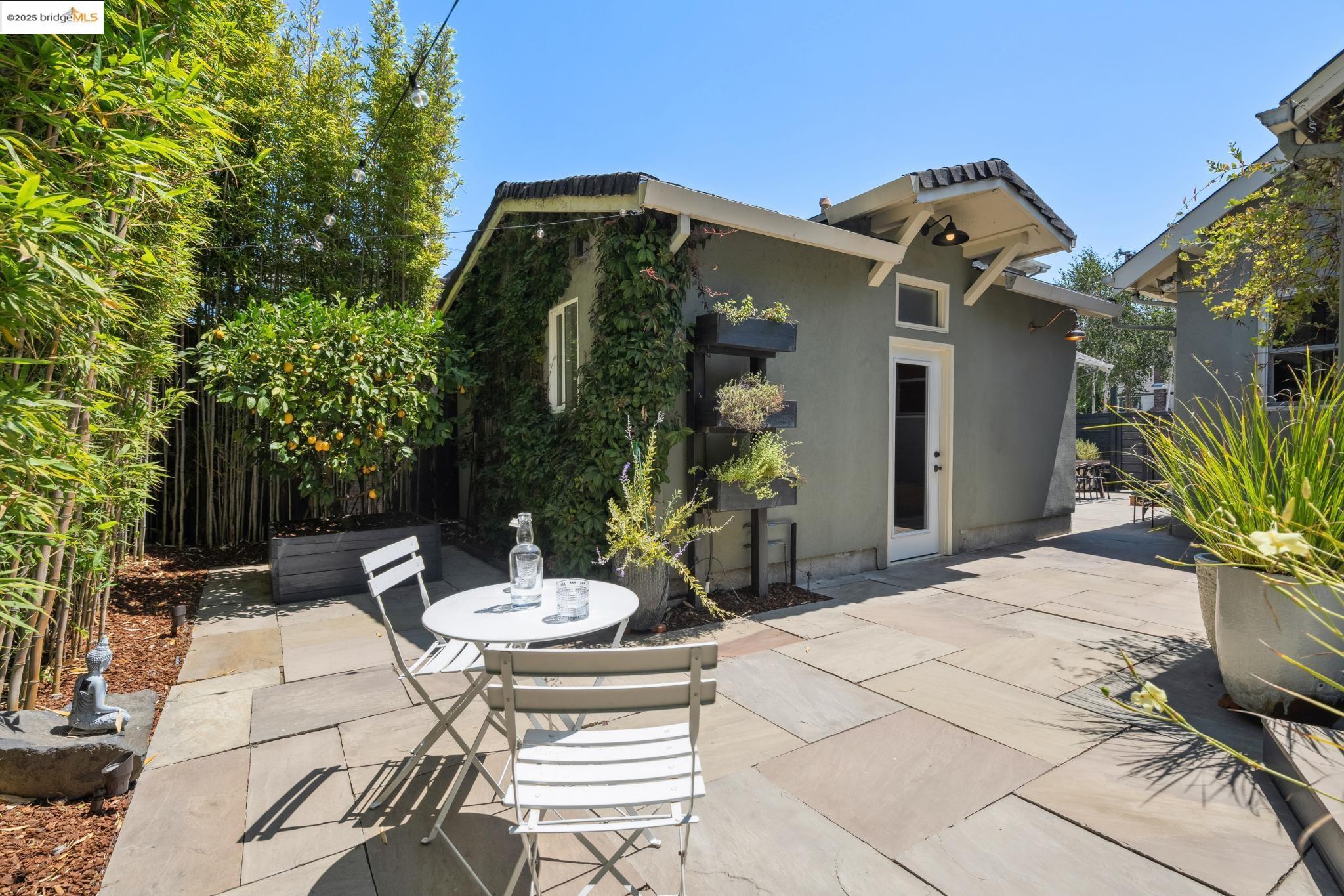 Welcome to your dreamy Rockridge retreat! This reimagined single-level bungalow brings serious style and none of the stress to one of Oakland's most beloved neighborhoods. Step into a bright, open layout with high ceilings and a cozy bay window seat--perfect for morning coffee or lazy Sundays. The swoon-worthy designer kitchen features gorgeous countertops, a farmhouse sink with a picture window, a massive island, and custom cabinetry that includes hidden laundry, pantry, and more. The primary suite is a luxurious private haven, designed with relaxation and restoration in mind. The spa-inspired bathroom, large walk-in closet, and direct access to your private outdoor oasis give off staycation vibes. Soak in the Japanese hot tub, rinse off under the outdoor shower, and take in the sounds of the bamboo garden's water feature. Need space to create, work, or chill? The detached garage is now a cool studio with a wet bar, half bath, custom mural, and roll-up door--ready for whatever you dream up. Just a quick stroll to College Ave, Market Hall, Rockridge BART, and all your favorite local spots. Living here means you're never far from what you need--and even closer to what you love. This home checks every box--style, comfort, and location. Come fall in love!