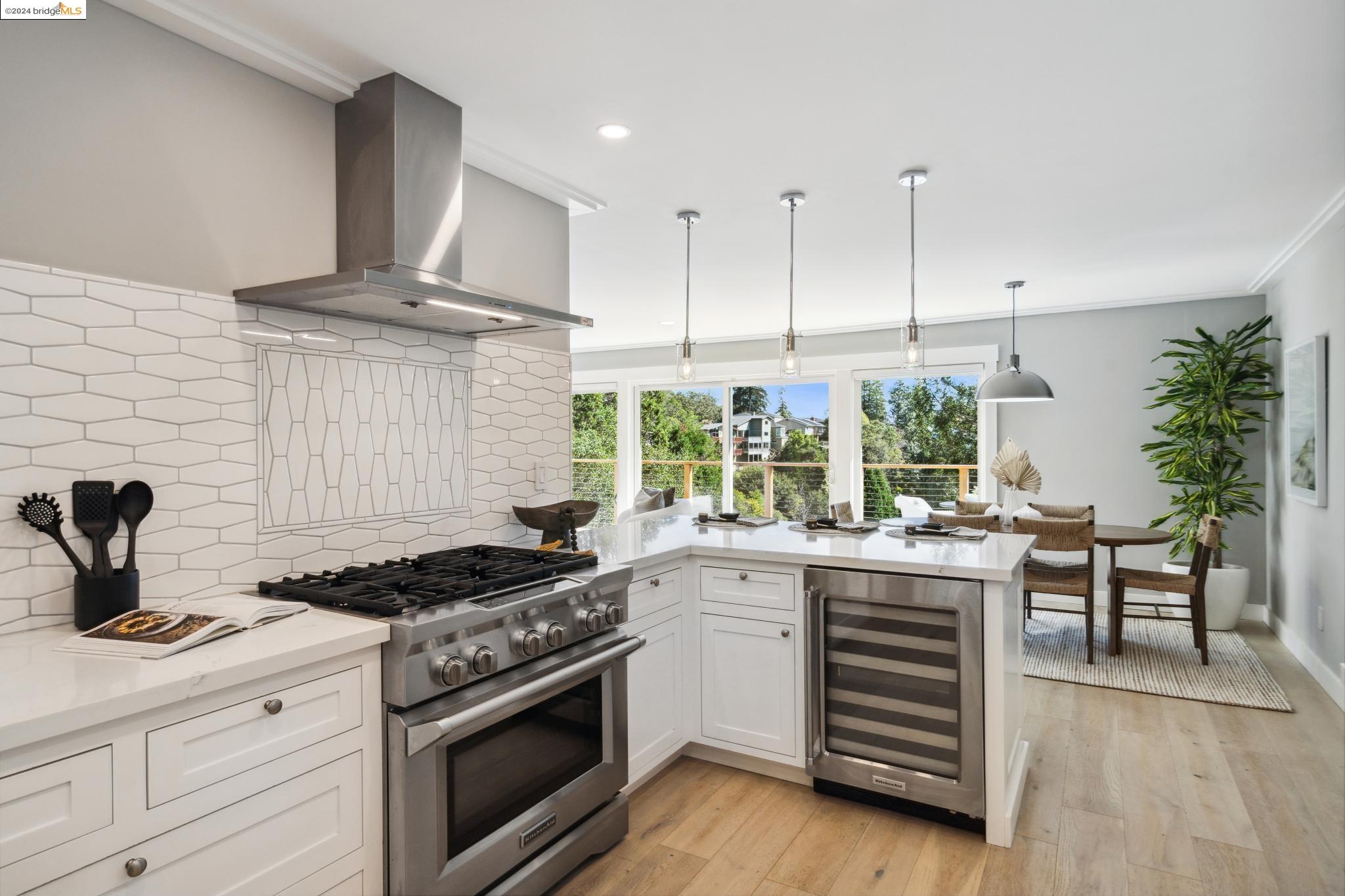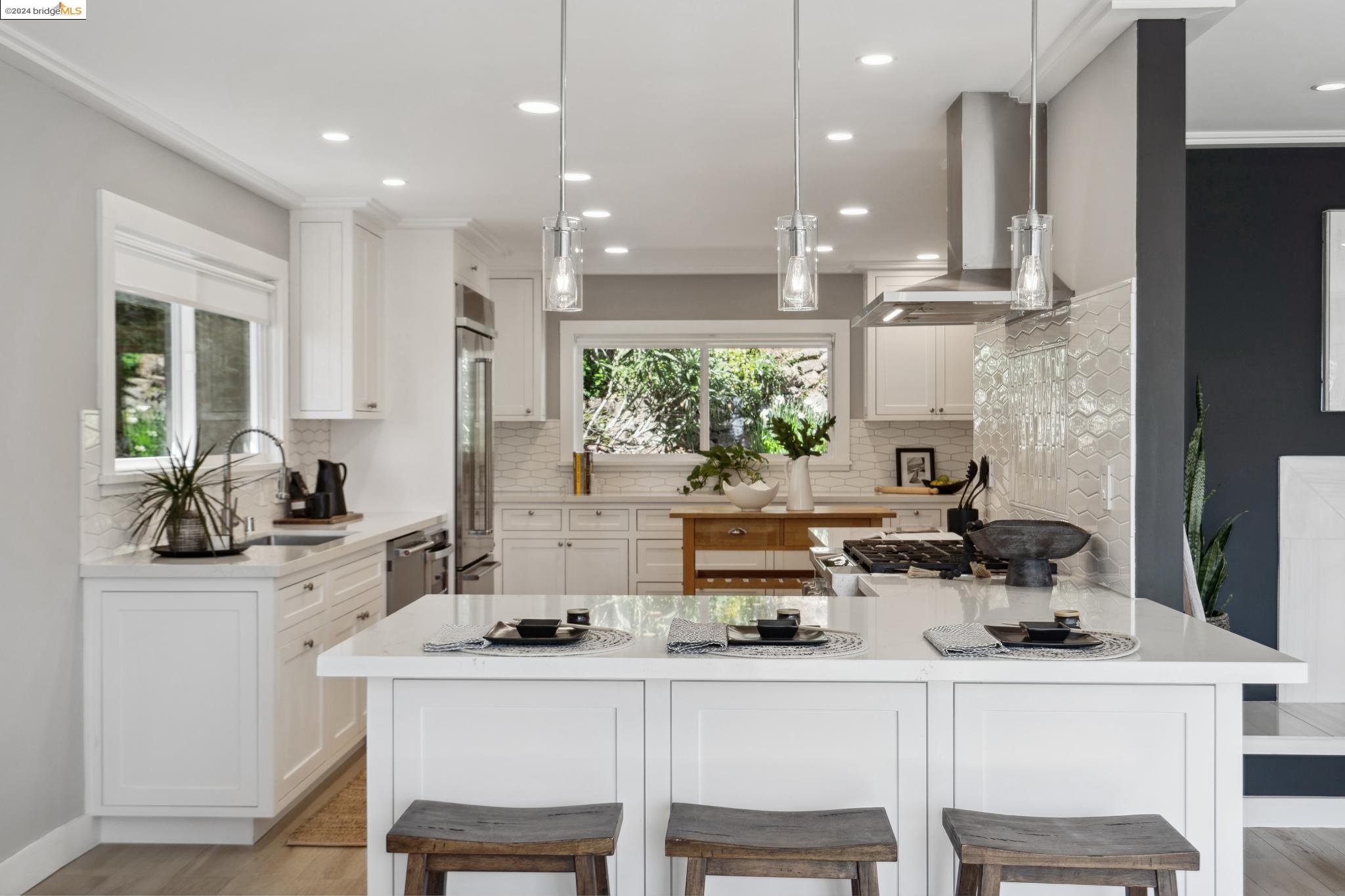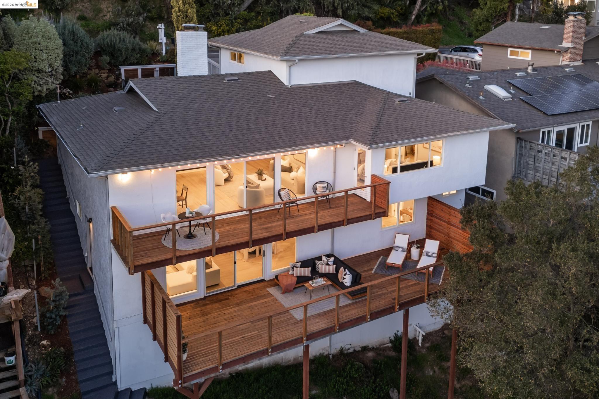 Sleek and Sexy with phenomenal South Bay views. Get ready to be wowed by this beautifully renovated home with a stunning kitchen, 4 Beds, 4 Baths and over 750 sq ft of view decks! The main floor has an open flow for entertaining friends and family. The living room with modern fireplace and a wall of glass opens wide to the deck and views beyond. The eye-popping kitchen is as efficient as it is beautiful with custom cabinetry, geometric tile backsplash and Quartzite countertops housing a suite of high-end Stainless Steel appliances. The main bedroom retreat rivals your favorite boutique hotel. Serene and modern, the ensuite bath has a sophisticated free-standing tub, generous shower and double vanity. Two additional bedrooms with Jack & Jill bath and full guest bath complete this level. Downstairs you'll find a family room with wet bar and expansive deck. Additional bedroom suite and laundry+storage room on this floor all can be accessed via external door for convenience and privacy. Take the secret steps nearby to the village for shopping, coffee and great restaurants, not to mention the weekend Farmer's Market!