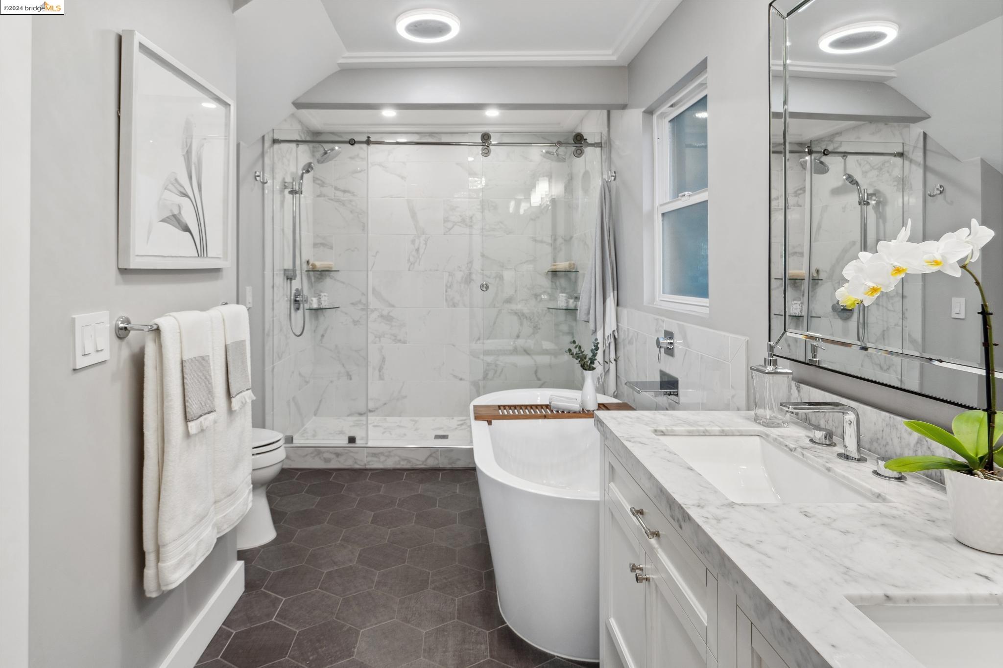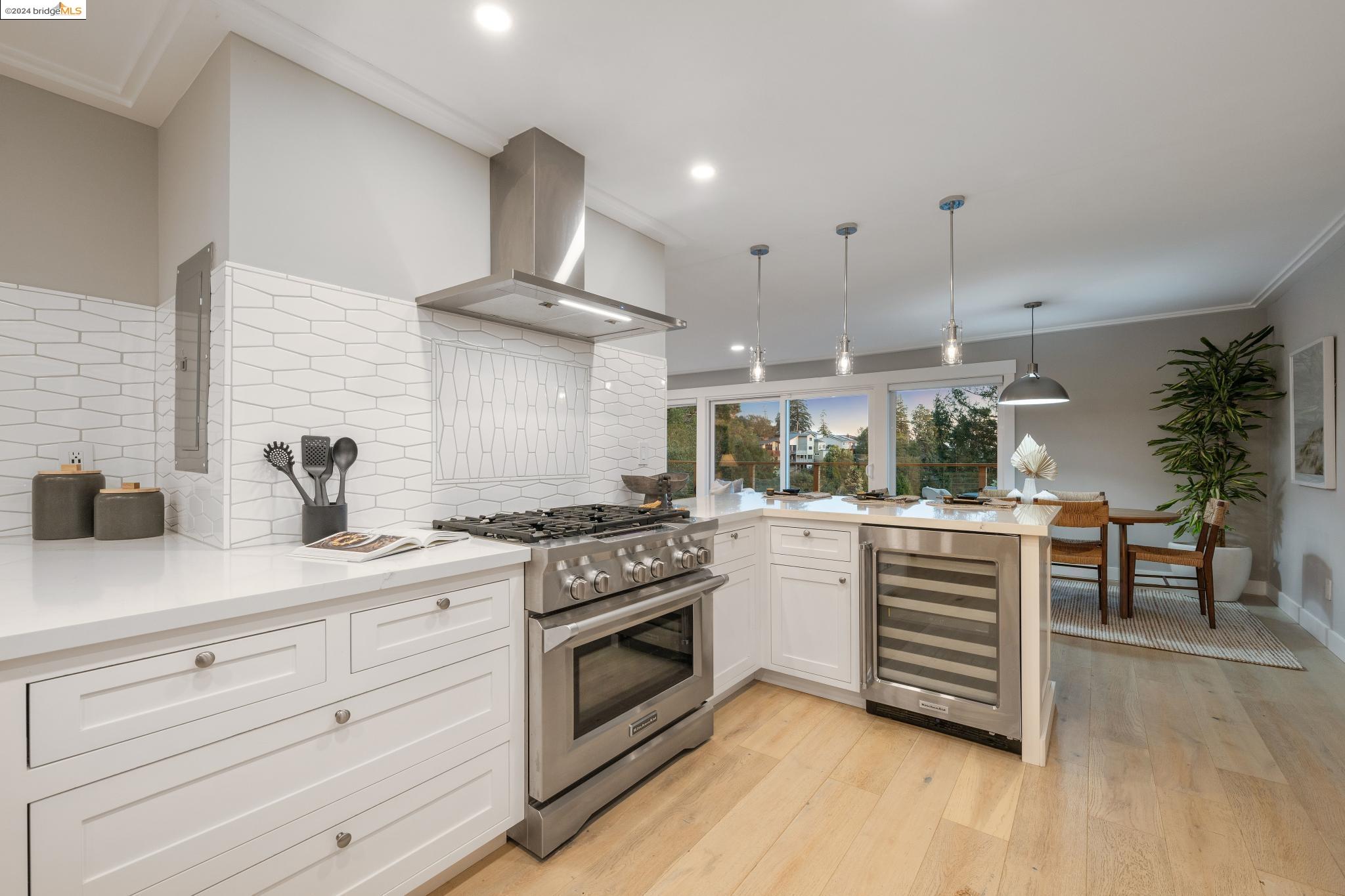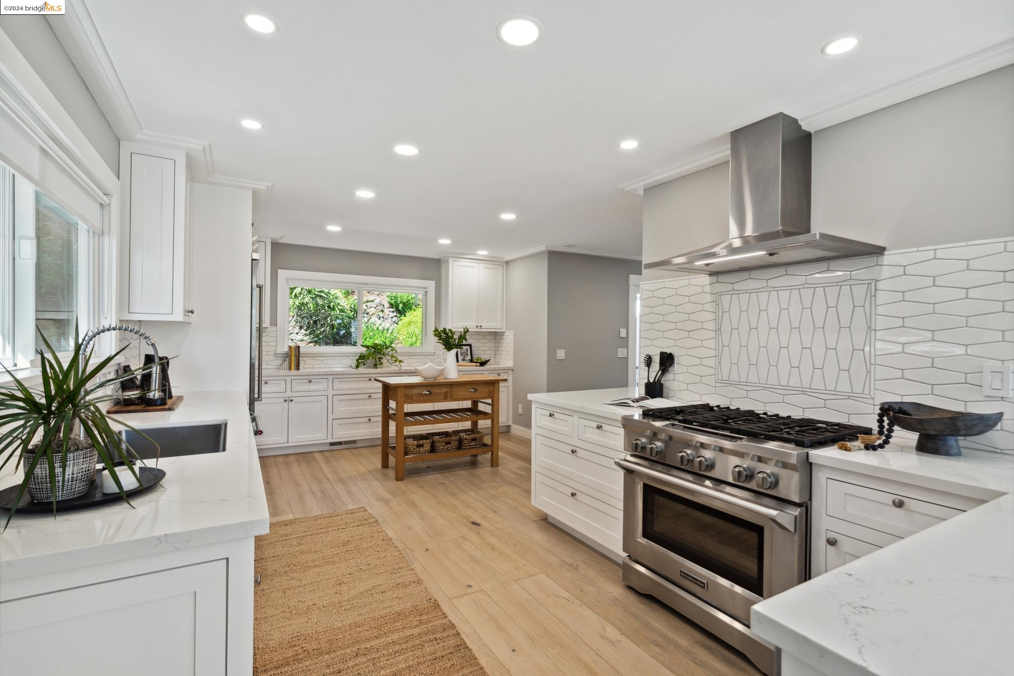 Sleek and Sexy with phenomenal South Bay views. Get ready to be wowed by this beautifully renovated home with a stunning kitchen, 4 Beds, 4 Baths and over 750 sq ft of view decks! The main floor has an open flow for entertaining friends and family. The living room with modern fireplace and a wall of glass opens wide to the deck and views beyond. The eye-popping kitchen is as efficient as it is beautiful with custom cabinetry, geometric tile backsplash and Quartzite countertops housing a suite of high-end Stainless Steel appliances. The main bedroom retreat rivals your favorite boutique hotel. Serene and modern, the ensuite bath has a sophisticated free-standing tub, generous shower and double vanity. Two additional bedrooms with Jack & Jill bath and full guest bath complete this level. Downstairs you'll find a family room with wet bar and expansive deck. Additional bedroom suite and laundry+storage room on this floor all can be accessed via external door for convenience and privacy. Take the secret steps nearby to the village for shopping, coffee and great restaurants, not to mention the weekend Farmer's Market!
