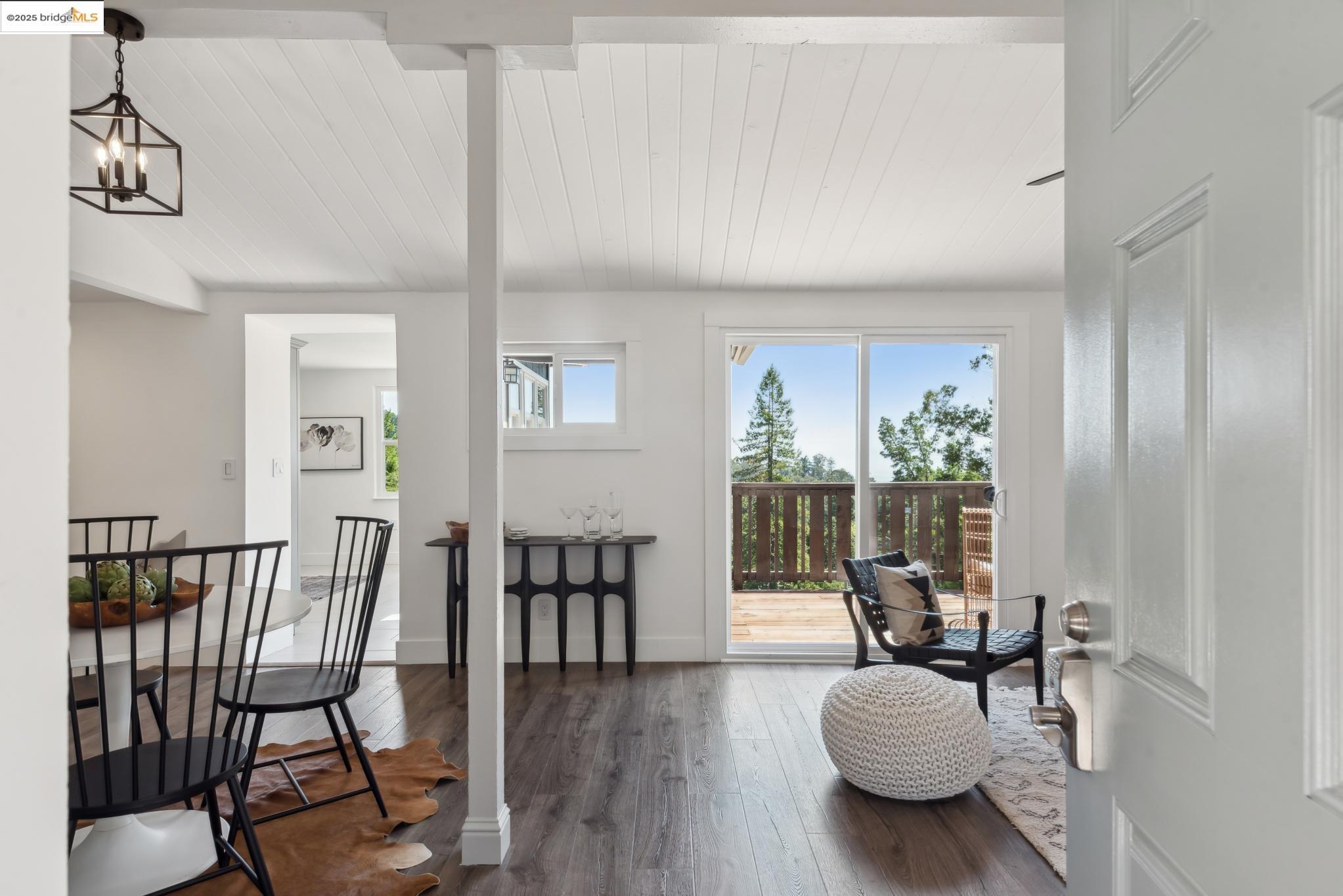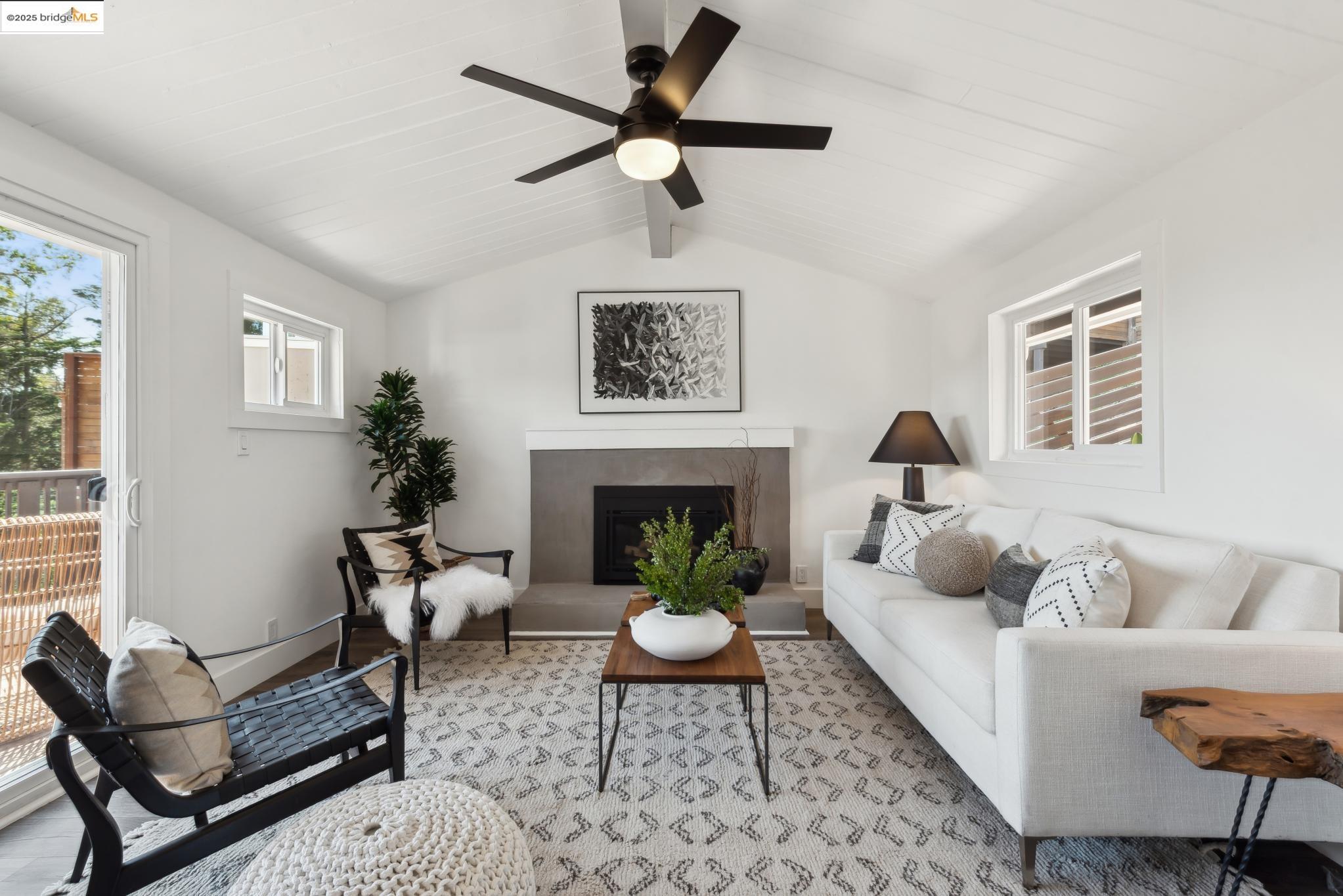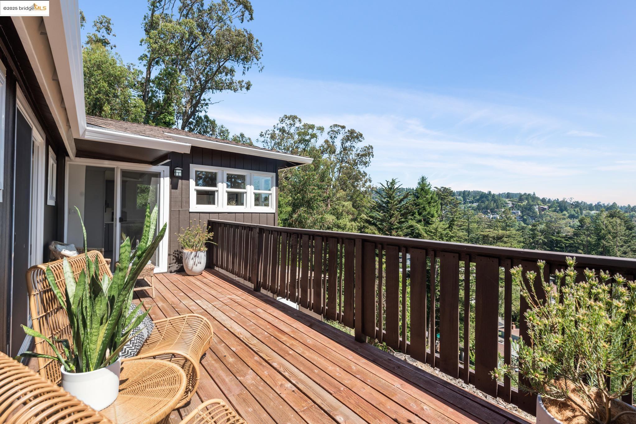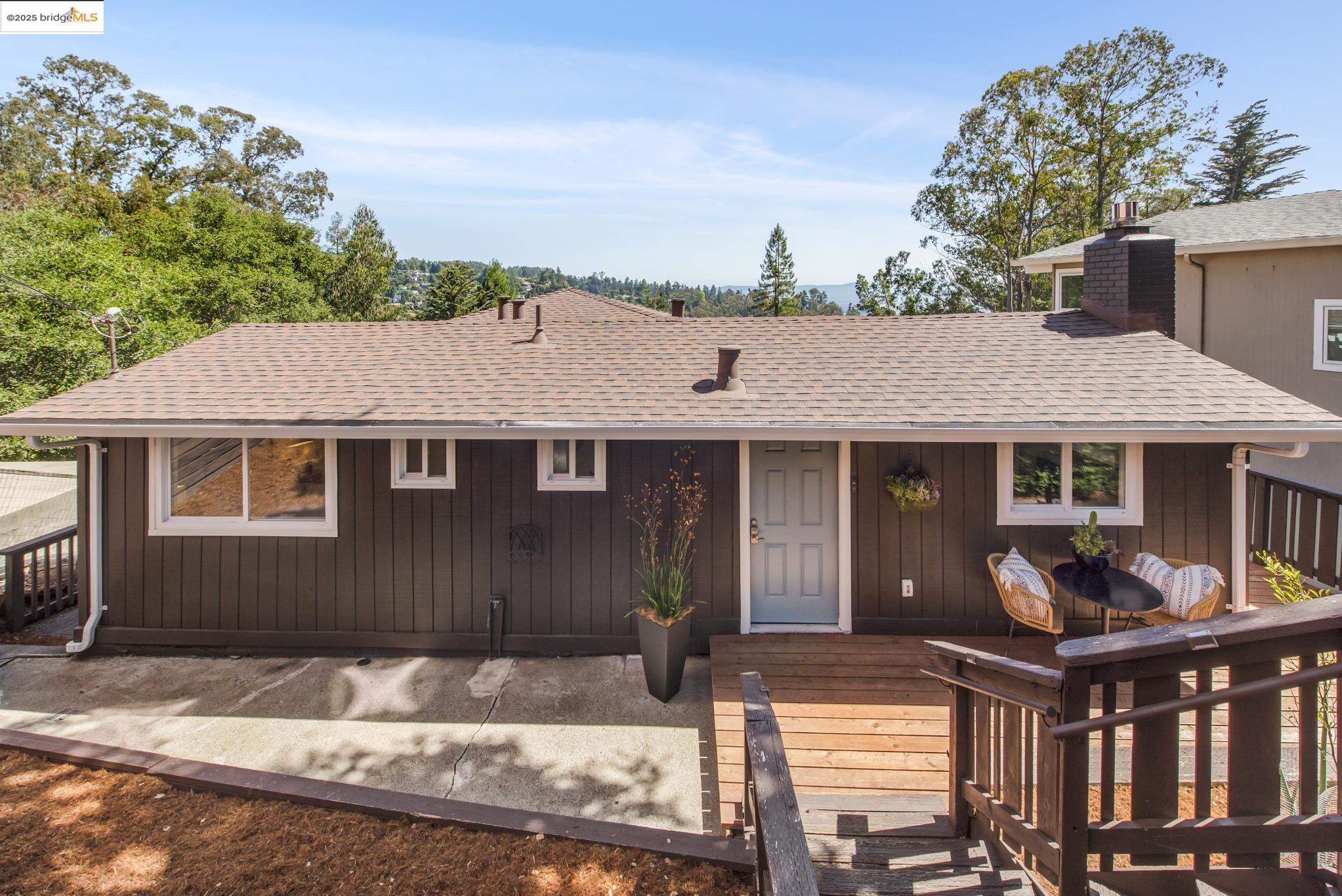 Your modern hideaway awaits in the heart of Montclair's coveted Shepherd Canyon neighborhood. This stylish 2+ bedroom, 2 bath home offers the perfect blend of modern comfort, natural beauty and all around California vibes. Step inside to a bright, open concept layout where the living, dining, and kitchen spaces flow seamlessly together. The inviting living room, anchored by a cozy fireplace, creates a warm and welcoming atmosphere. The remodeled kitchen shines with contemporary finishes, while both bathrooms have been updated with style and function in mind. Downstairs, a bonus room offers flexible living- great for a home office, creative studio, or guest suite. Outside, the wrap-around deck is your front-row seat to stunning canyon views, with a peek of the Bay glittering in the distance. Whether it's morning coffee, sunset drinks, or starlit dinners, it all happens here. Tucked away in the peaceful Montclair hills, yet just minutes from shops, dining, parks, and transit, this home is your serene escape with city convenience.