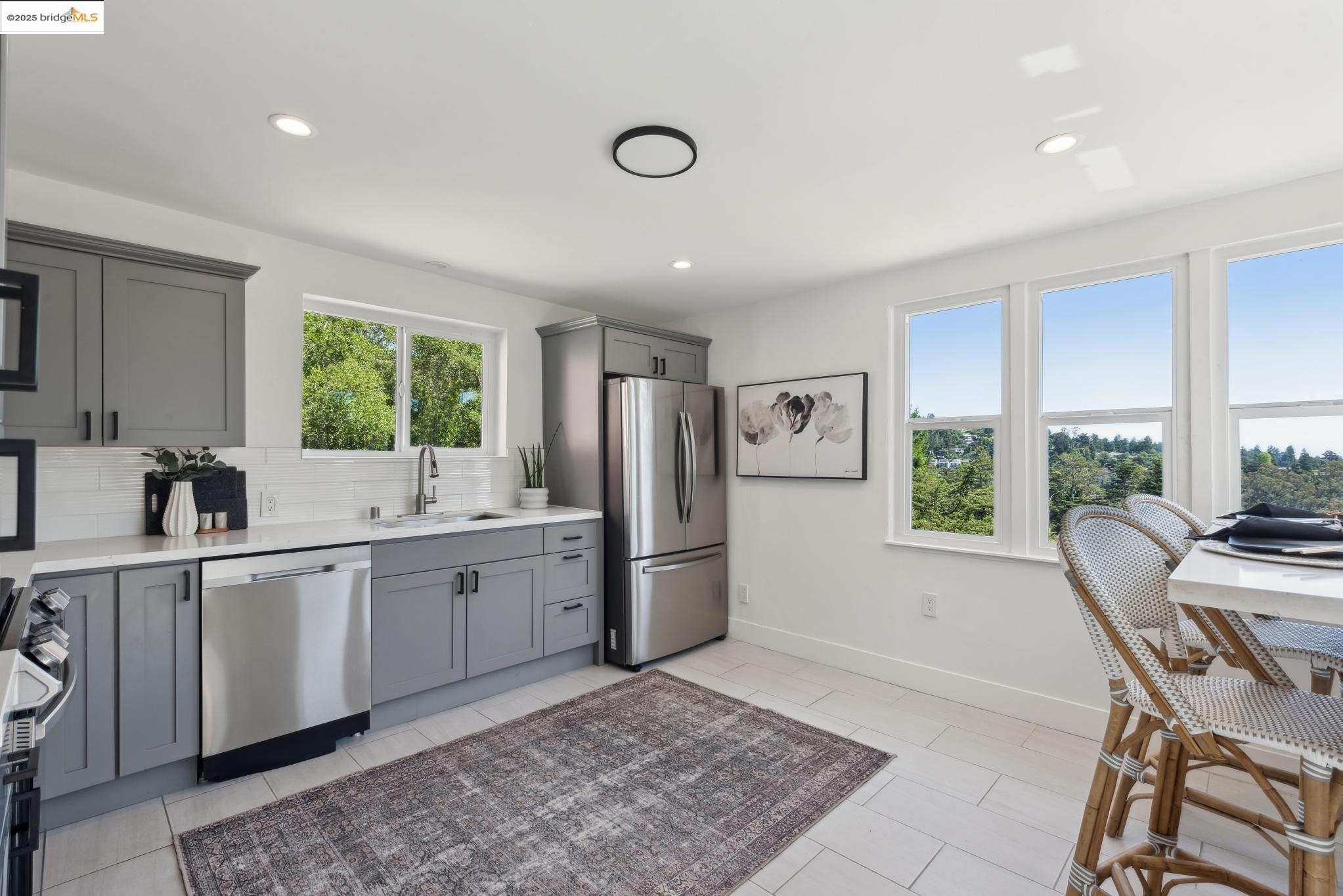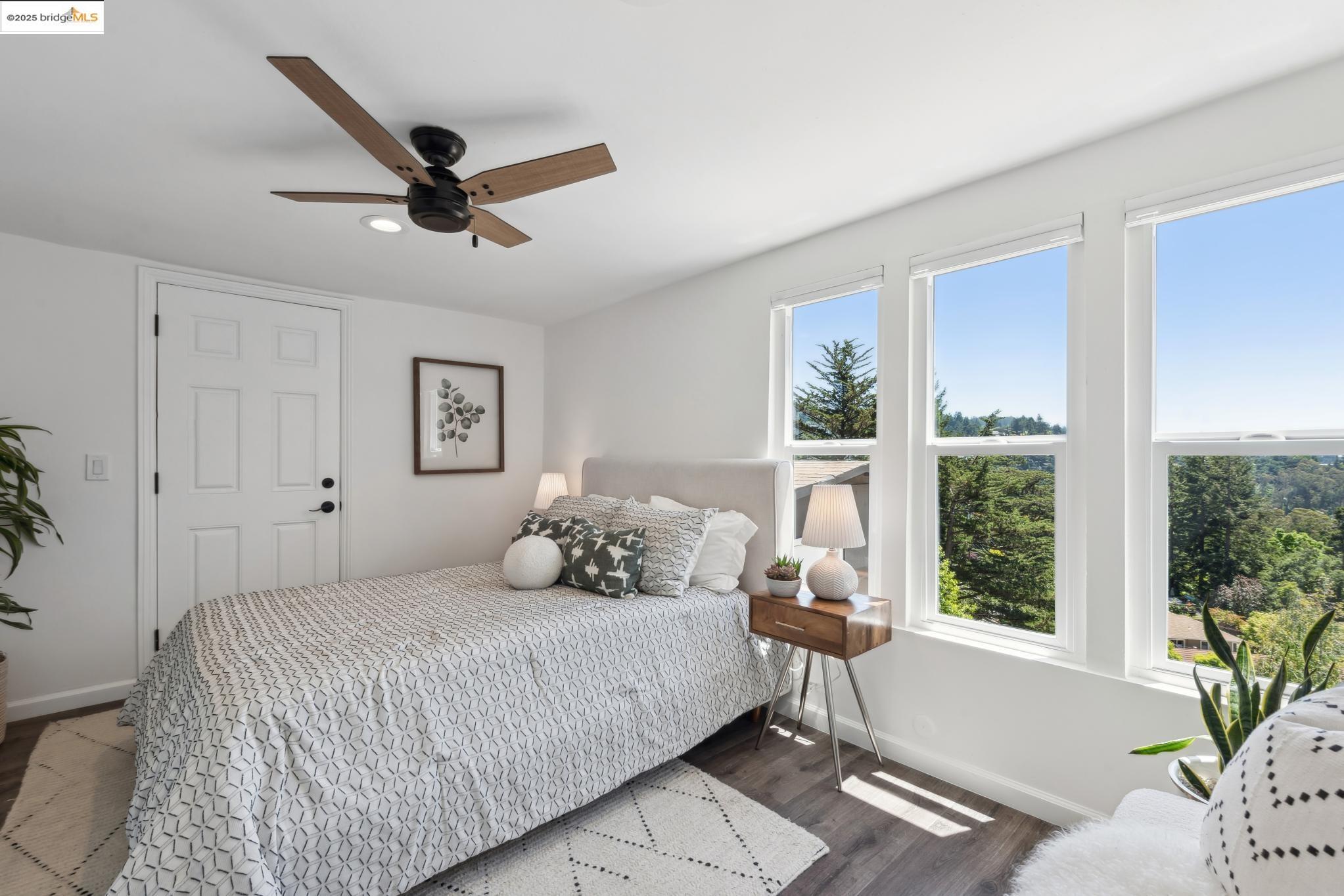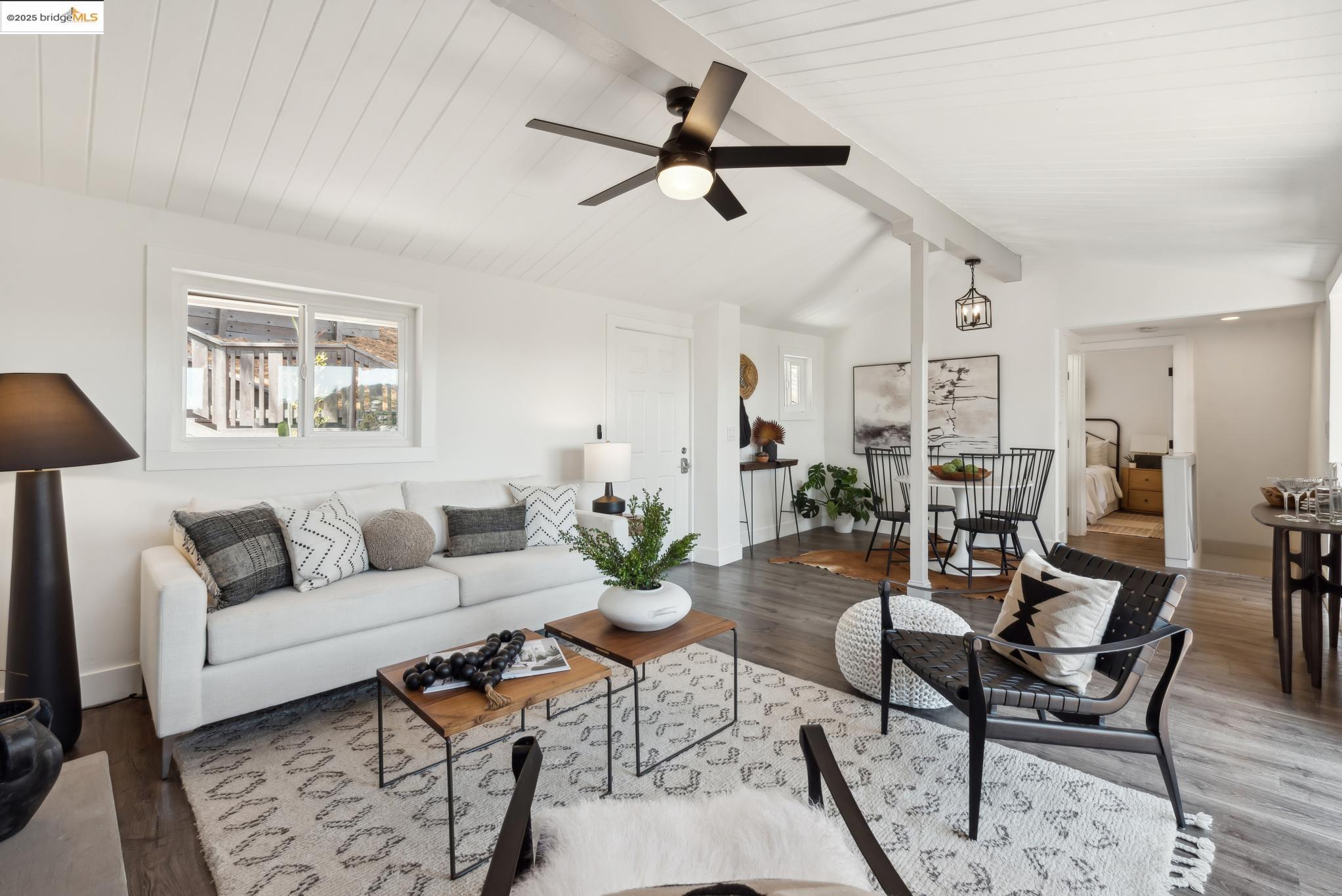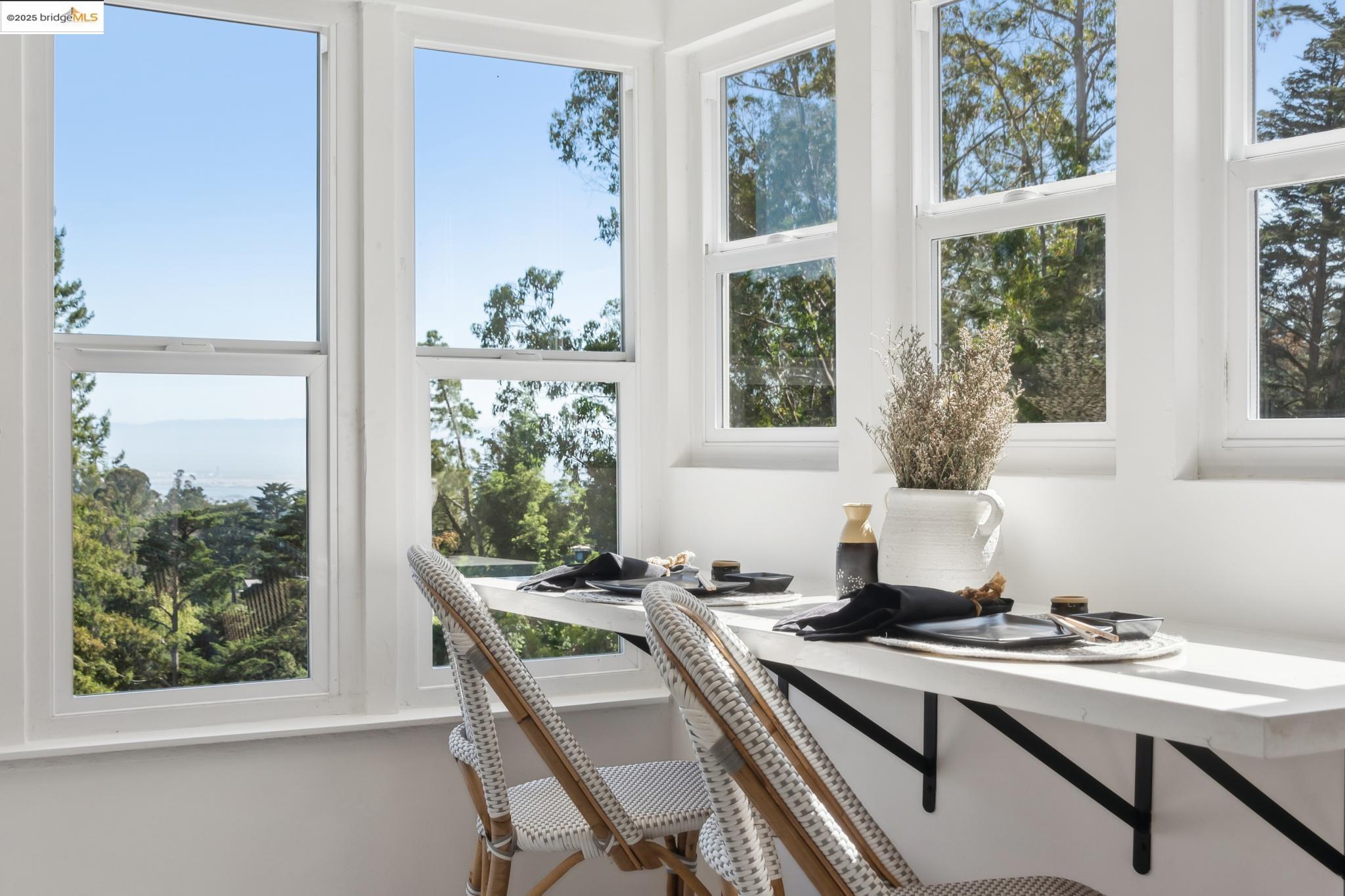 Your modern hideaway awaits in the heart of Montclair's coveted Shepherd Canyon neighborhood. This stylish 2+ bedroom, 2 bath home offers the perfect blend of modern comfort, natural beauty and all around California vibes. Step inside to a bright, open concept layout where the living, dining, and kitchen spaces flow seamlessly together. The inviting living room, anchored by a cozy fireplace, creates a warm and welcoming atmosphere. The remodeled kitchen shines with contemporary finishes, while both bathrooms have been updated with style and function in mind. Downstairs, a bonus room offers flexible living- great for a home office, creative studio, or guest suite. Outside, the wrap-around deck is your front-row seat to stunning canyon views, with a peek of the Bay glittering in the distance. Whether it's morning coffee, sunset drinks, or starlit dinners, it all happens here. Tucked away in the peaceful Montclair hills, yet just minutes from shops, dining, parks, and transit, this home is your serene escape with city convenience.
