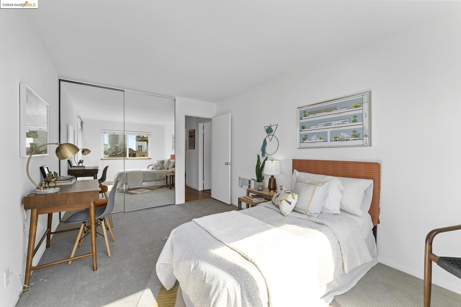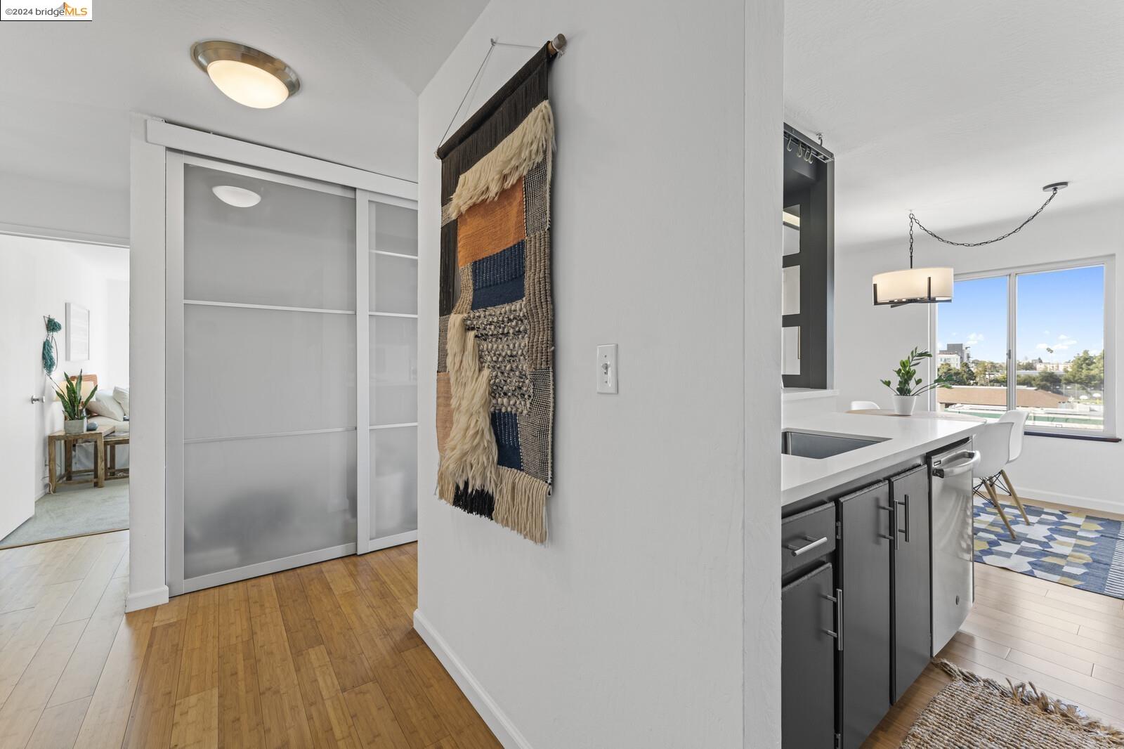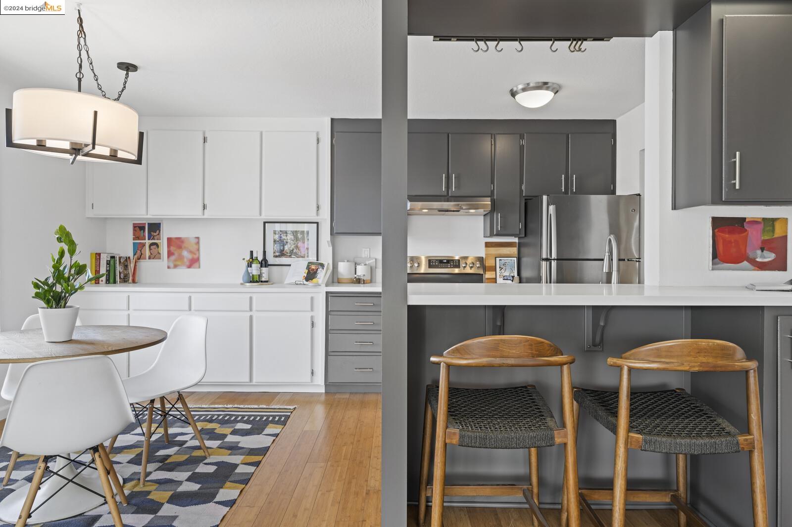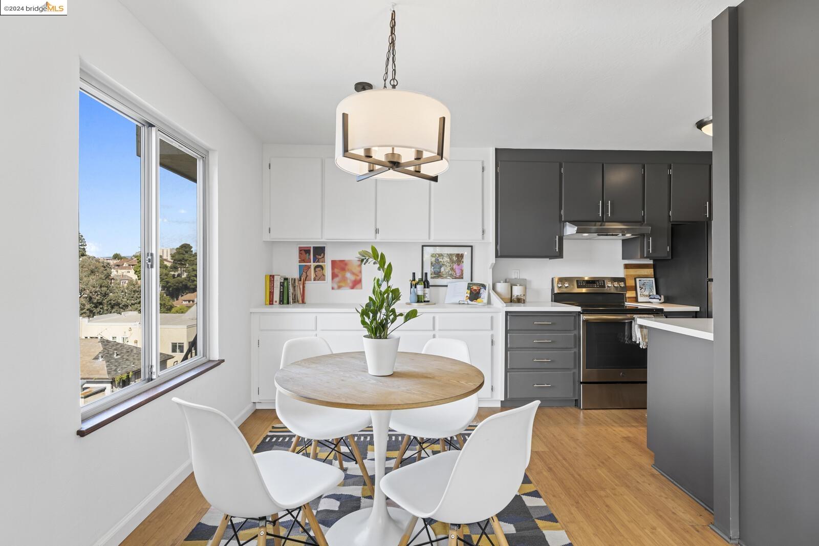 Light-filled and spacious, this corner unit Adams Point condo has been tastefully updated and awaits its new owners. Spend your evenings out on the expansive private balcony facing the sunset savoring the fantastic views of the city. The two bedroom two bathroom 1094 sqft unit is situated on the first floor at the back of the building with just one shared wall. With a bounty of natural light, updated kitchen and baths, and a seamless living/dining area that opens to the outdoor space, this home provides the perfect blend of comfort and style. The unit boasts new quartz countertops, new bathroom flooring and counters, new bedroom carpet, and a fresh coat of paint. The spacious primary bedroom is accompanied by an ensuite bathroom, while the second bedroom opens out to the balcony. Each floor has shared laundry and every unit has one parking spot in the enclosed garage. Enjoy all the benefits of living in the heart of Oakland, just minutes away from Lake Merritt, Whole Foods, BART and the abundance of local restaurants. Come take a look today!