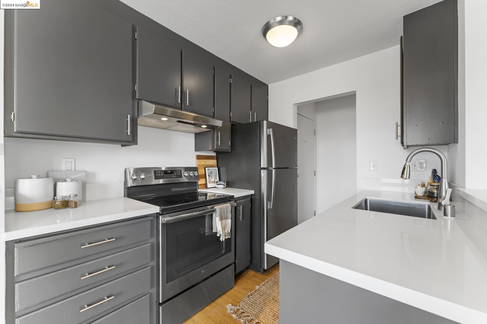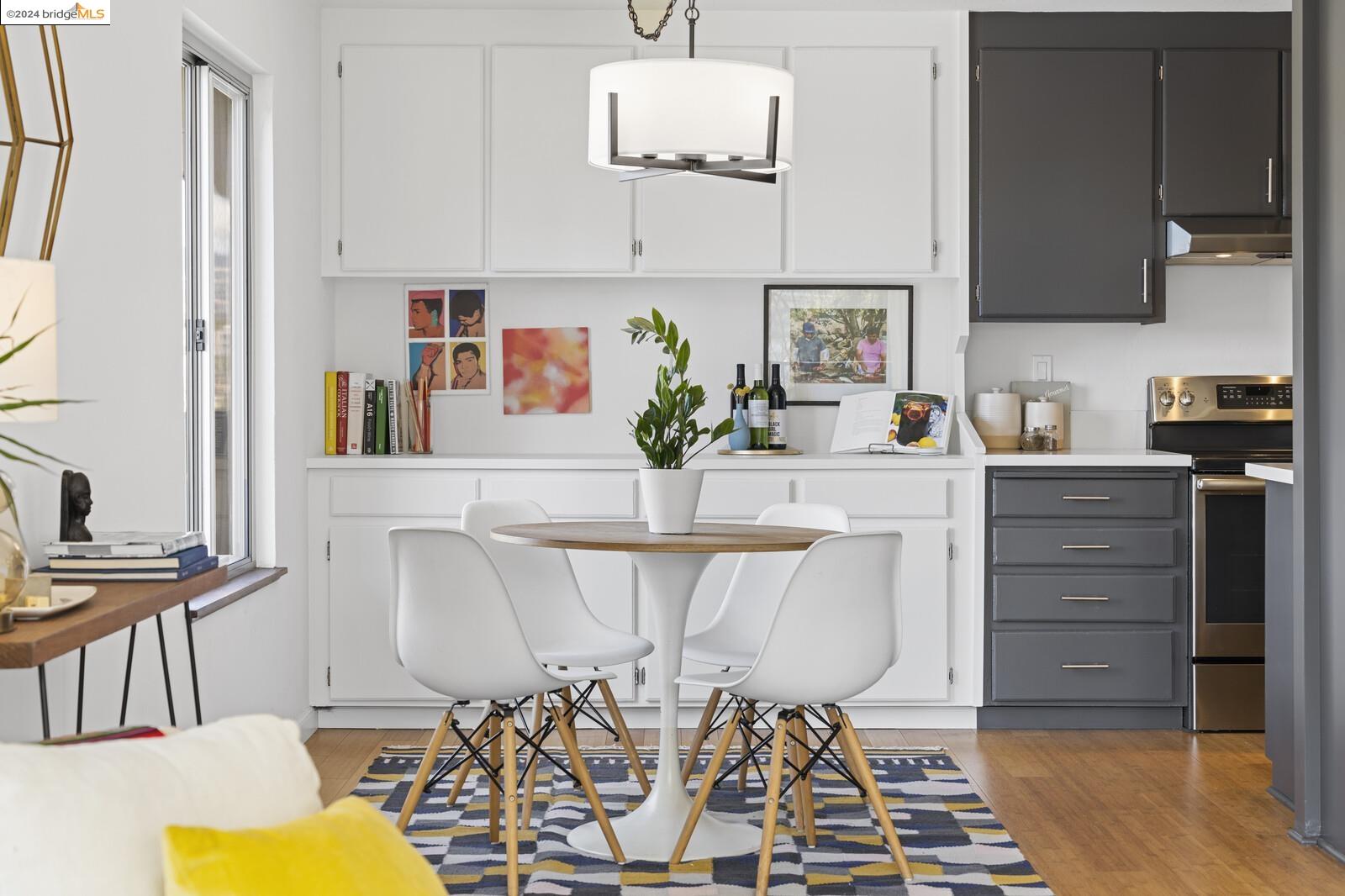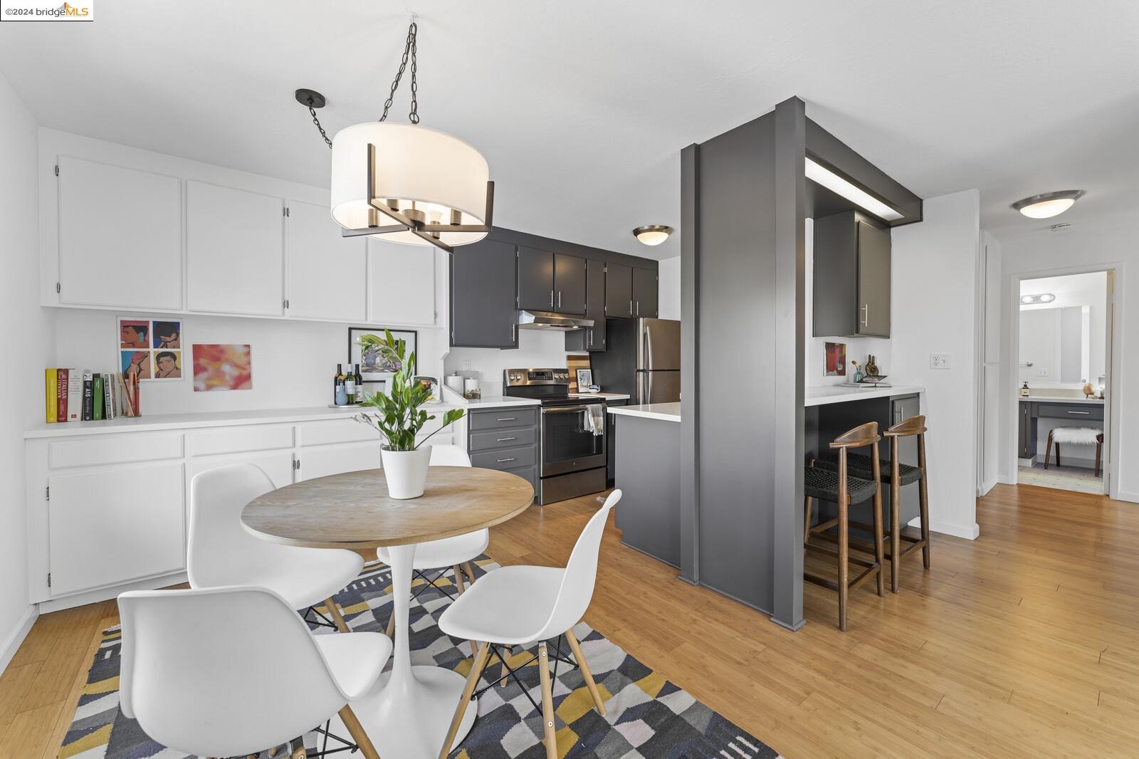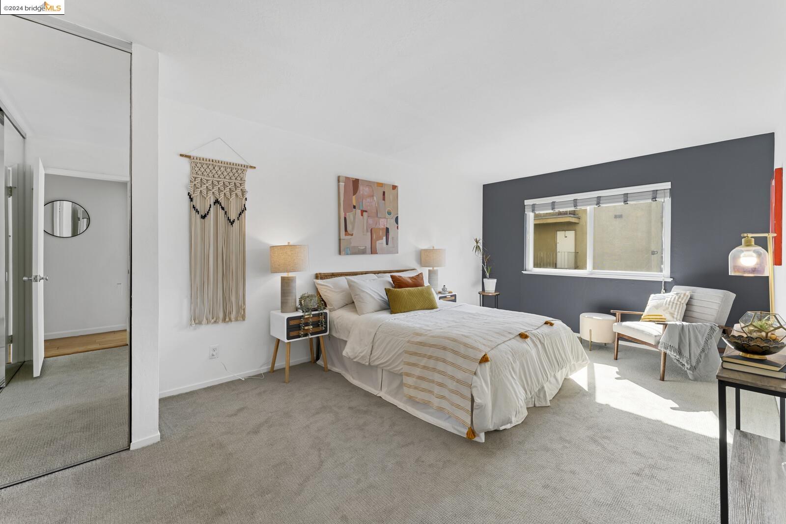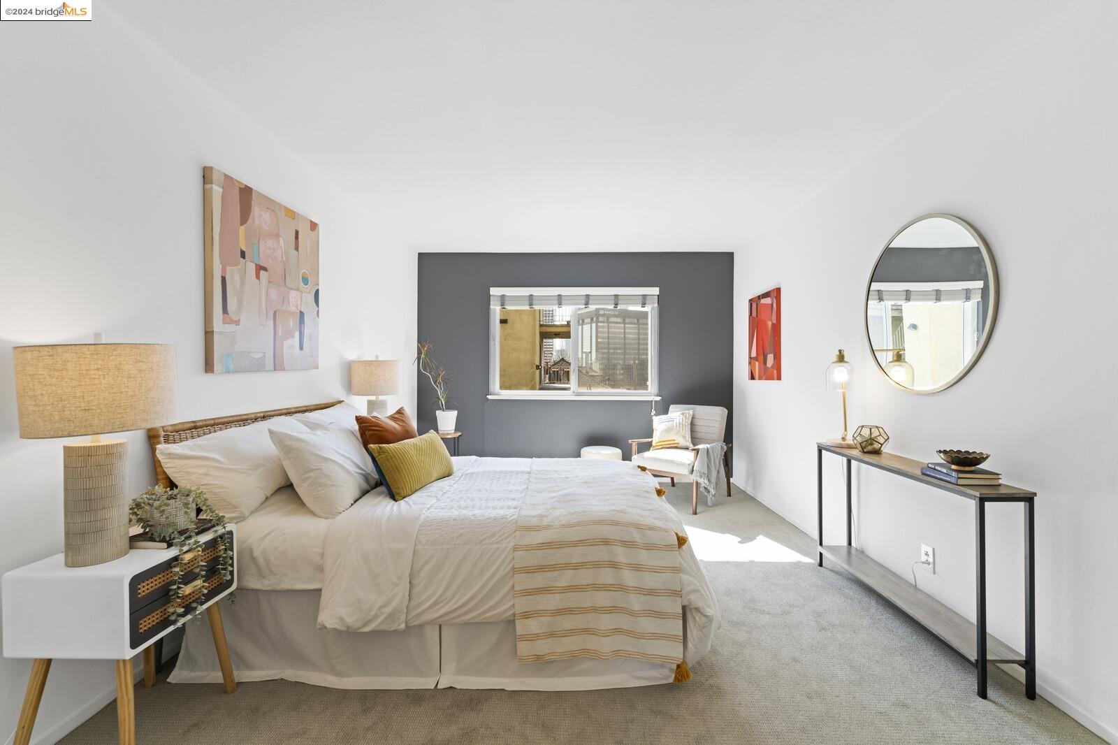 Light-filled and spacious, this corner unit Adams Point condo has been tastefully updated and awaits its new owners. Spend your evenings out on the expansive private balcony facing the sunset savoring the fantastic views of the city. The two bedroom two bathroom 1094 sqft unit is situated on the first floor at the back of the building with just one shared wall. With a bounty of natural light, updated kitchen and baths, and a seamless living/dining area that opens to the outdoor space, this home provides the perfect blend of comfort and style. The unit boasts new quartz countertops, new bathroom flooring and counters, new bedroom carpet, and a fresh coat of paint. The spacious primary bedroom is accompanied by an ensuite bathroom, while the second bedroom opens out to the balcony. Each floor has shared laundry and every unit has one parking spot in the enclosed garage. Enjoy all the benefits of living in the heart of Oakland, just minutes away from Lake Merritt, Whole Foods, BART and the abundance of local restaurants. Come take a look today!
