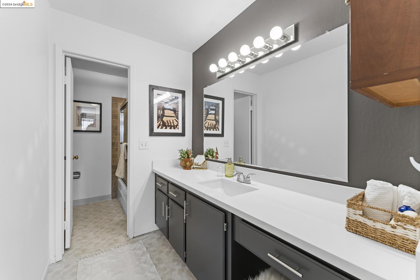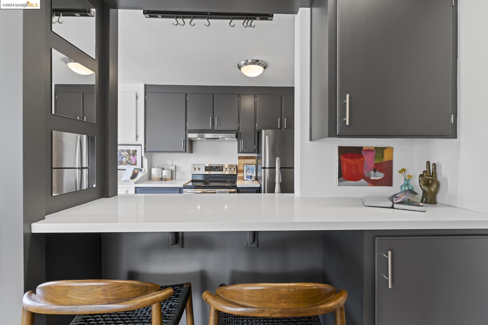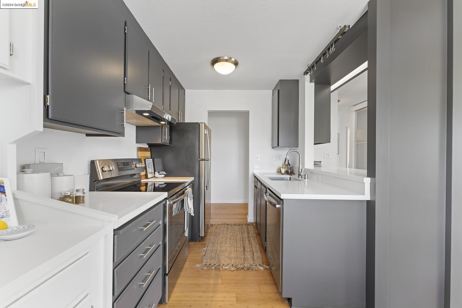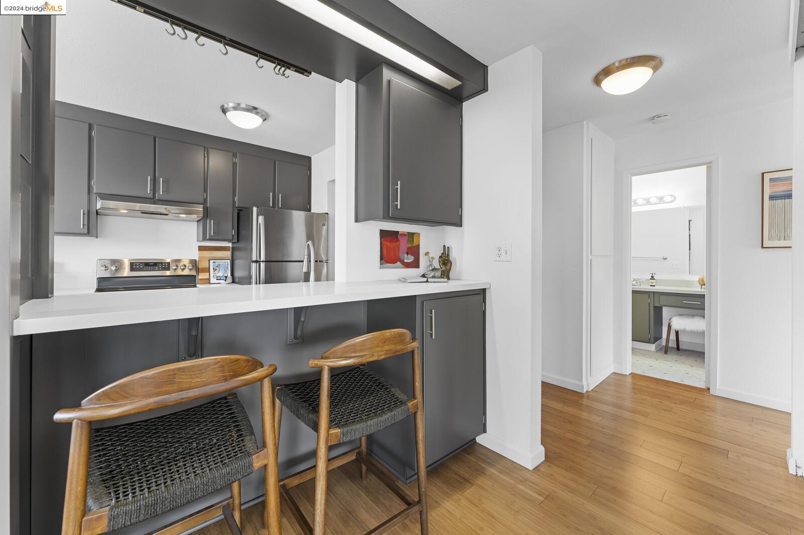 Light-filled and spacious, this corner unit Adams Point condo has been tastefully updated and awaits its new owners. Spend your evenings out on the expansive private balcony facing the sunset savoring the fantastic views of the city. The two bedroom two bathroom 1094 sqft unit is situated on the first floor at the back of the building with just one shared wall. With a bounty of natural light, updated kitchen and baths, and a seamless living/dining area that opens to the outdoor space, this home provides the perfect blend of comfort and style. The unit boasts new quartz countertops, new bathroom flooring and counters, new bedroom carpet, and a fresh coat of paint. The spacious primary bedroom is accompanied by an ensuite bathroom, while the second bedroom opens out to the balcony. Each floor has shared laundry and every unit has one parking spot in the enclosed garage. Enjoy all the benefits of living in the heart of Oakland, just minutes away from Lake Merritt, Whole Foods, BART and the abundance of local restaurants. Come take a look today!