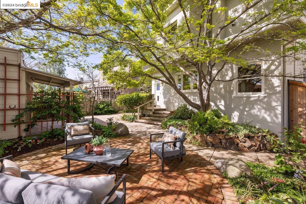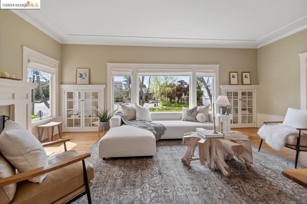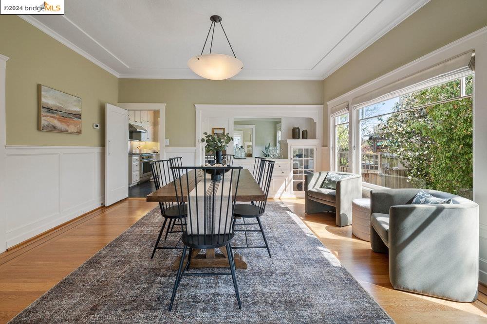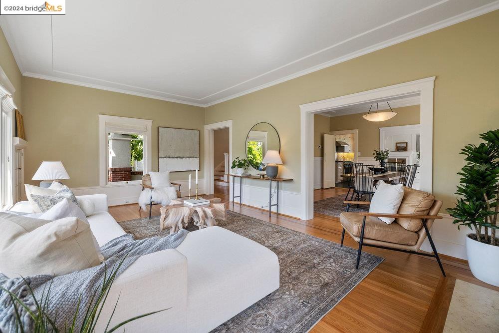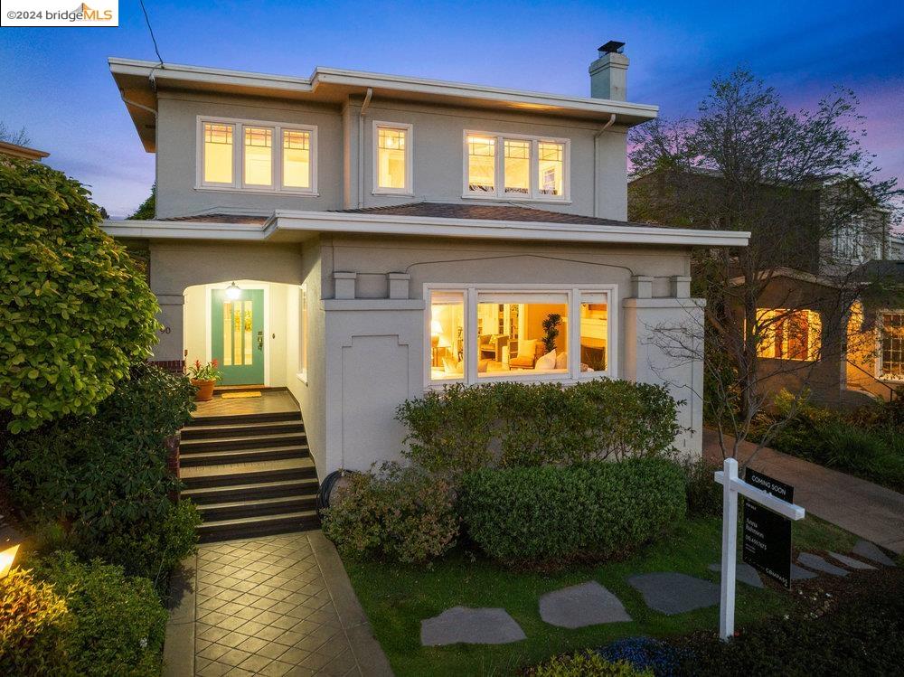 90 Fairview Avenue is a welcoming and graceful home with broad front stairs, period details, and thoughtfully-crafted gardens. Warm and well-appointed, the interior features light-filled rooms, a classically renovated kitchen, and leafy vistas through elegant wood windows. The beautiful living room is anchored by a wall of windows flanked by built-in bookshelves and a cozy fireplace. This space blends seamlessly into the spacious formal dining room adorned with wainscoting and a built-in buffet. Three nicely sized bedrooms upstairs plus an office on the main floor means plenty of room for both work and relaxation. The colorful garden and detached garage are just off the kitchen for an easy flow of life's activities. Once you leave the home, you find yourself within an easy stroll to the shops and restaurants on Grand and Piedmont Avenue, Dracena Park, and highly-rated public schools. Don't miss the opportunity to visit this quietly elegant home on a tree-lined street in charming Piedmont.
