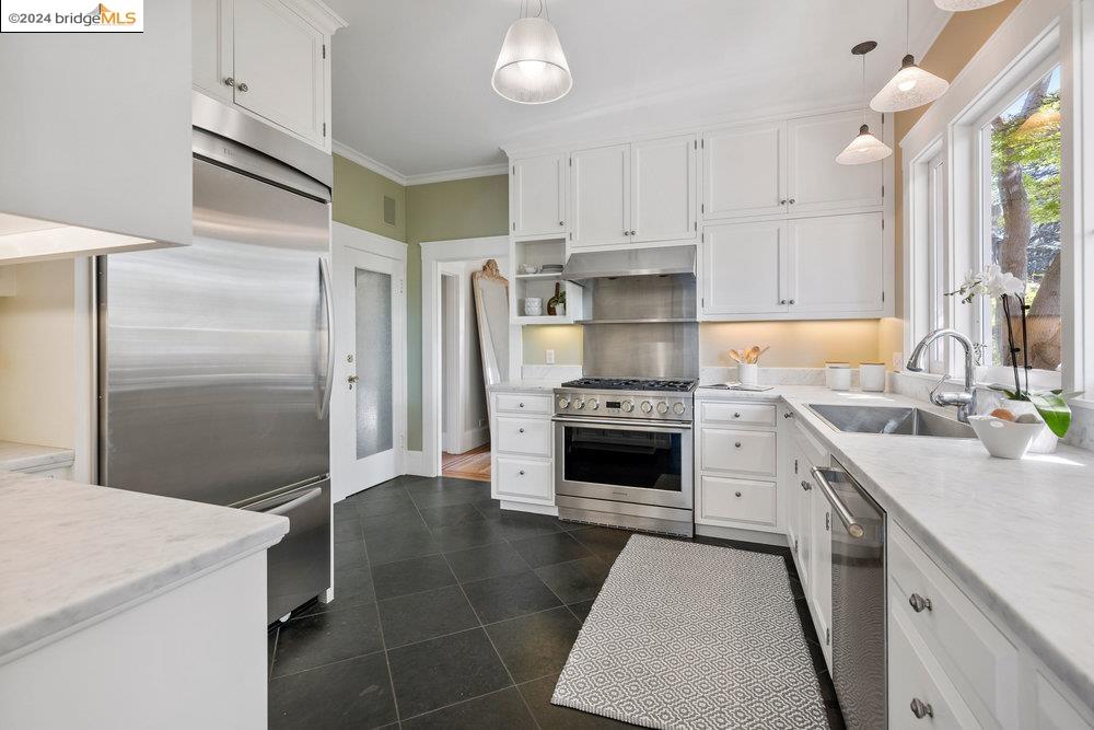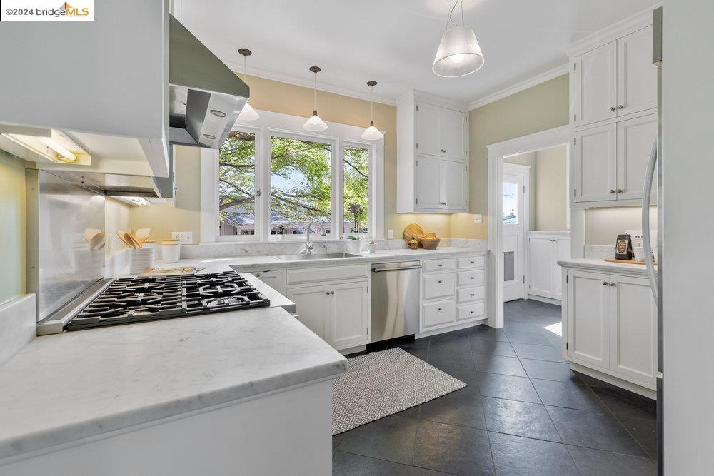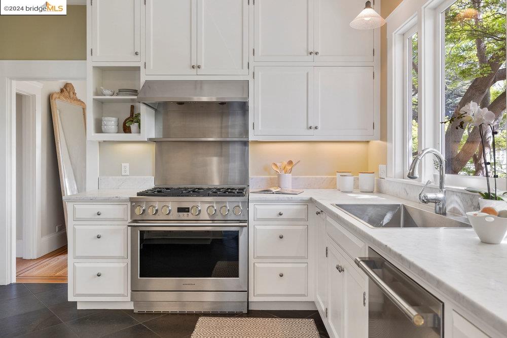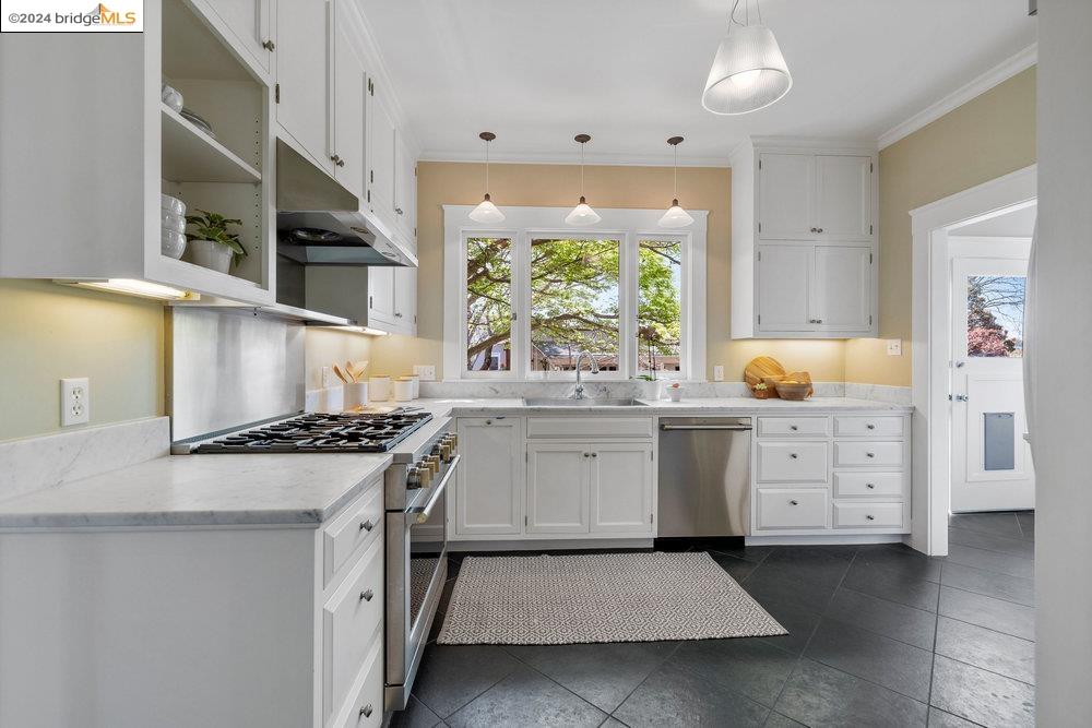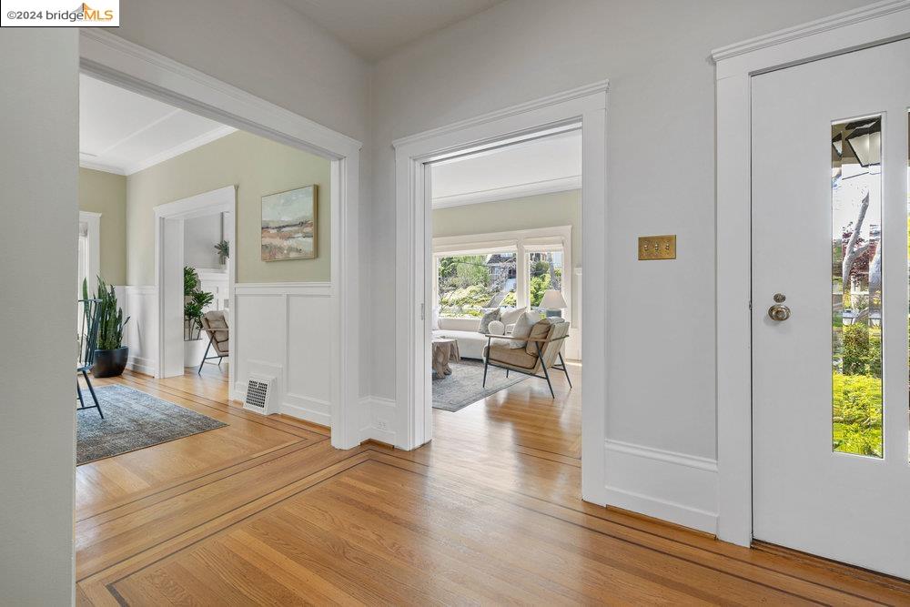 90 Fairview Avenue is a welcoming and graceful home with broad front stairs, period details, and thoughtfully-crafted gardens. Warm and well-appointed, the interior features light-filled rooms, a classically renovated kitchen, and leafy vistas through elegant wood windows. The beautiful living room is anchored by a wall of windows flanked by built-in bookshelves and a cozy fireplace. This space blends seamlessly into the spacious formal dining room adorned with wainscoting and a built-in buffet. Three nicely sized bedrooms upstairs plus an office on the main floor means plenty of room for both work and relaxation. The colorful garden and detached garage are just off the kitchen for an easy flow of life's activities. Once you leave the home, you find yourself within an easy stroll to the shops and restaurants on Grand and Piedmont Avenue, Dracena Park, and highly-rated public schools. Don't miss the opportunity to visit this quietly elegant home on a tree-lined street in charming Piedmont.