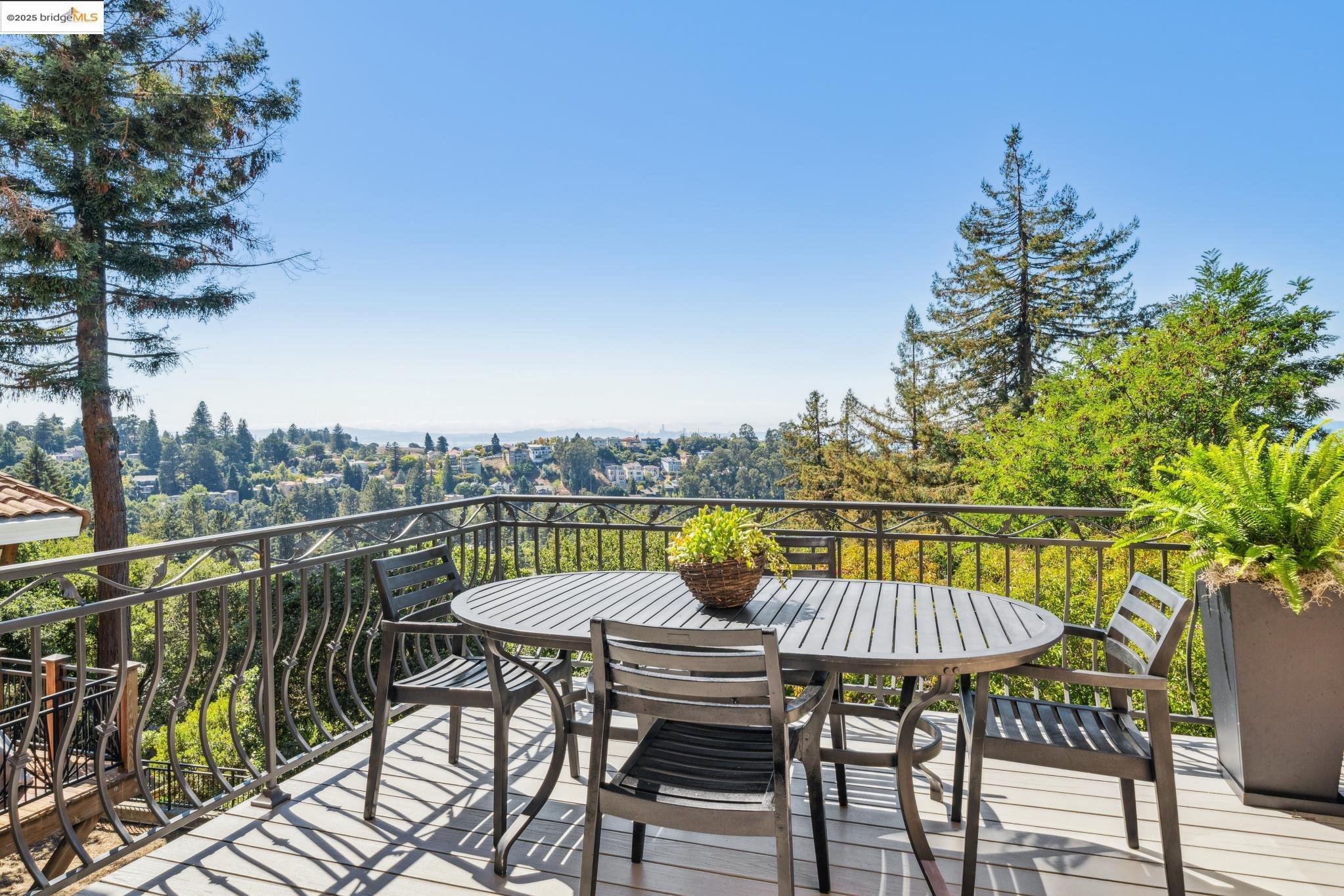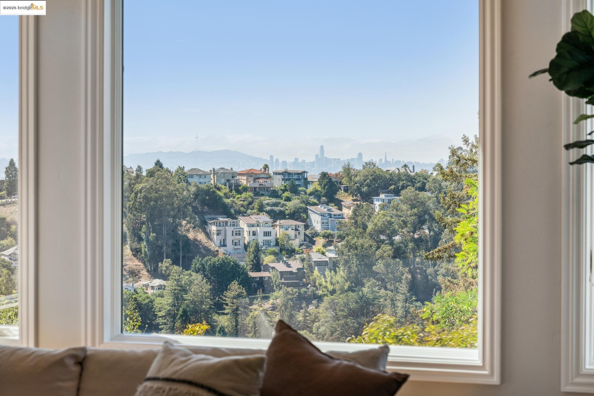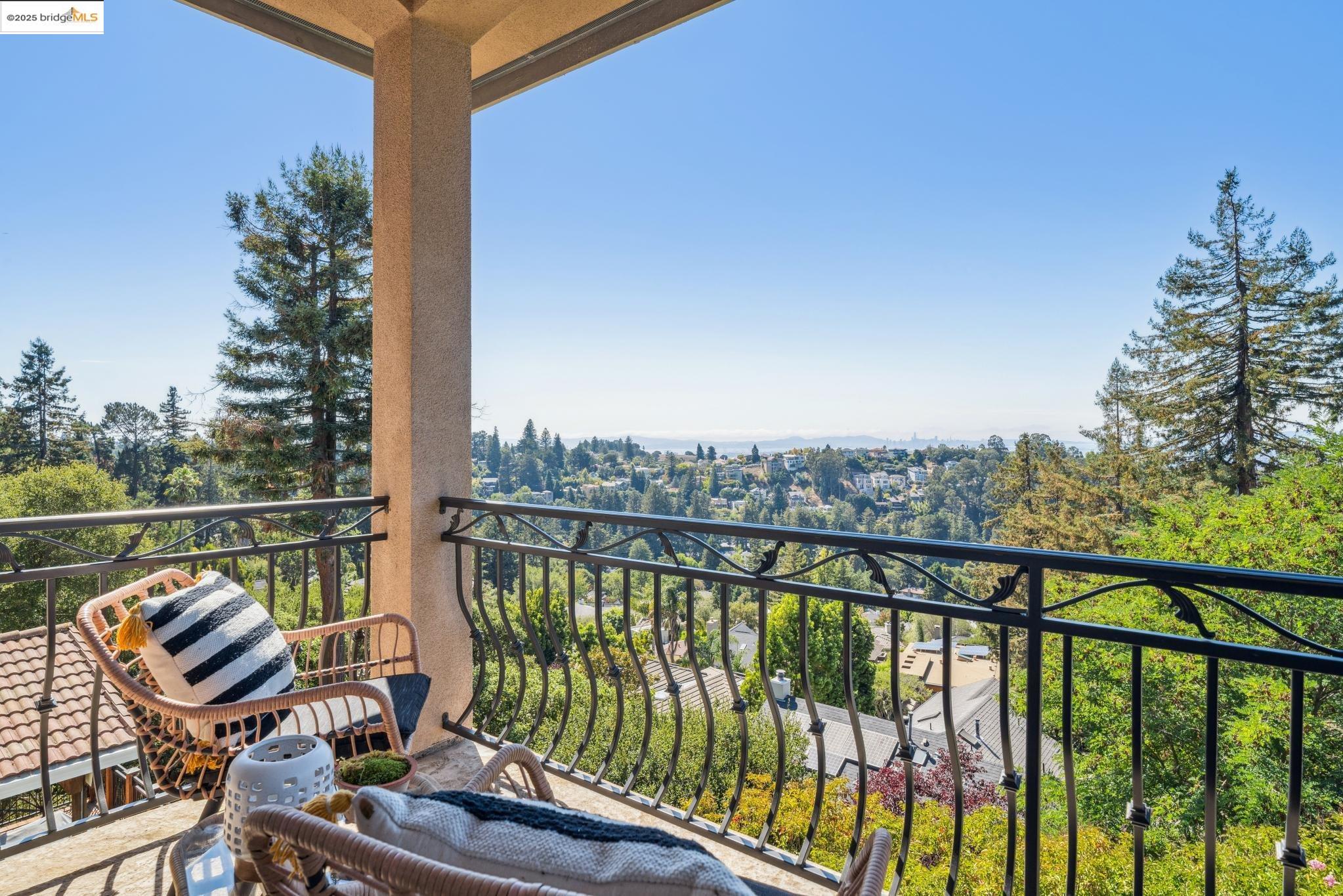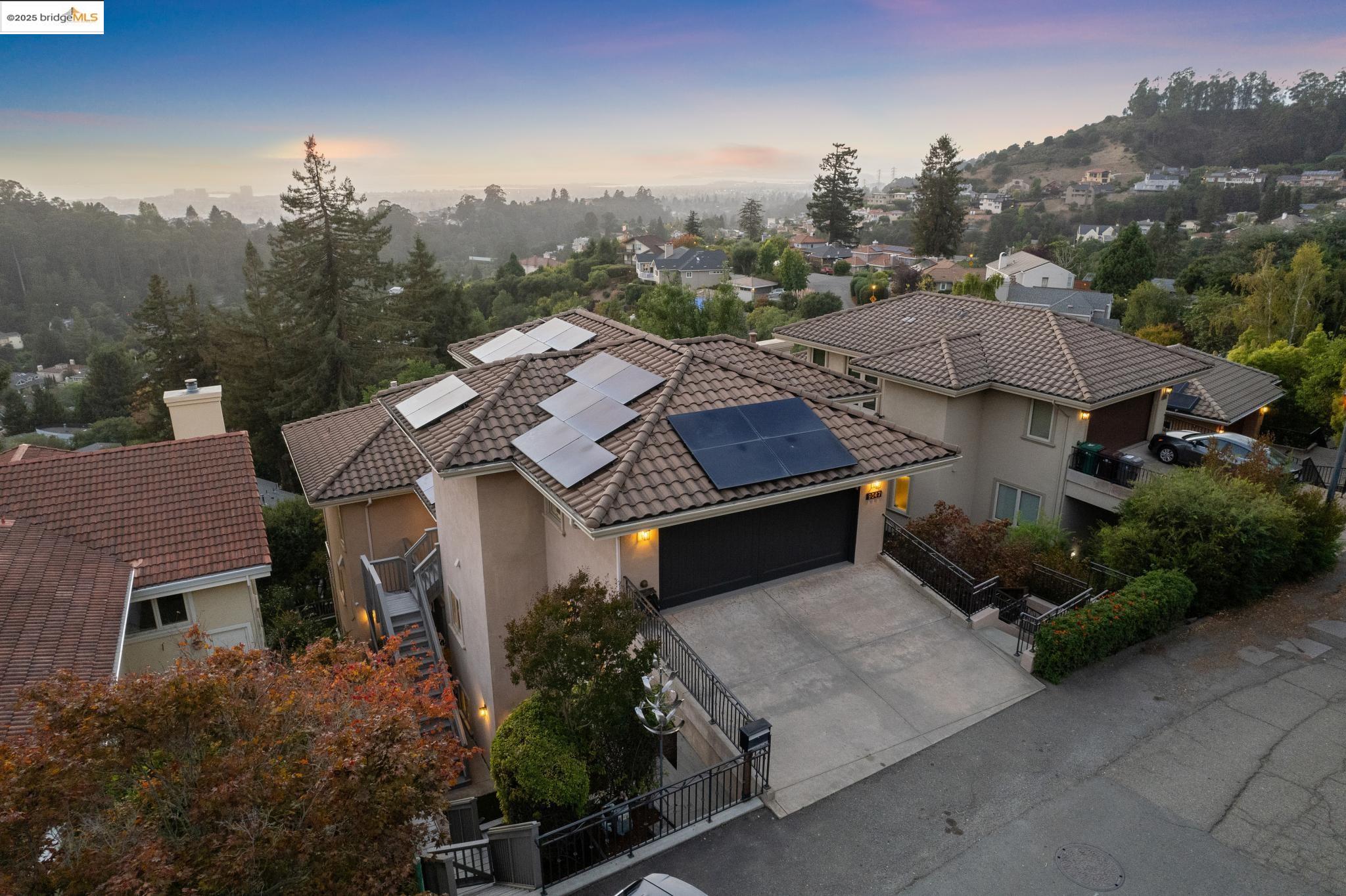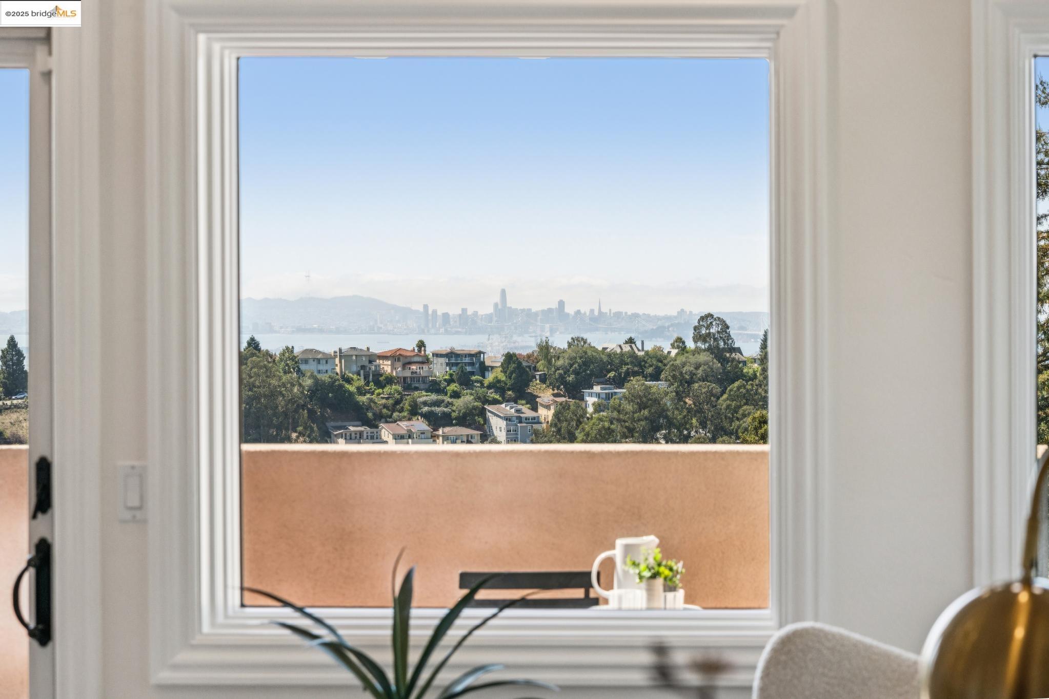 Welcome to 9047 Broadway Terrace, a high-tech residence where modern design and comfortable living converge. Soaring ceilings, gracious proportions, and views of the Bay create a peaceful retreat with the plus of a home elevator. This home boasts 6 generous bedrooms and 4.5 baths, including a primary suite with walk-in closet, expansive primary bath with jetted-tub and two-sided gas fireplace, and an elegant bedroom with balcony. The gourmet kitchen features soapstone countertops, two sinks, high-end appliances, and a large island that is perfect for casual meals or chic gatherings. The kitchen opens to a view deck, perfect for al fresco dining or taking in the Bay view. A large living room with a fireplace and picture windows is the ideal space for relaxation or entertaining, while a separate family room offers flexibility for movie watching, sleepovers, or game nights. Need a separate space to work? A private office is tucked away for concentration & creativity. The outdoor areas are equally inviting, featuring view decks and a lush lawn. Experience elevated living with thoughtful amenities: AC, 1 gig fiber internet, intercom, solar, networking and security systems, and smart electrical panels. Close to Montclair Village. Make this exceptional property yours!