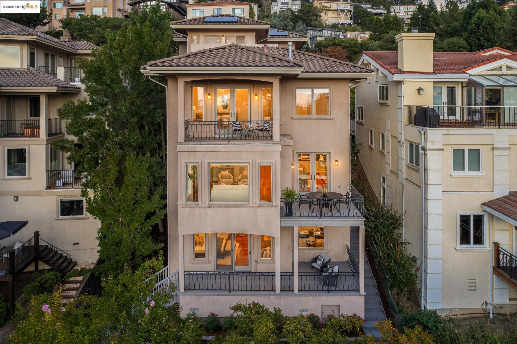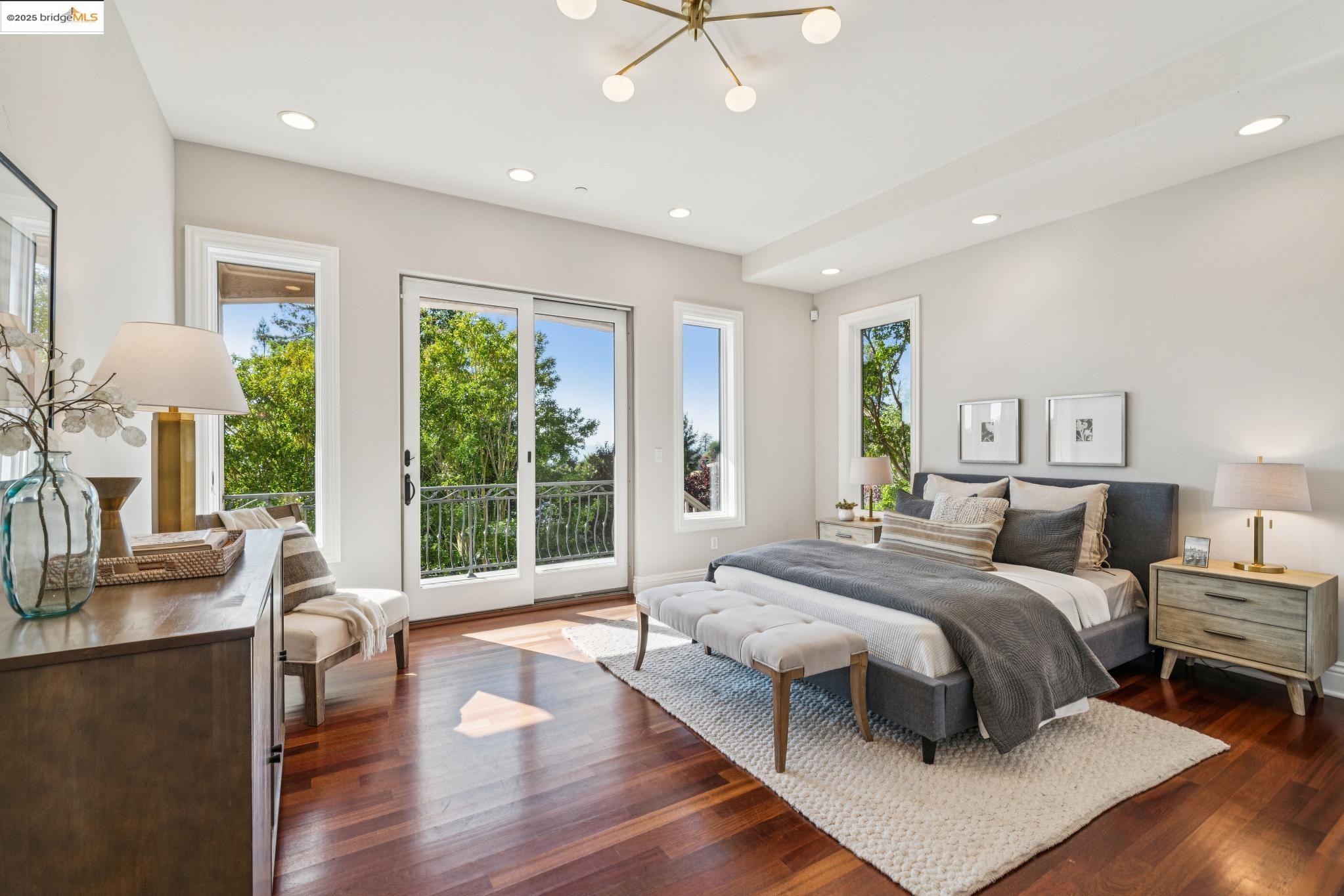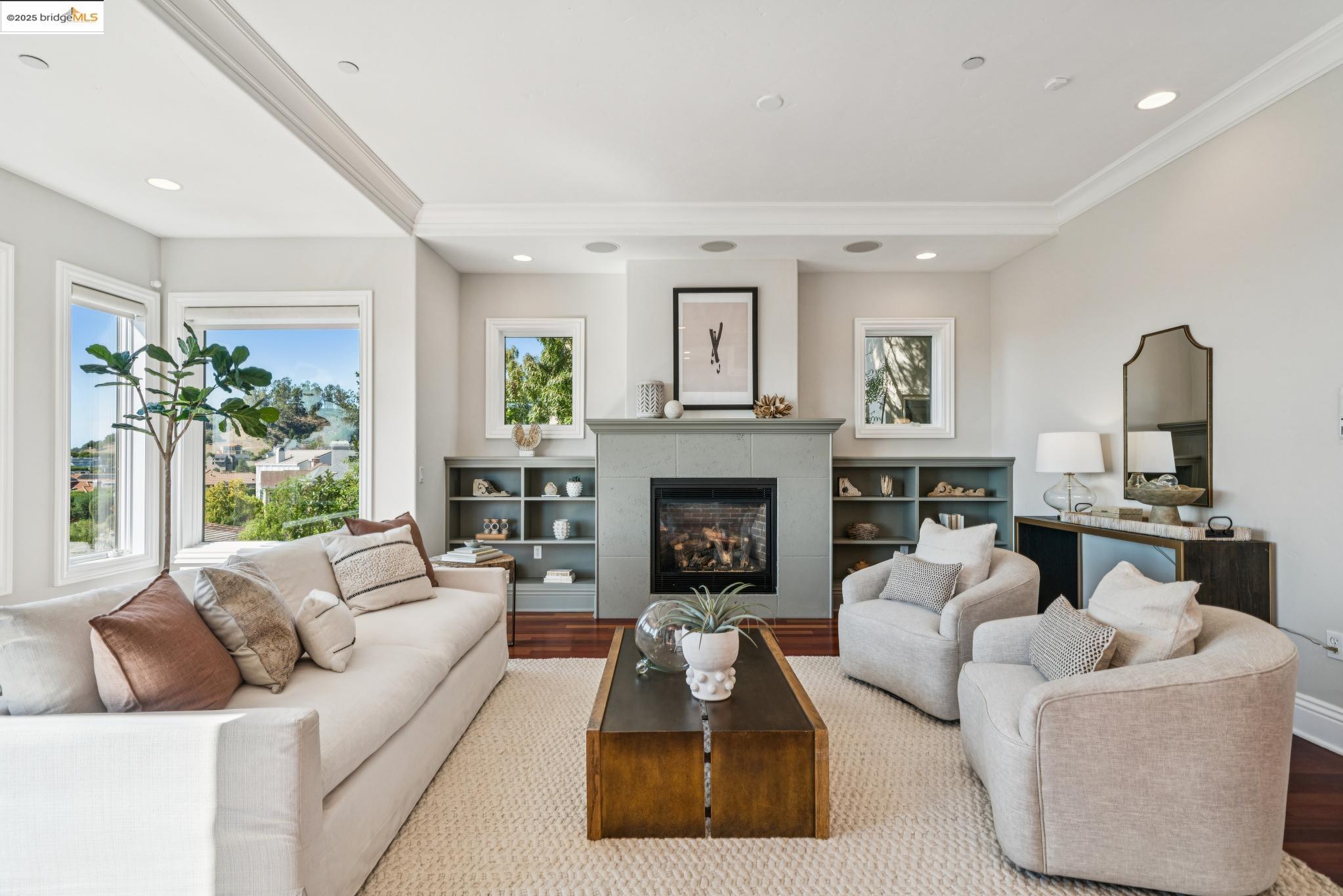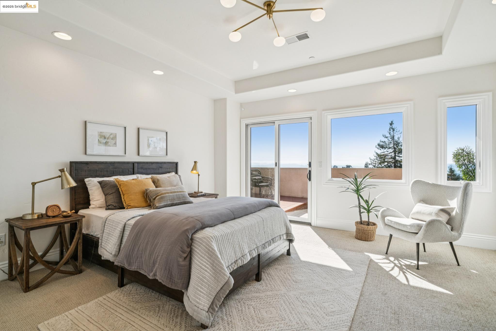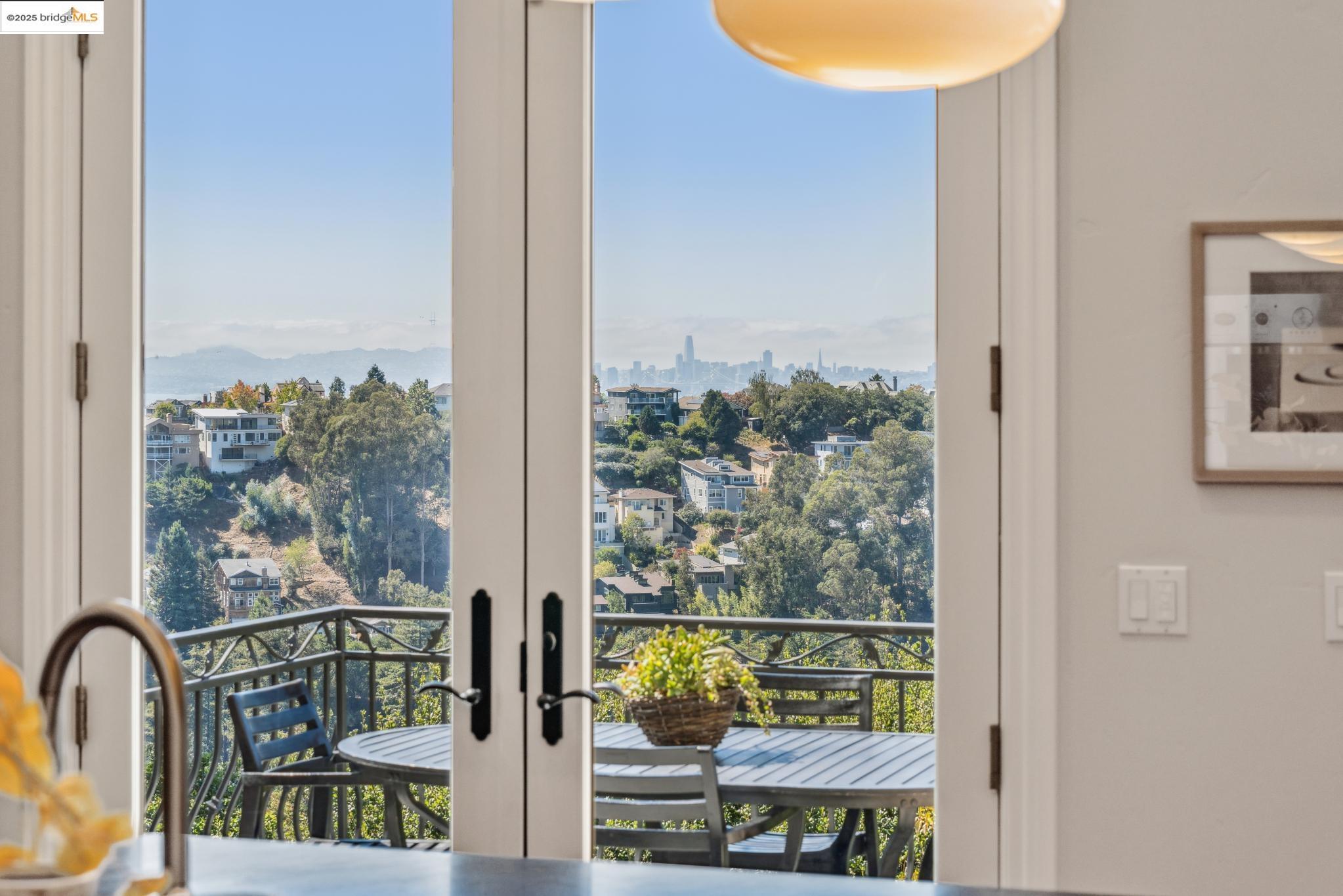 Welcome to 9047 Broadway Terrace, a high-tech residence where modern design and comfortable living converge. Soaring ceilings, gracious proportions, and views of the Bay create a peaceful retreat with the plus of a home elevator. This home boasts 6 generous bedrooms and 4.5 baths, including a primary suite with walk-in closet, expansive primary bath with jetted-tub and two-sided gas fireplace, and an elegant bedroom with balcony. The gourmet kitchen features soapstone countertops, two sinks, high-end appliances, and a large island that is perfect for casual meals or chic gatherings. The kitchen opens to a view deck, perfect for al fresco dining or taking in the Bay view. A large living room with a fireplace and picture windows is the ideal space for relaxation or entertaining, while a separate family room offers flexibility for movie watching, sleepovers, or game nights. Need a separate space to work? A private office is tucked away for concentration & creativity. The outdoor areas are equally inviting, featuring view decks and a lush lawn. Experience elevated living with thoughtful amenities: AC, 1 gig fiber internet, intercom, solar, networking and security systems, and smart electrical panels. Close to Montclair Village. Make this exceptional property yours!