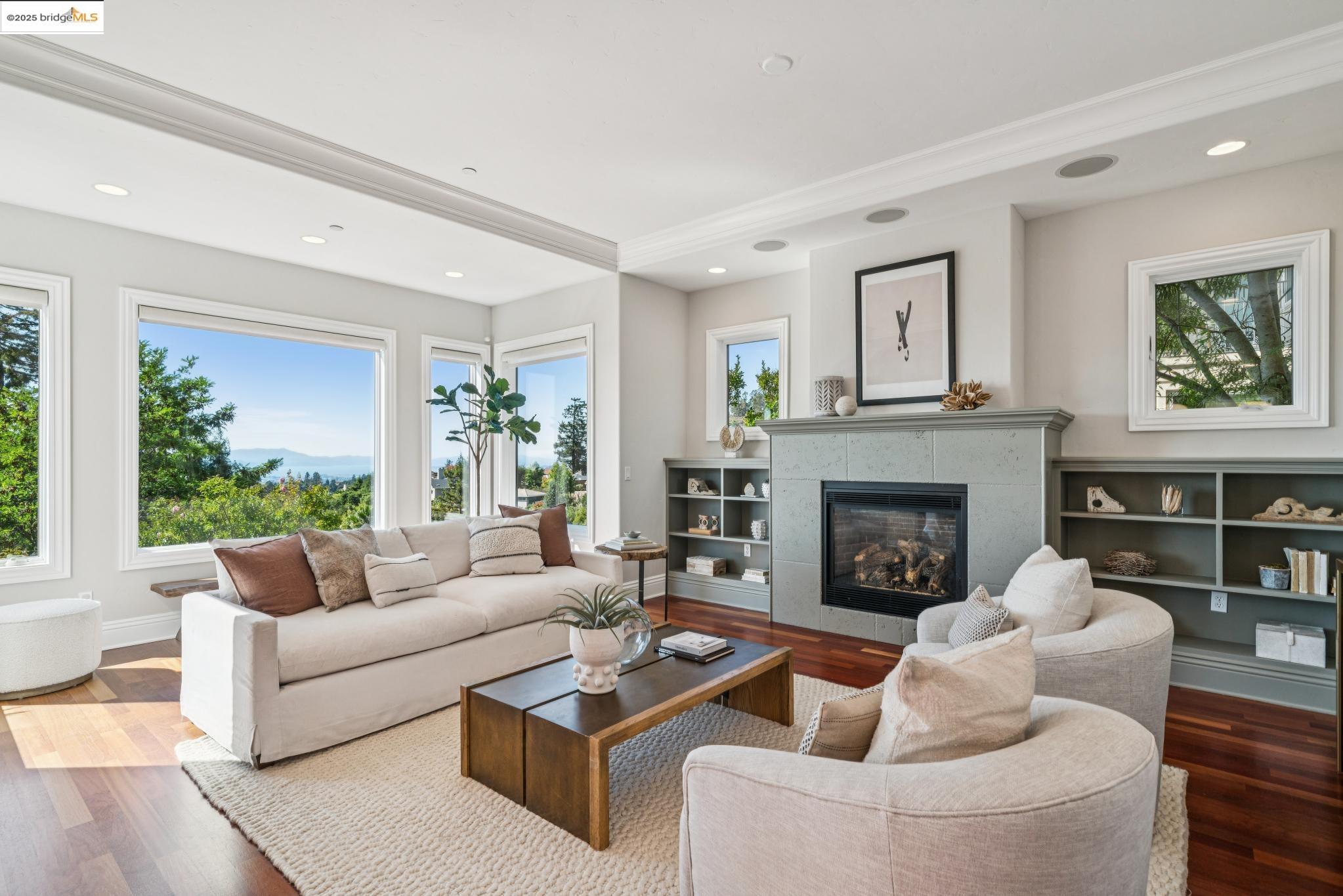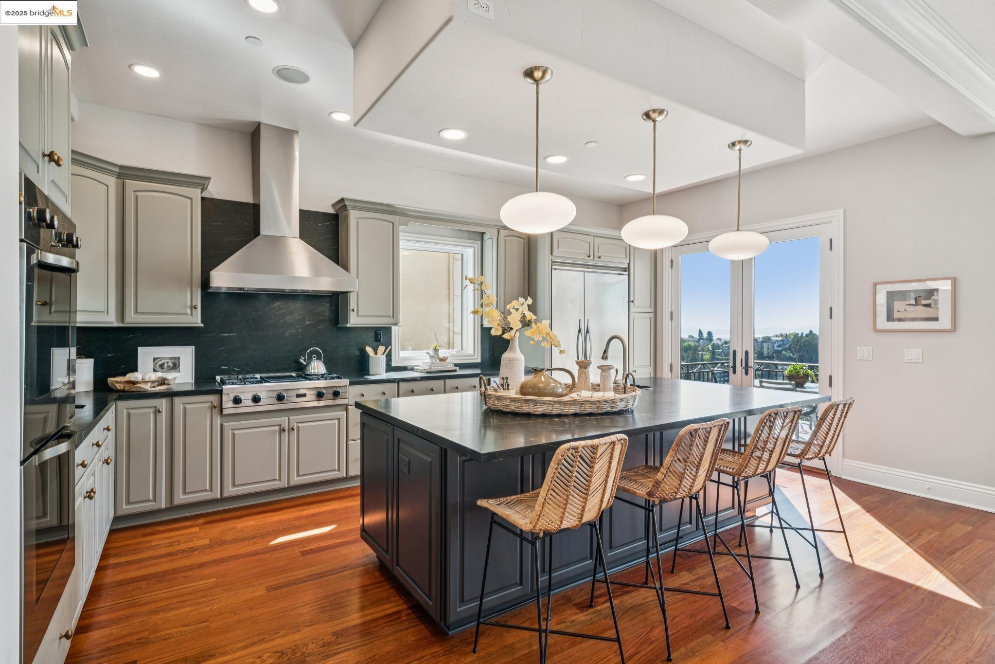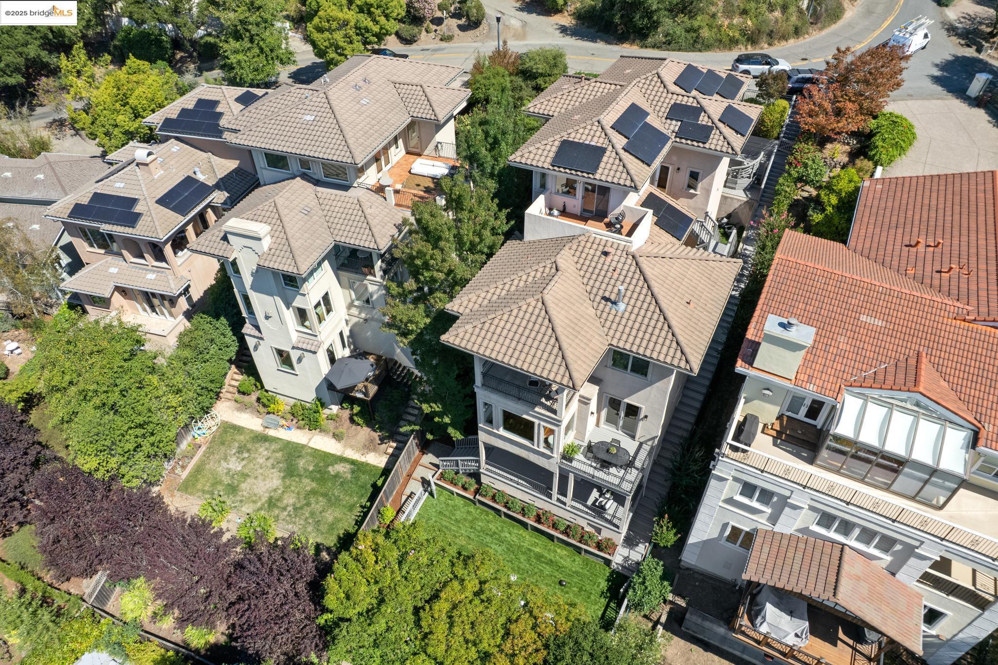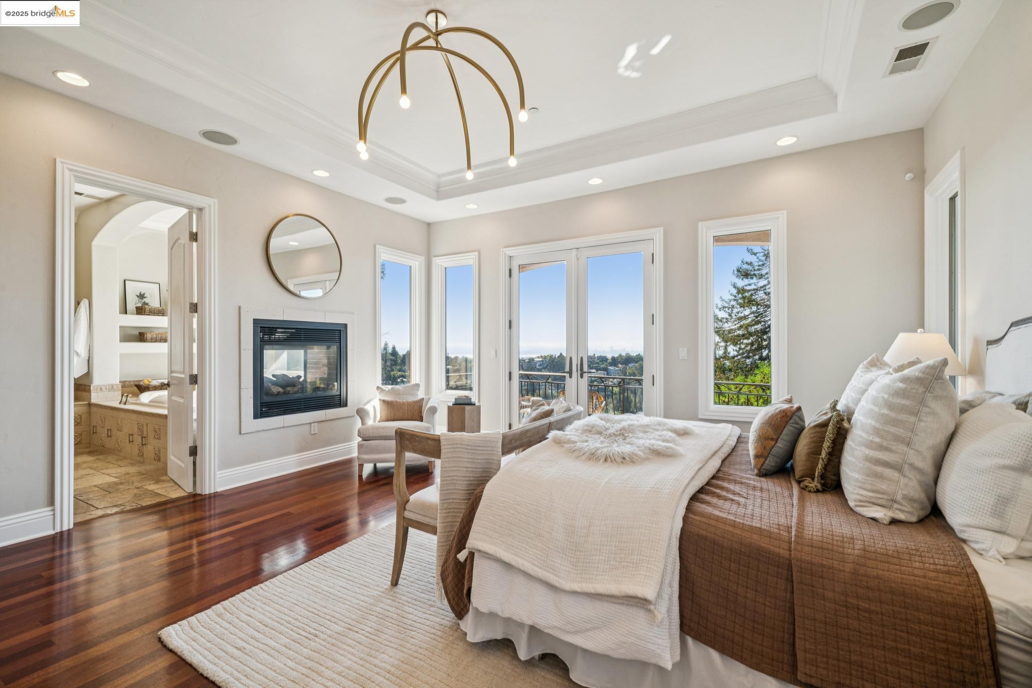 Welcome to 9047 Broadway Terrace, a high-tech residence where modern design and comfortable living converge. Soaring ceilings, gracious proportions, and views of the Bay create a peaceful retreat with the plus of a home elevator. This home boasts 6 generous bedrooms and 4.5 baths, including a primary suite with walk-in closet, expansive primary bath with jetted-tub and two-sided gas fireplace, and an elegant bedroom with balcony. The gourmet kitchen features soapstone countertops, two sinks, high-end appliances, and a large island that is perfect for casual meals or chic gatherings. The kitchen opens to a view deck, perfect for al fresco dining or taking in the Bay view. A large living room with a fireplace and picture windows is the ideal space for relaxation or entertaining, while a separate family room offers flexibility for movie watching, sleepovers, or game nights. Need a separate space to work? A private office is tucked away for concentration & creativity. The outdoor areas are equally inviting, featuring view decks and a lush lawn. Experience elevated living with thoughtful amenities: AC, 1 gig fiber internet, intercom, solar, networking and security systems, and smart electrical panels. Close to Montclair Village. Make this exceptional property yours!