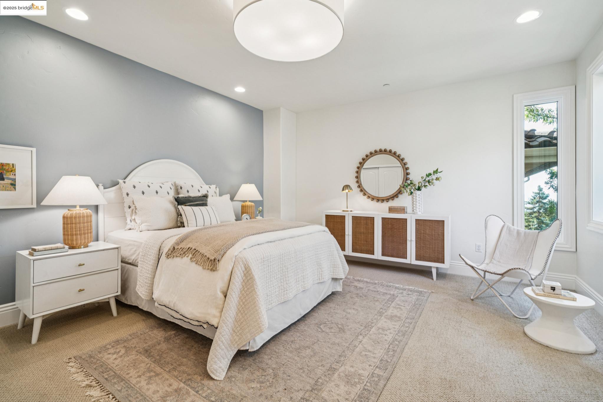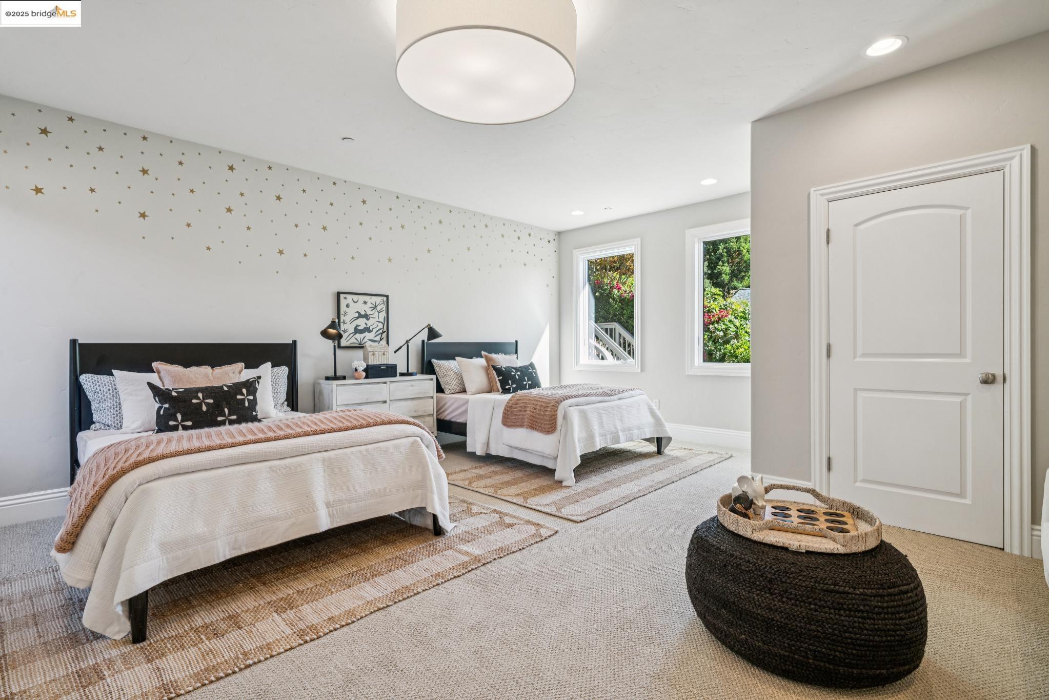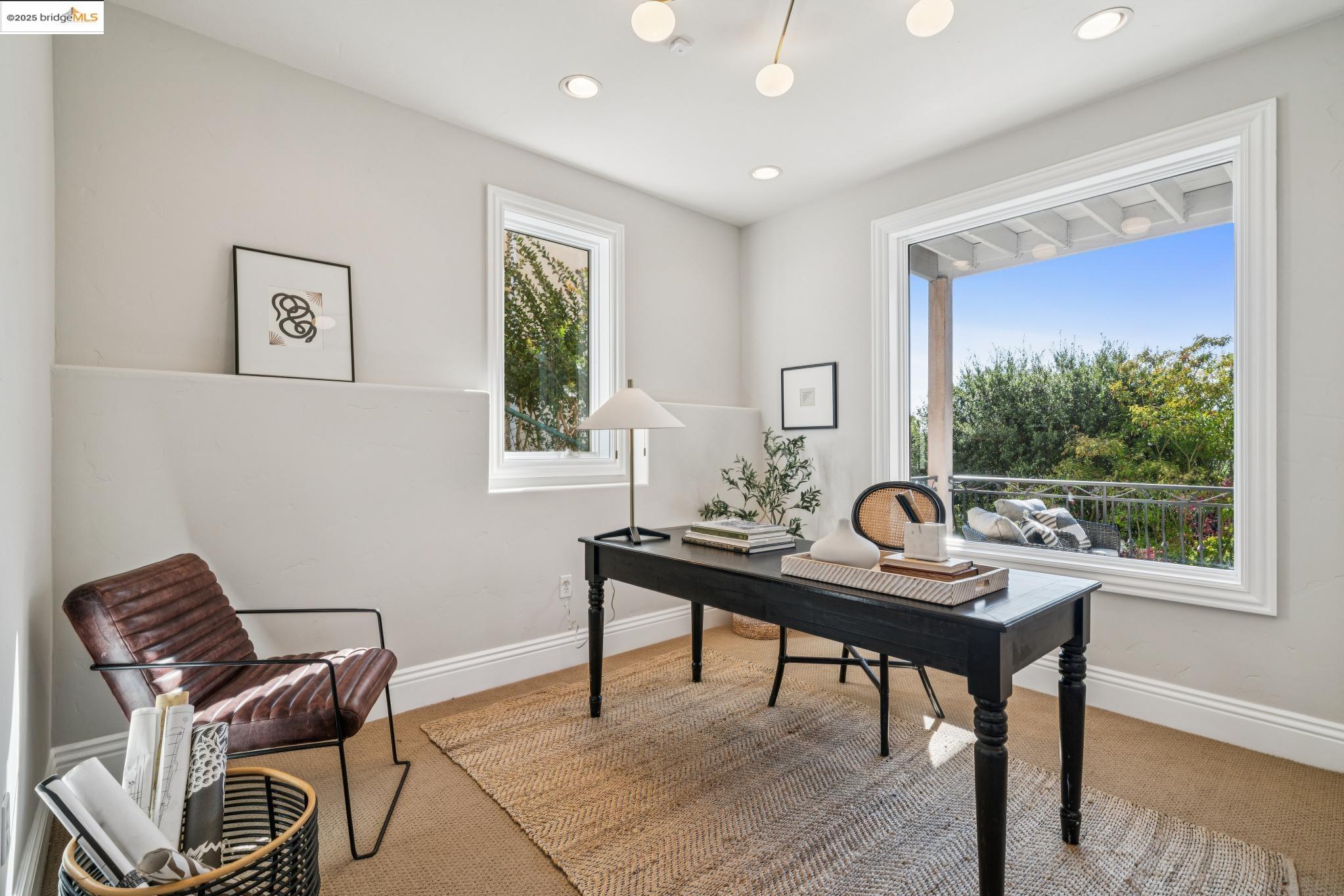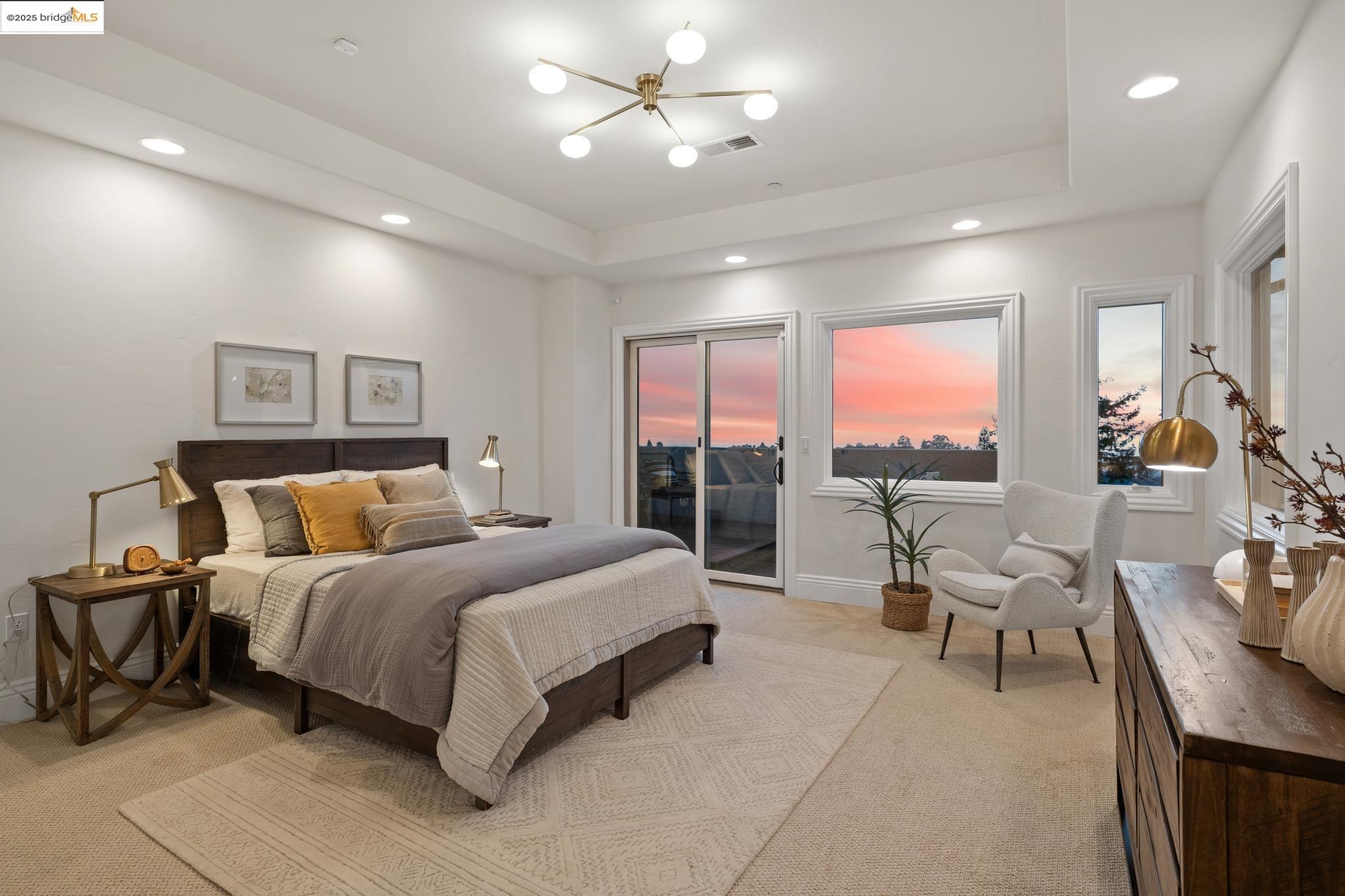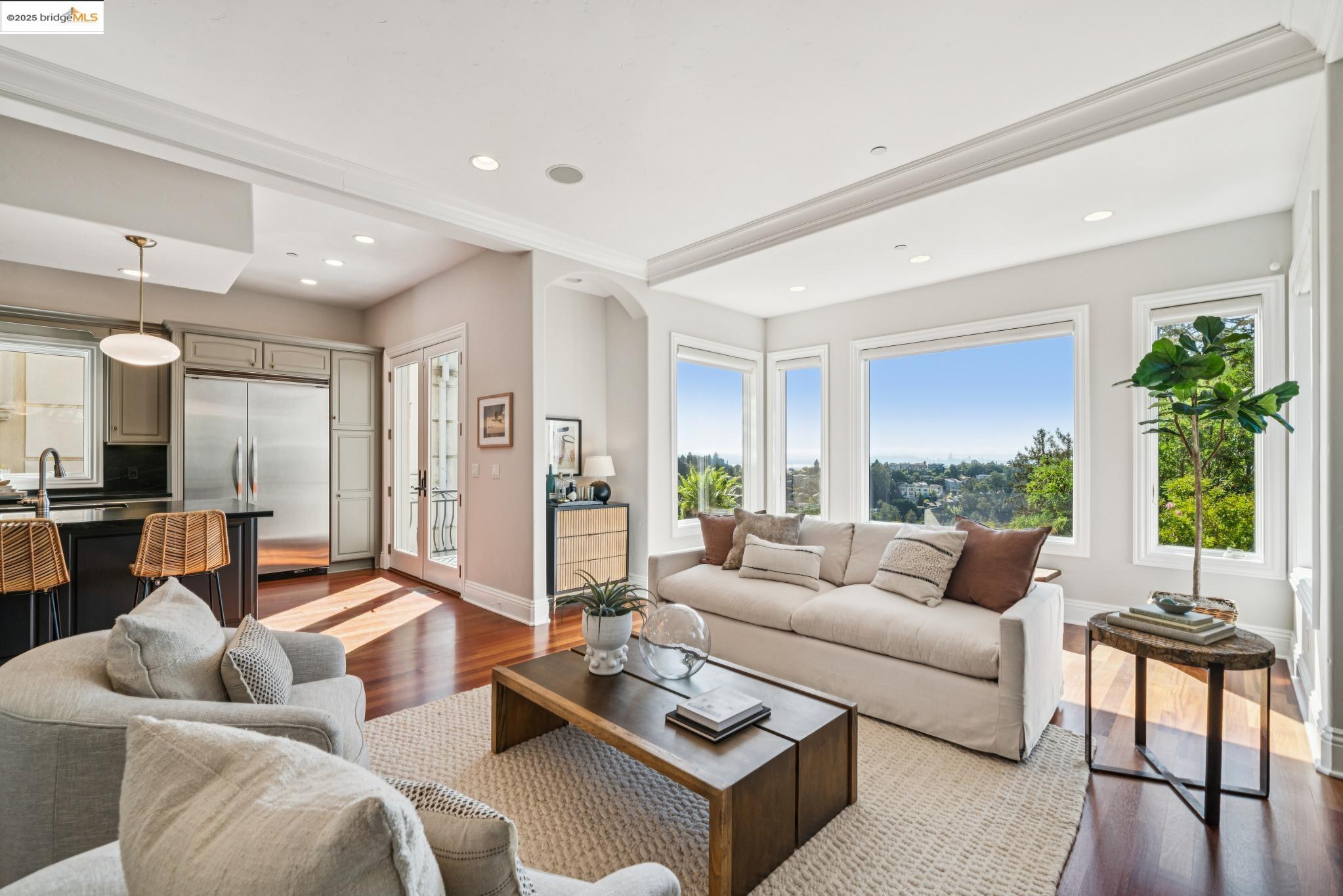 Welcome to 9047 Broadway Terrace, a high-tech residence where modern design and comfortable living converge. Soaring ceilings, gracious proportions, and views of the Bay create a peaceful retreat with the plus of a home elevator. This home boasts 6 generous bedrooms and 4.5 baths, including a primary suite with walk-in closet, expansive primary bath with jetted-tub and two-sided gas fireplace, and an elegant bedroom with balcony. The gourmet kitchen features soapstone countertops, two sinks, high-end appliances, and a large island that is perfect for casual meals or chic gatherings. The kitchen opens to a view deck, perfect for al fresco dining or taking in the Bay view. A large living room with a fireplace and picture windows is the ideal space for relaxation or entertaining, while a separate family room offers flexibility for movie watching, sleepovers, or game nights. Need a separate space to work? A private office is tucked away for concentration & creativity. The outdoor areas are equally inviting, featuring view decks and a lush lawn. Experience elevated living with thoughtful amenities: AC, 1 gig fiber internet, intercom, solar, networking and security systems, and smart electrical panels. Close to Montclair Village. Make this exceptional property yours!