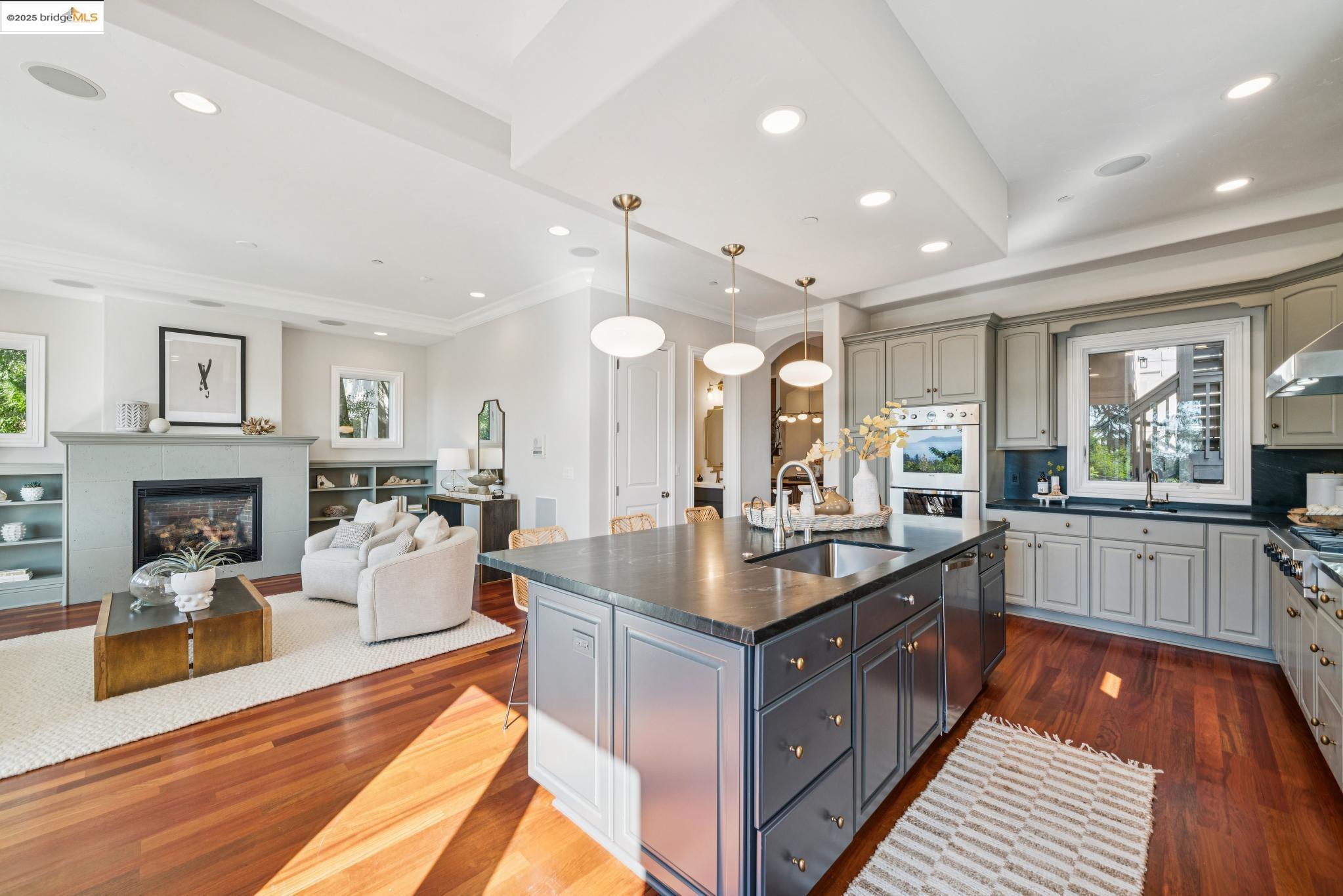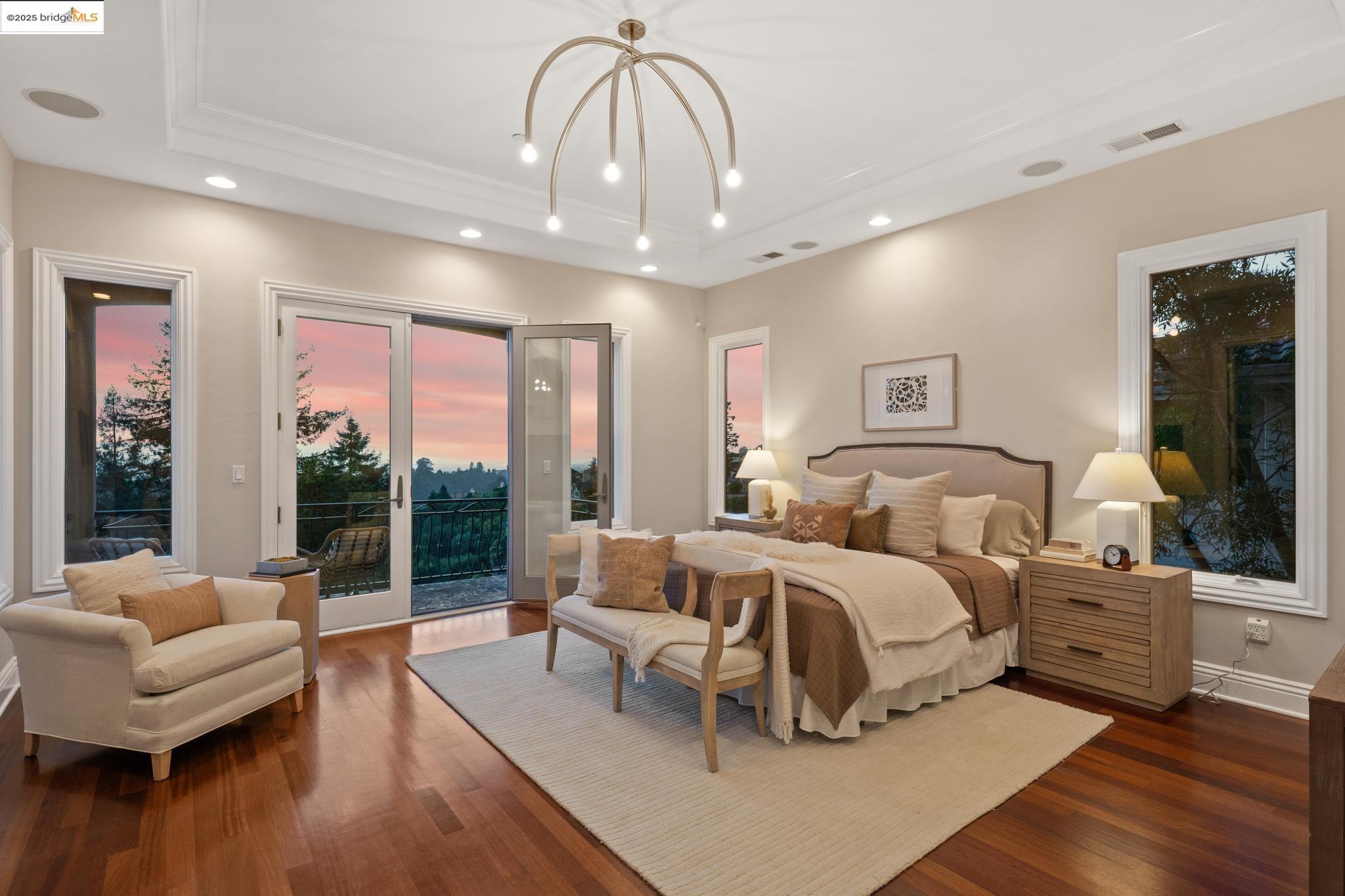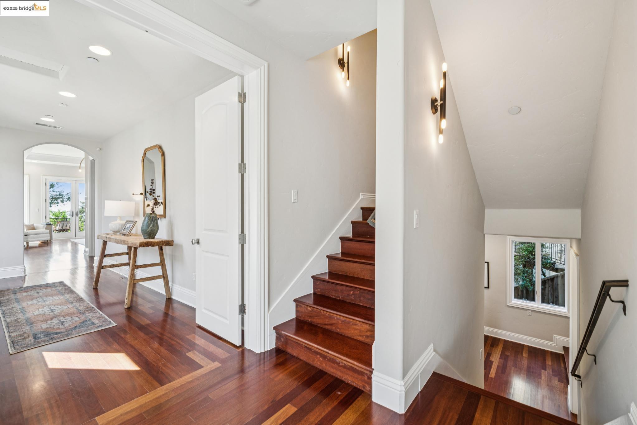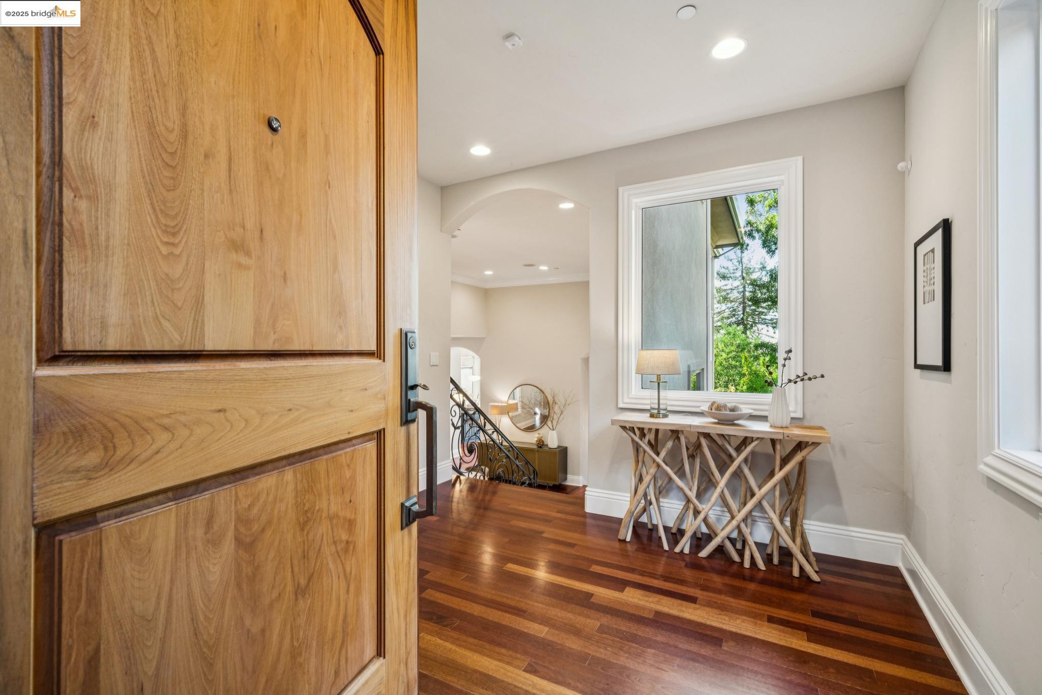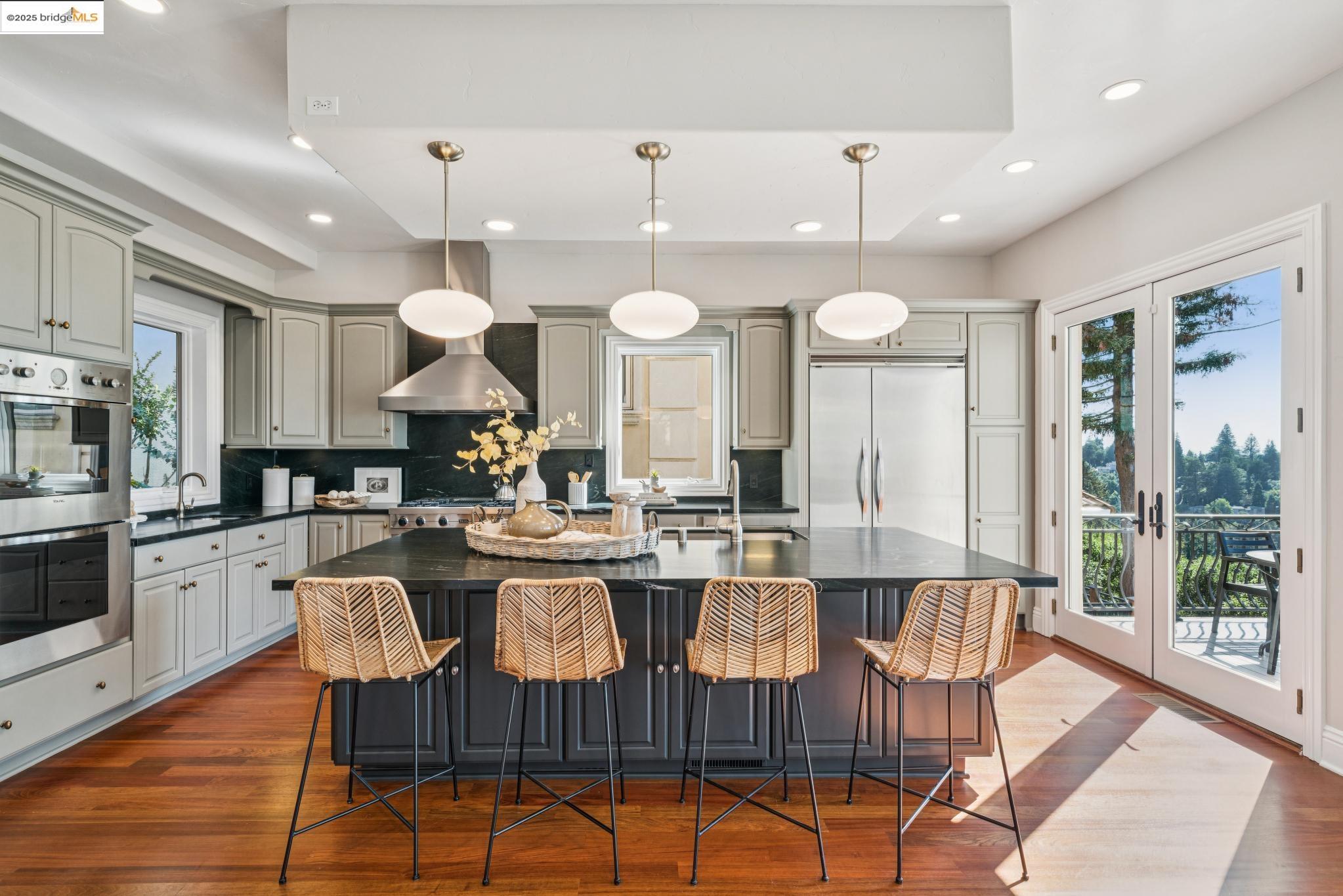 Welcome to 9047 Broadway Terrace, a high-tech residence where modern design and comfortable living converge. Soaring ceilings, gracious proportions, and views of the Bay create a peaceful retreat with the plus of a home elevator. This home boasts 6 generous bedrooms and 4.5 baths, including a primary suite with walk-in closet, expansive primary bath with jetted-tub and two-sided gas fireplace, and an elegant bedroom with balcony. The gourmet kitchen features soapstone countertops, two sinks, high-end appliances, and a large island that is perfect for casual meals or chic gatherings. The kitchen opens to a view deck, perfect for al fresco dining or taking in the Bay view. A large living room with a fireplace and picture windows is the ideal space for relaxation or entertaining, while a separate family room offers flexibility for movie watching, sleepovers, or game nights. Need a separate space to work? A private office is tucked away for concentration & creativity. The outdoor areas are equally inviting, featuring view decks and a lush lawn. Experience elevated living with thoughtful amenities: AC, 1 gig fiber internet, intercom, solar, networking and security systems, and smart electrical panels. Close to Montclair Village. Make this exceptional property yours!