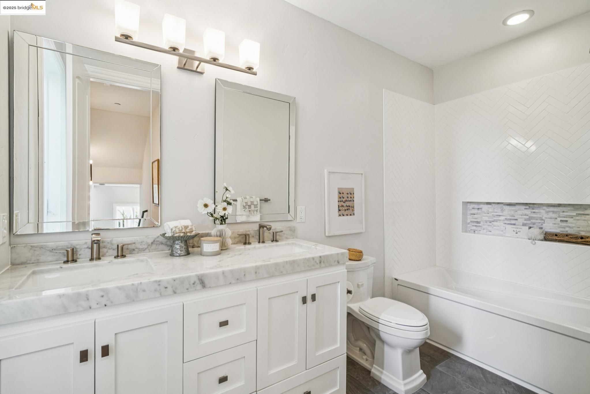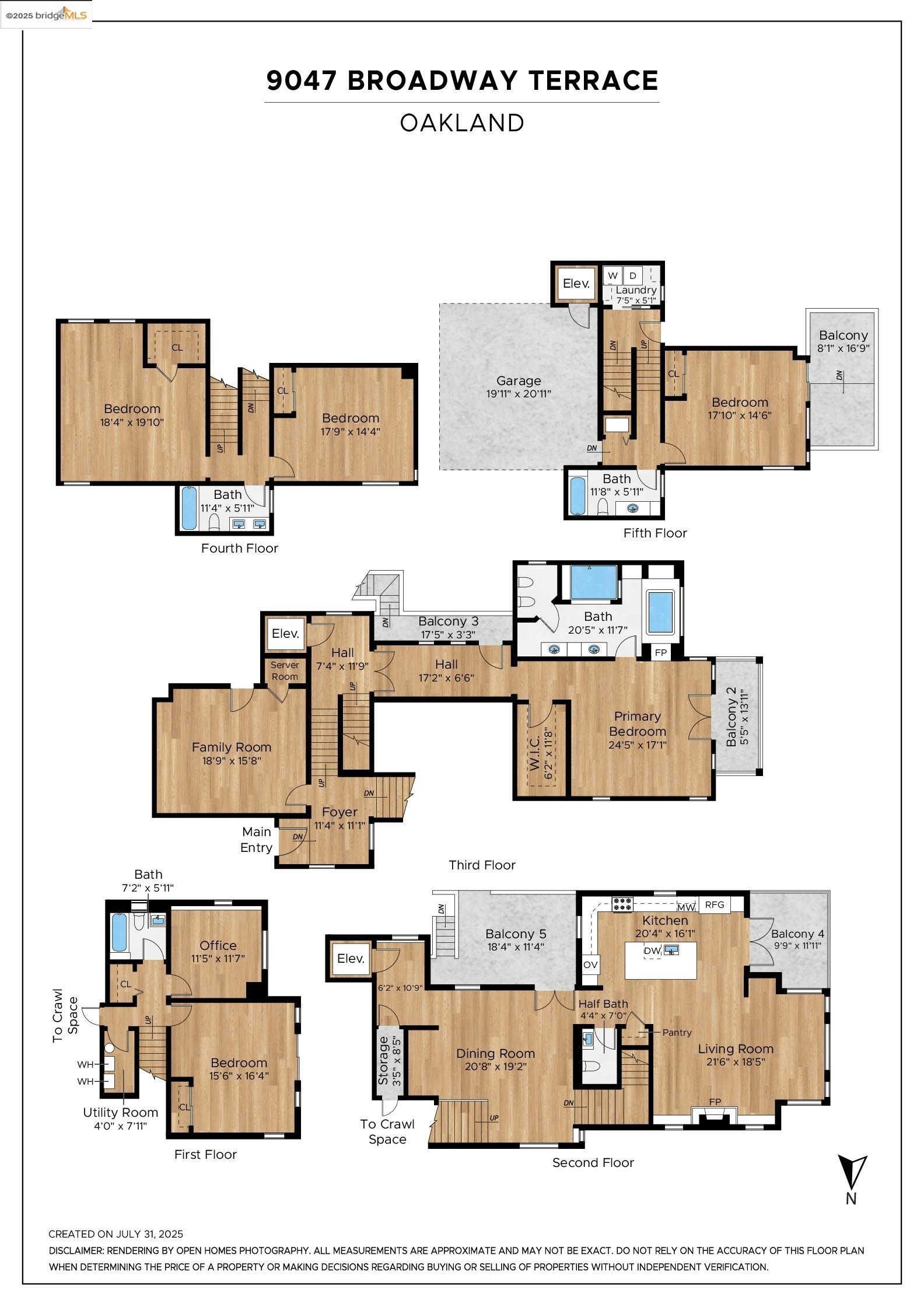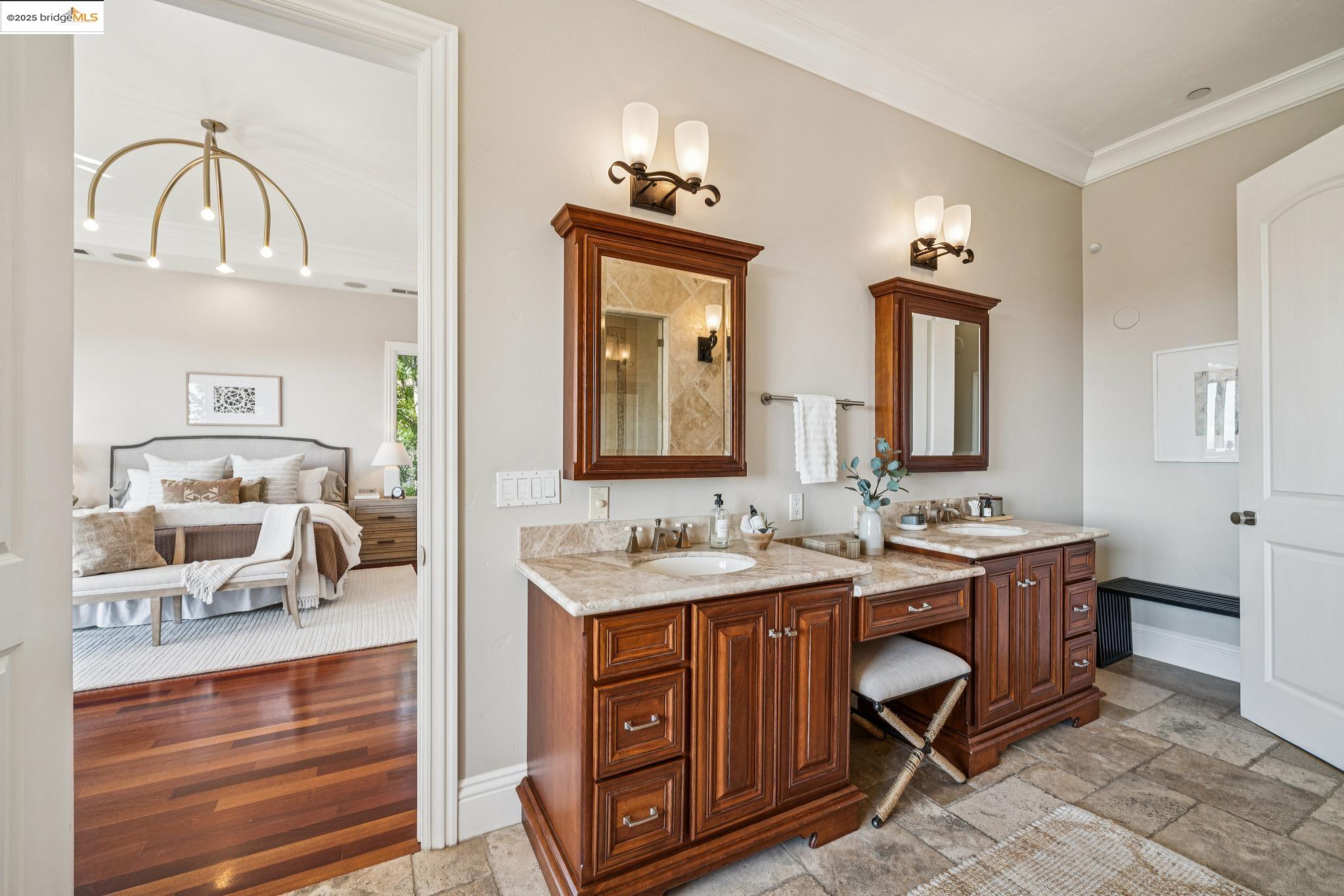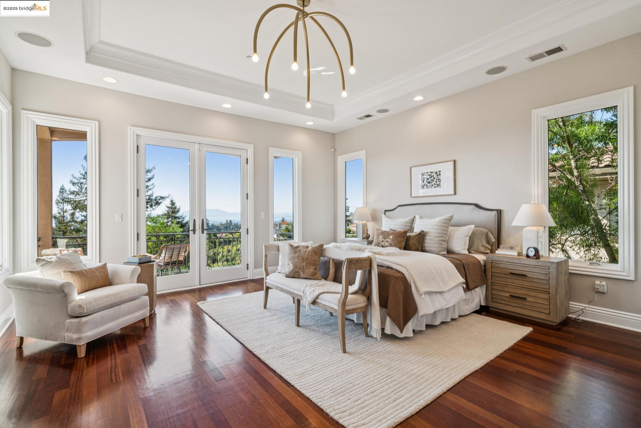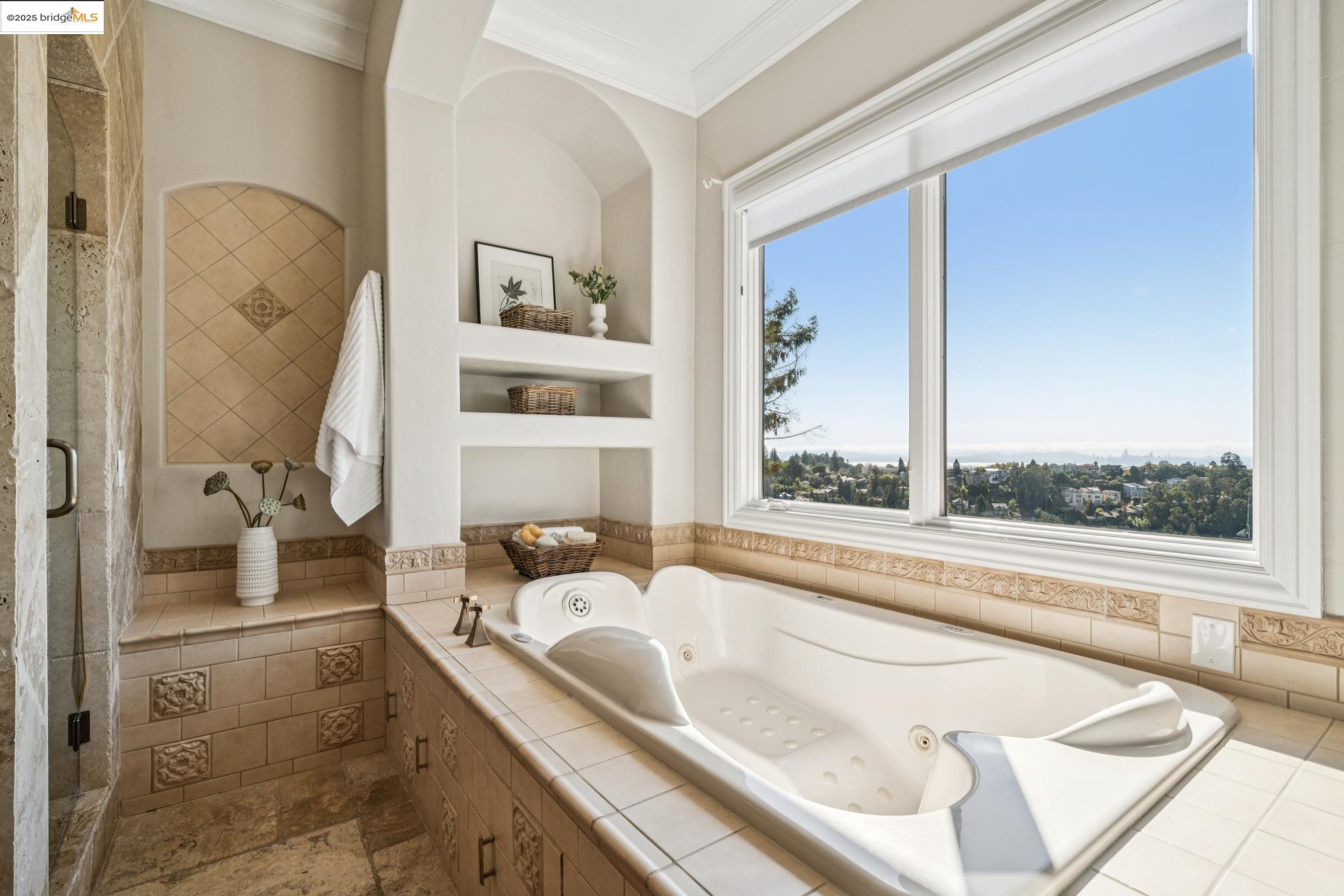 Welcome to 9047 Broadway Terrace, a high-tech residence where modern design and comfortable living converge. Soaring ceilings, gracious proportions, and views of the Bay create a peaceful retreat with the plus of a home elevator. This home boasts 6 generous bedrooms and 4.5 baths, including a primary suite with walk-in closet, expansive primary bath with jetted-tub and two-sided gas fireplace, and an elegant bedroom with balcony. The gourmet kitchen features soapstone countertops, two sinks, high-end appliances, and a large island that is perfect for casual meals or chic gatherings. The kitchen opens to a view deck, perfect for al fresco dining or taking in the Bay view. A large living room with a fireplace and picture windows is the ideal space for relaxation or entertaining, while a separate family room offers flexibility for movie watching, sleepovers, or game nights. Need a separate space to work? A private office is tucked away for concentration & creativity. The outdoor areas are equally inviting, featuring view decks and a lush lawn. Experience elevated living with thoughtful amenities: AC, 1 gig fiber internet, intercom, solar, networking and security systems, and smart electrical panels. Close to Montclair Village. Make this exceptional property yours!